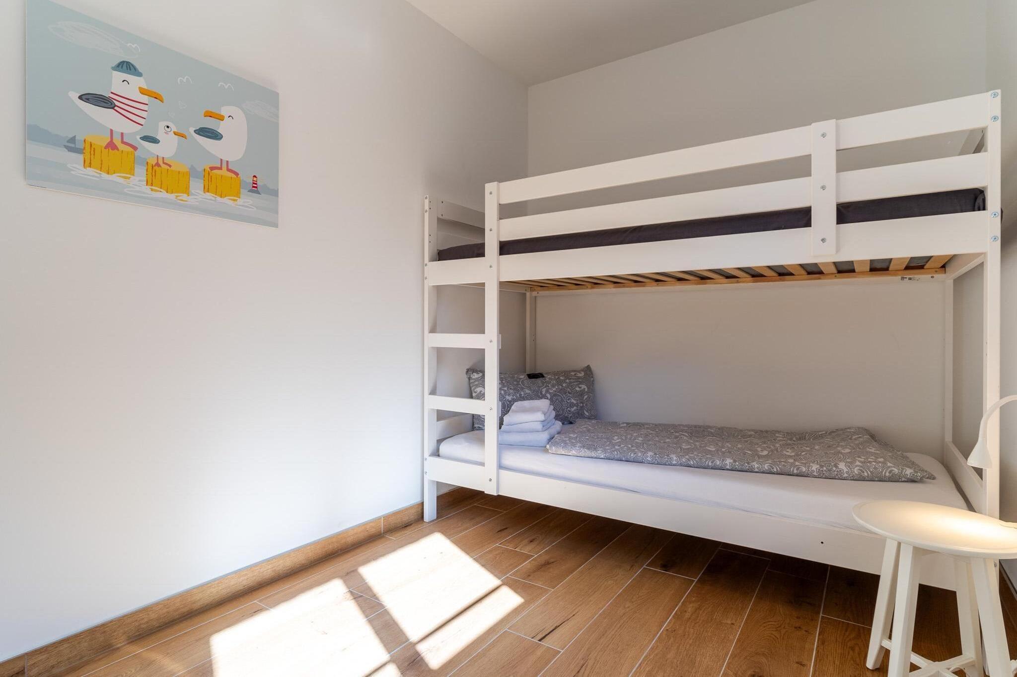 Glæd dig til en nyistandsat og moderne indrettet ferielejlighed i stueetagen! Denne 55 kvadratmeter store oase tilbyder det perfekte tilflugtssted til din ferie ved Vesterhavet. Hjertet i denne lejlighed er den rummelige stue, som inviterer dig til at blive hængende med sit stilfulde design og hyggelige atmosfære. Her finder du et komfortabelt opholdsområde, ideelt til at slappe af efter en begivenhedsrig dag. Nyd stunder sammen med dine kære eller lad dig simpelthen fortrylle af en god bog. Det åbne køkken af høj kvalitet er fuldt udstyret og har alt hvad du behøver for at tilberede lækre måltider. Uanset om du vil tilberede en simpel morgenmad eller piske en festlig middag, har du her alle faciliteterne til at udvikle dine kulinariske færdigheder. Fra stuen har du direkte udgang til terrassen, hvor du kan nyde den friske luft og slikke solen. Tilbring hyggelige aftener med et glas vin eller start dagen med en afslappet morgenmad udenfor. Lejligheden har to soveværelser: Det første soveværelse er udstyret med en komfortabel dobbeltseng, mens det andet soveværelse har en køjeseng, ideel til familier med børn eller vennegrupper. Det moderne badeværelse byder på bruser, toilet og alle de nødvendige faciliteter til at forfriske dig selv efter en begivenhedsrig dag. Højdepunkter inkluderet: Alle forbrugsbaserede energiomkostninger, sengelinned, håndklæder og slutrengøring WiFi Parkeringsplads Placeringen af denne ferielejlighed er ideel for alle, der ønsker at opdage skønheden i det omkringliggende område. Uanset om du vil udforske det maleriske landskab eller besøge de nærliggende attraktioner, kan du nemt nå alt herfra.