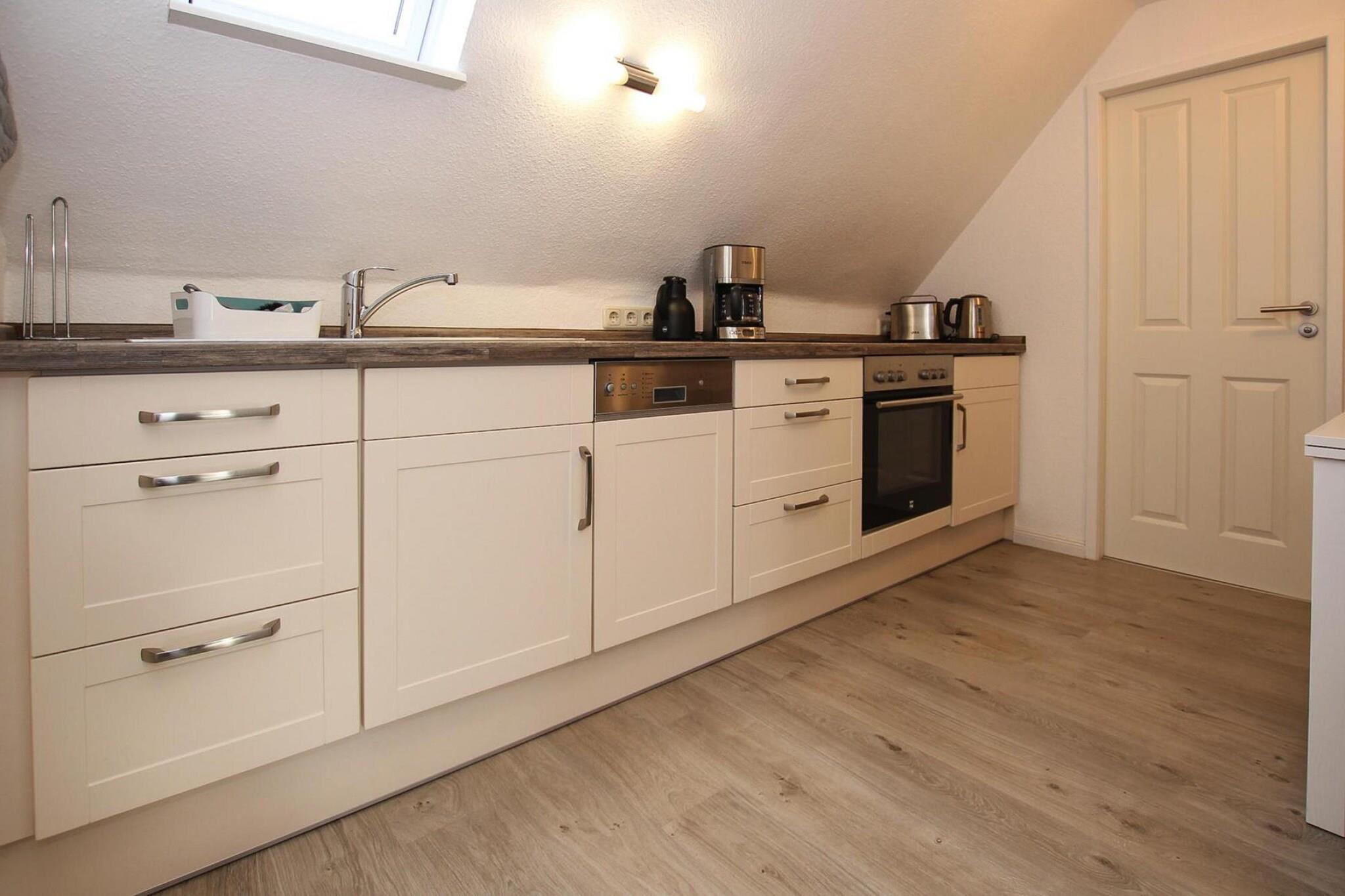 På 1. etage: (Stue(Fjernsyn(parabol, Tyske TV-kanaler), radio, CD-afspiller), Køkken(spisebord, kogeplade(Komfur med fire kogeplader, glaskeramisk), elkedel, brødrister, kaffemaskine, ovn, opvaskemaskine , køle-fryseskab), soveværelse(dobbeltseng), badeværelse(bruser, håndvask, toilet)) sofahjørne, balkon, varme(gas), terrasse, havemøbler, parkering, Parasol, barnestol, baby crib(paid)