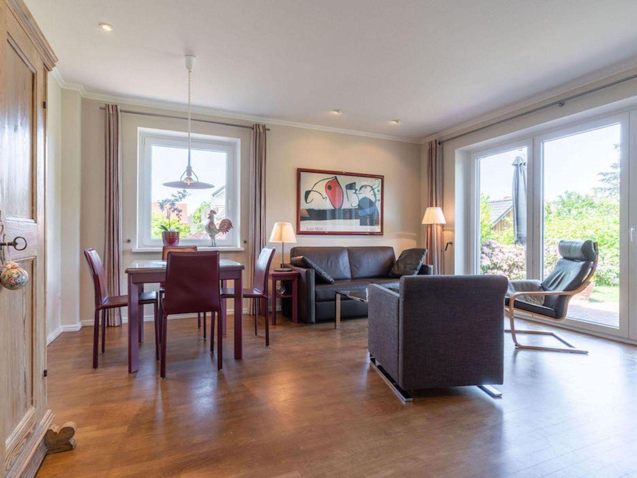 Der Bungalow liegt in einer ruhigen Sackgasse im Ortsteil Dorf. In wenigen Gehminuten ist man im alten Ortskern, in dem sich neben einem Supermarkt, Bäcker und diversen anderen Läden auch mehrere Restaurants und Cafes befinden. In die andere Richtung sind es nur wenige Minuten bis zu einem Einkaufszentrum mit Sky, Aldi und Lidl, wo sich auch die Bahnstation Bad St.Peter Süd befindet. Der Südstrand ist bequem und schnell mit dem Fahrrad oder dem Bus zu erreichen. Ganz in der Nähe ist ein kleiner Wald zum spazieren.