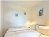 1. Schlafzimmer mit französischem Doppelbett (140x200cm). Dieses Schlafzimmer ist durch einen Vorhang vom Wohnzimmer abgeteilt.