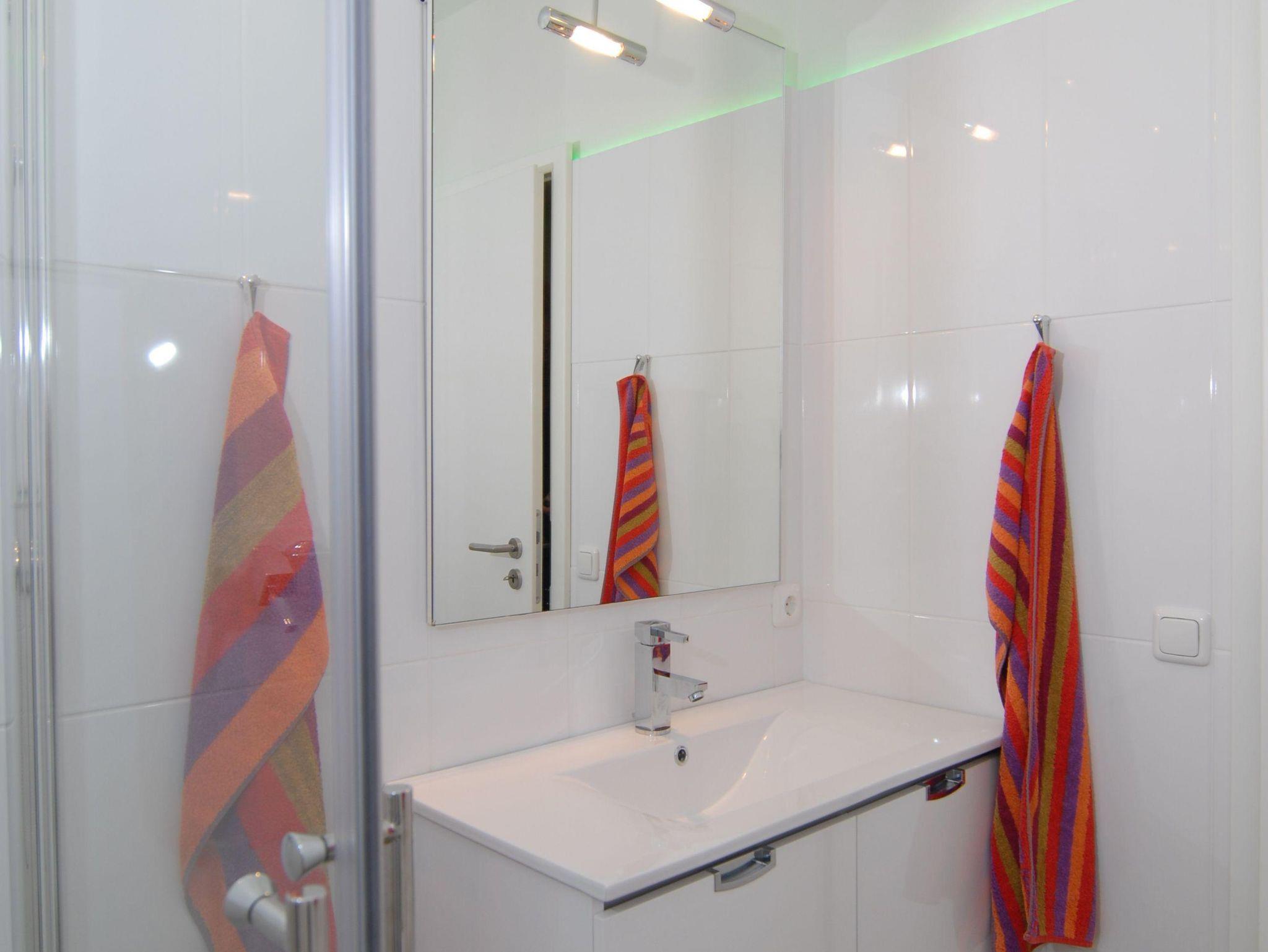 Bad: Dusche, Waschtisch, WC, Duschkabine, Spiegel, Unterschrank