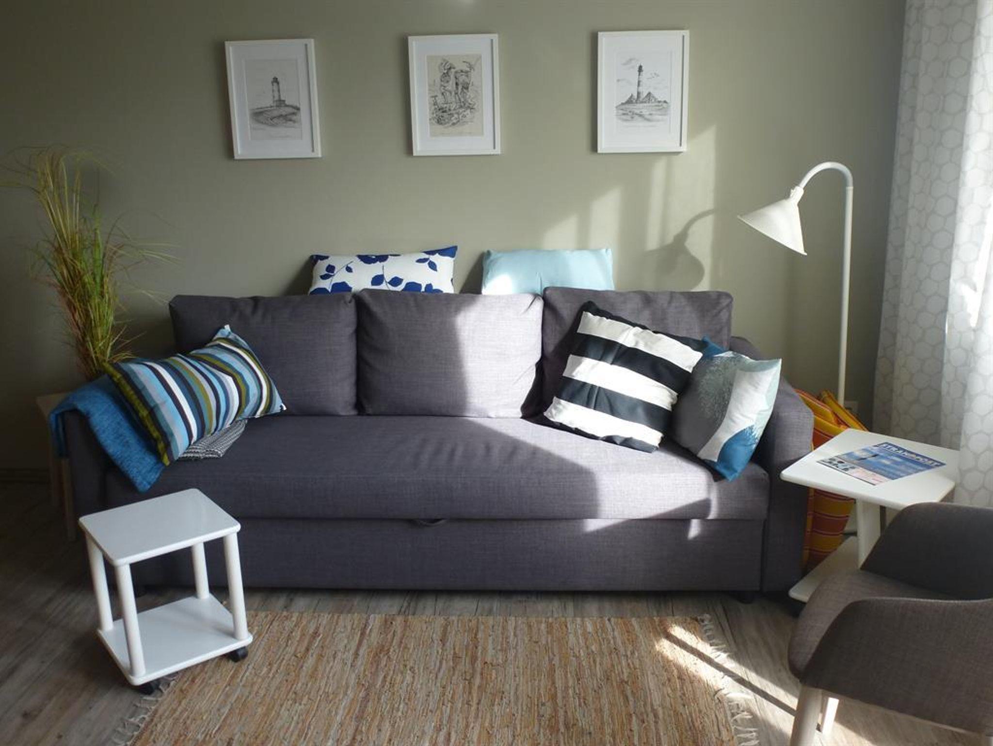 Im März/April 2016 haben wir unseren Dorfblick mit viel Liebe zum Detail für Sie modernisiert. Die 2-3 Personen Ferienwohnung mit „Dorfblick“ befindet sich in einem kleinen Appartementhaus in zentraler Lage, im 1. Stock. Vom Südbalkon aus blicken Sie auf romantische Reetdachhäuser. - 1 Schlafzimmer mit Doppelbett - 1 Wohn/Schlafraum mit Schlafcouch, Farb-TV und Radio sowie Zugang zum Südbalkon. - Küche mit 2 Platten Ceranfeld, Spülmaschine und Mikrowelle - Dusche/WC Bettwäsche und Handtücher können auf Wunsch als Zusatzleistung hinzugebucht werden.