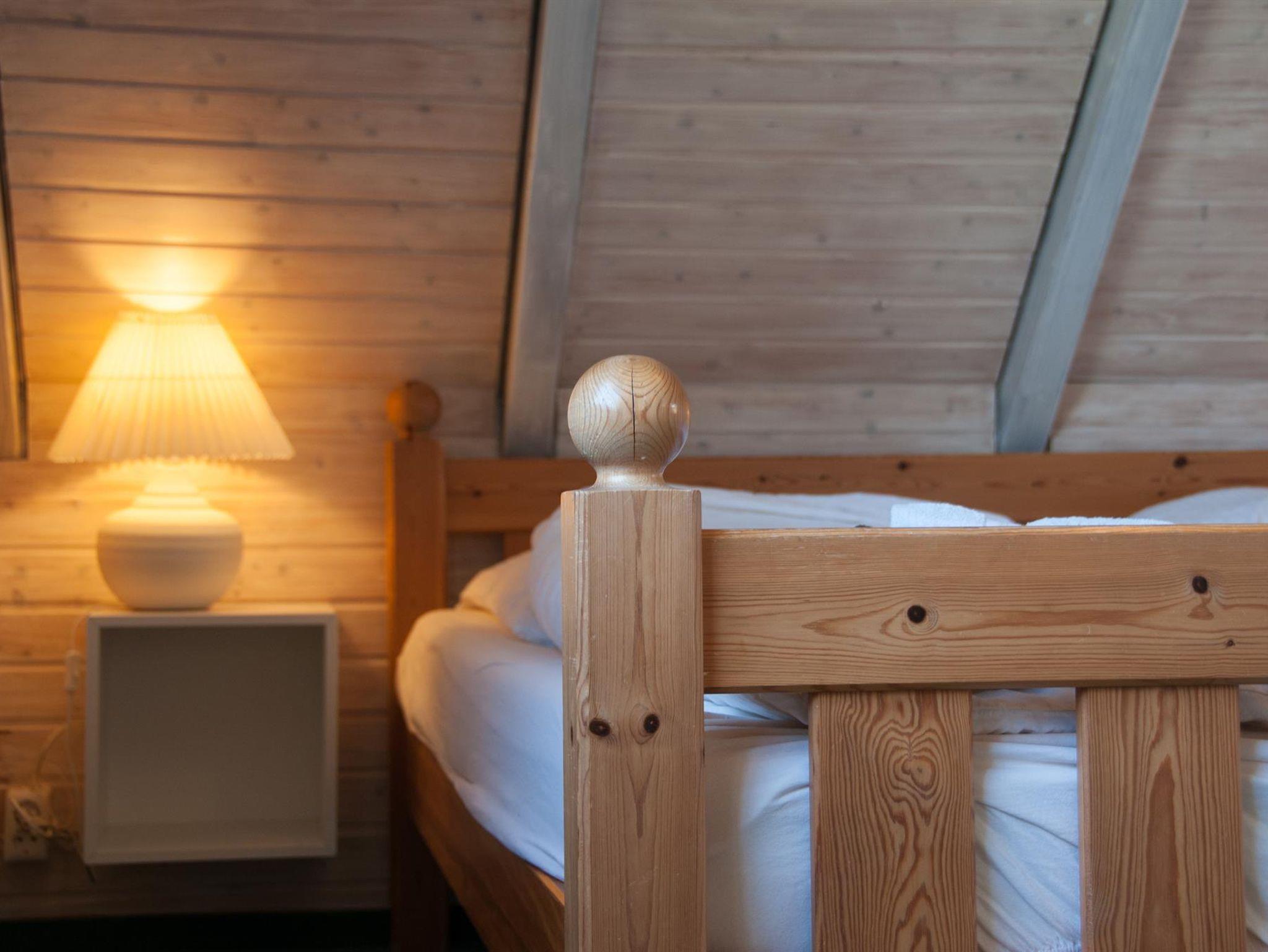 Der Schlafraum im Obergeschoss wartet mit einem Doppelbett mit 2 Matratzen, (Liegefläche 170 x 200 cm) auf Sie. Hier würde auch ein Kinderbett mit 70 x 140 cm auf Vorbestellung seinen Platz finden.