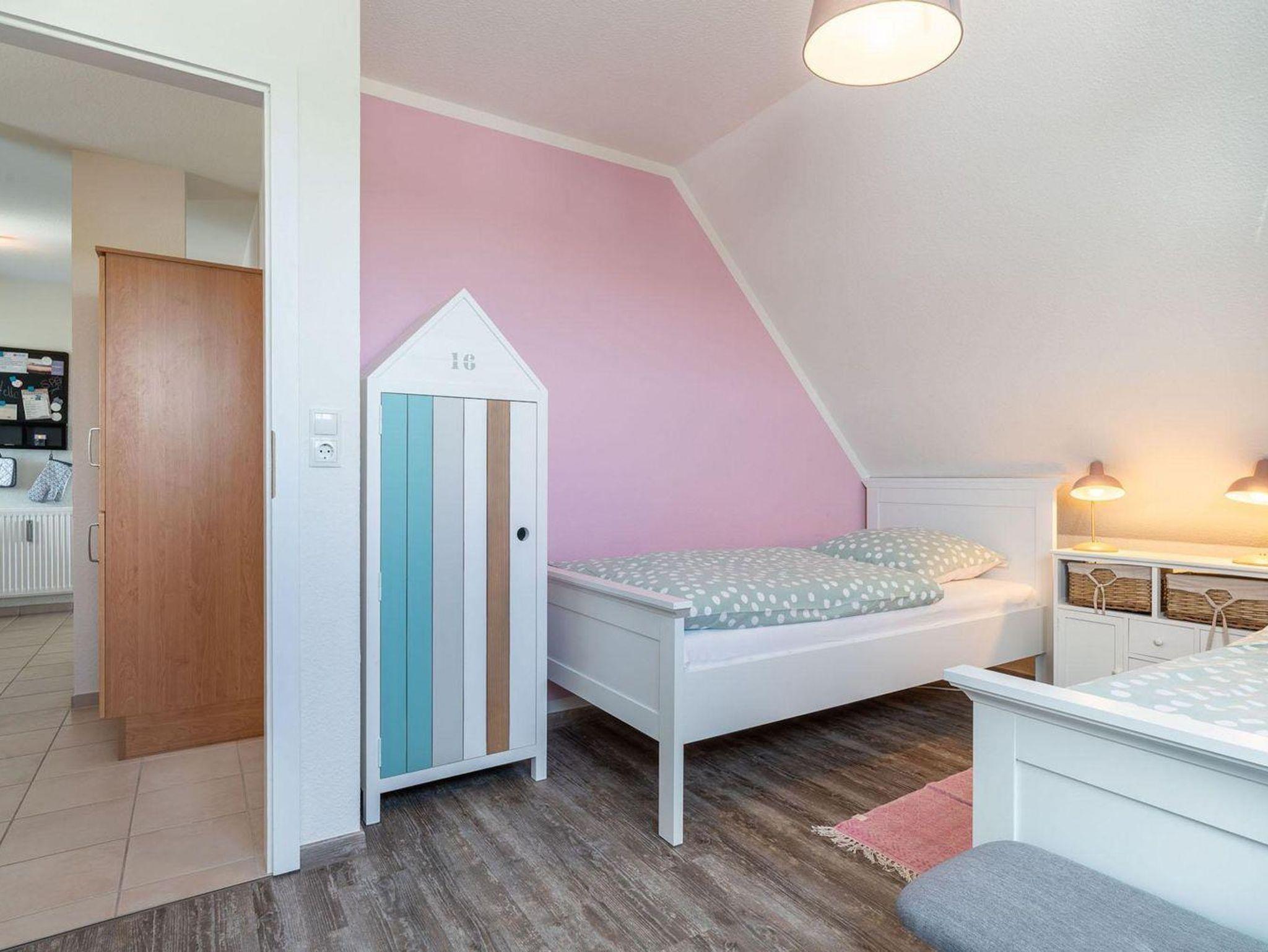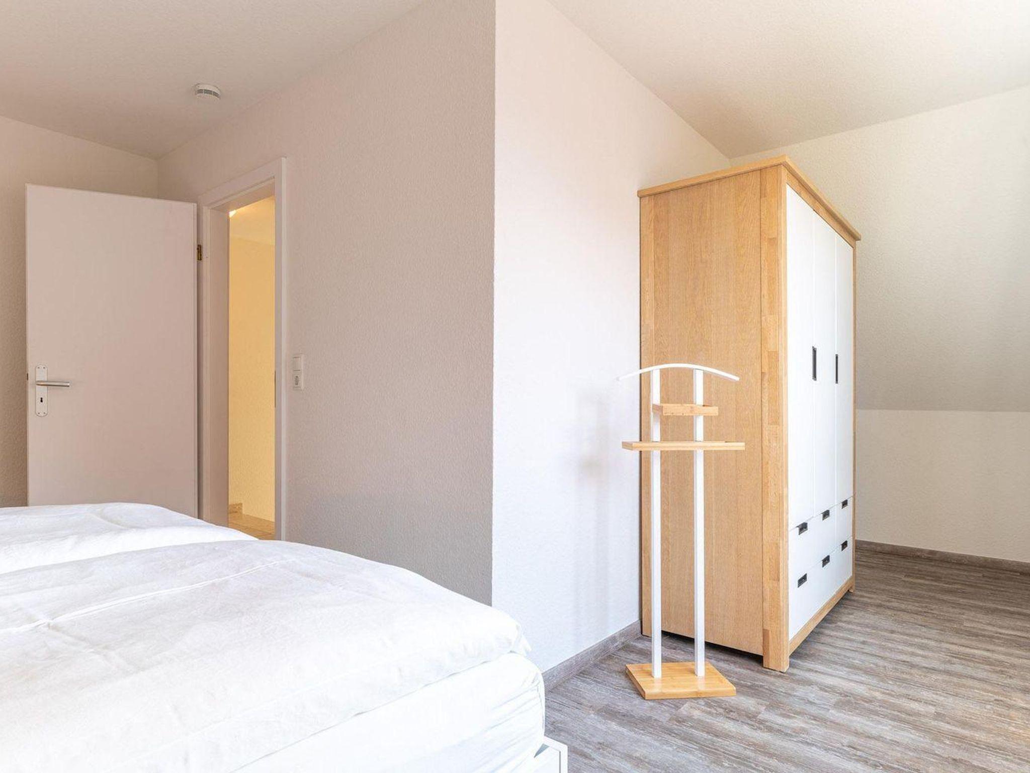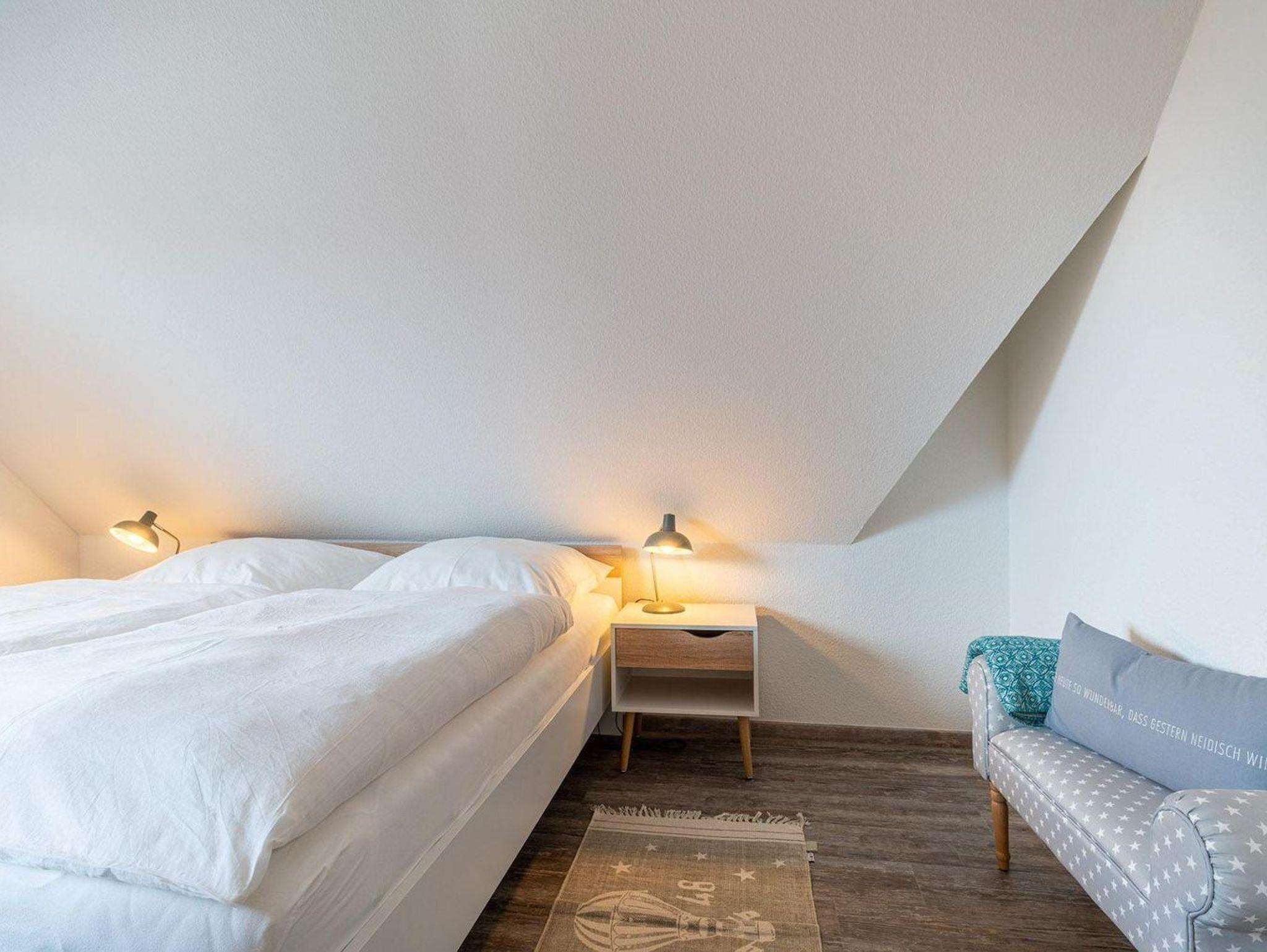 Das Duschbad ist großzügig gestaltet und bietet genügend Platz für Ihre Utensilien. Das Schlafzimmer mit 180er Doppelbett sorgt für ruhevolle Erholung. Aus dem weiteres Doppelzimmer mit 2 Einzelbetten haben Sie einen einzigartigen Blick bis zum Westerhever Leuchtturm.