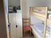 Das Hauptschlafzimmer verfügt über ein gemütliches Doppelbett (2x 90x200 cm) und ausreichend Stauraum. Direkt gegenüber befindet sich das liebevoll eingerichtete Kinderzimmer mit Etagenbett (2x 90x200 cm), zahlreichen Büchern sowie Spielmöglichkeiten für die Kleinen.
