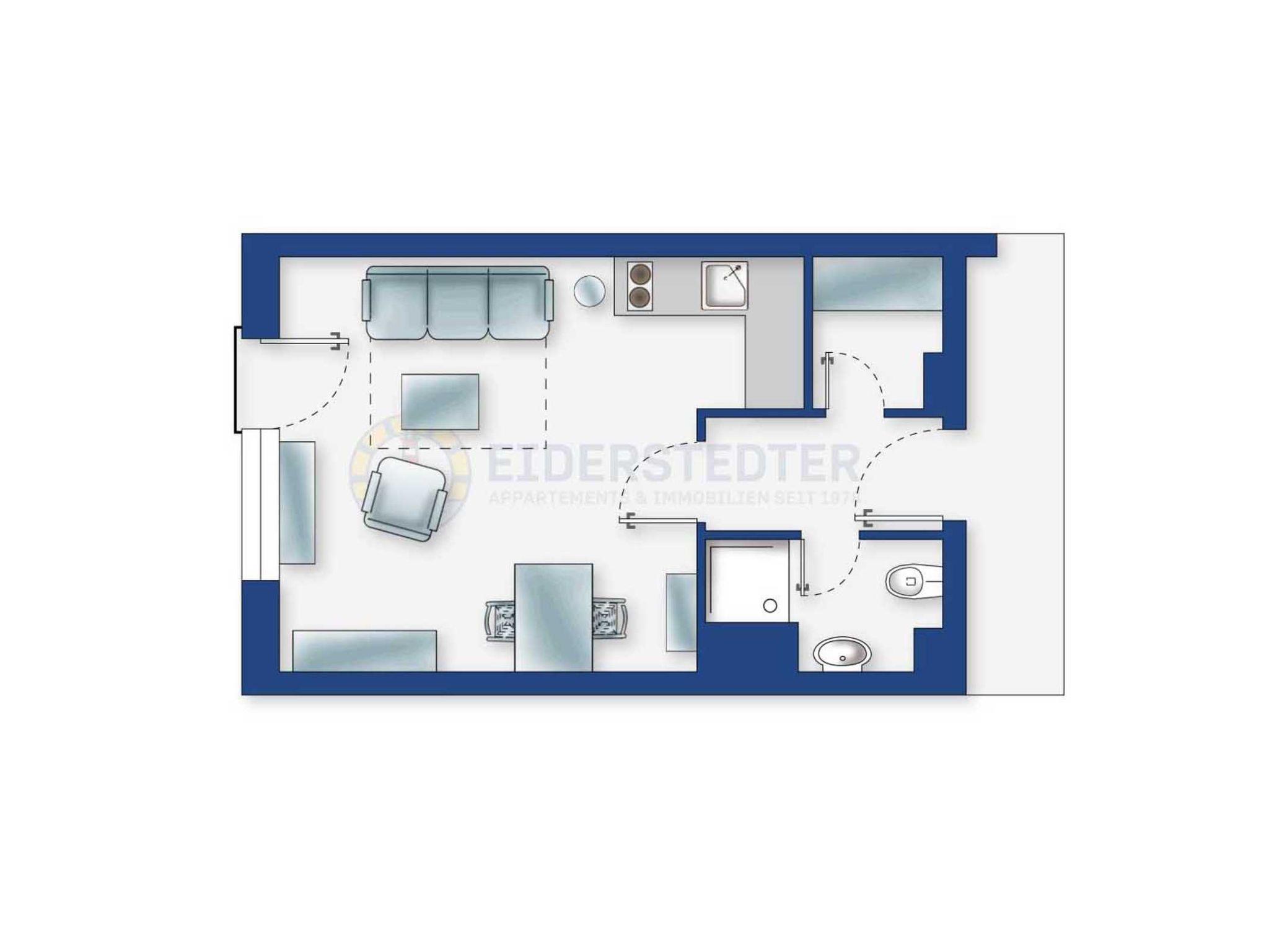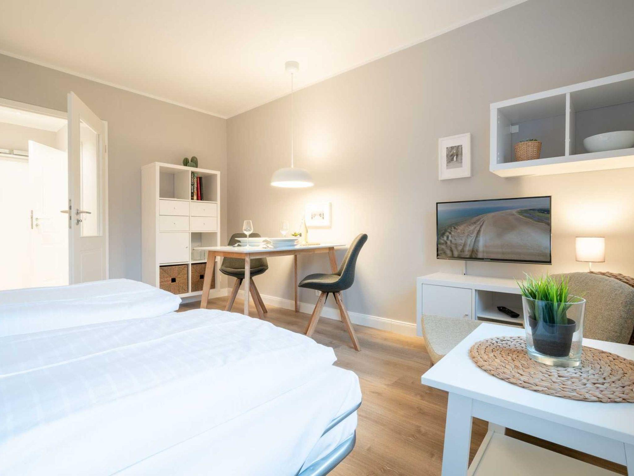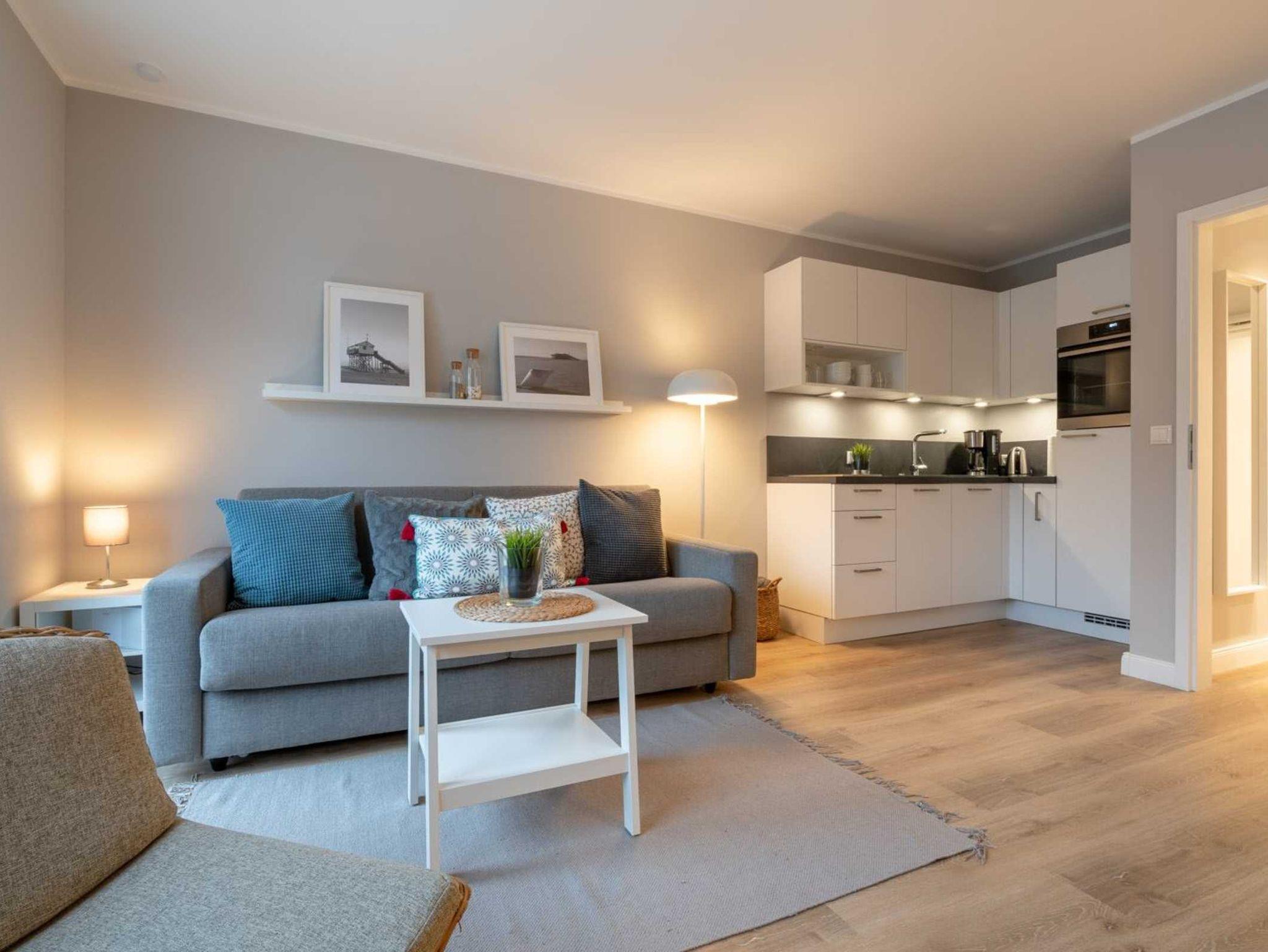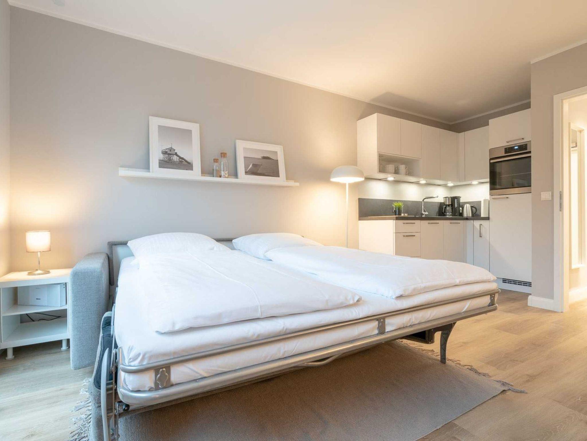 Exklusives Studio-Appartement mit ca. 28 qm auf 1 Ebene (1. OG, mit Fahrstuhl) für bis zu 2 Personen. Strandnahe Lage direkt am Deich im Ortsteil Bad in St. Peter-Ording. Die Strandpromenade ist direkt vor dem Haus und zu allen Geschäften und Restaurants des Kurzentrums ist es nur ein kurzer Fußweg. Genießen Sie den wunderschönen, weiten Ausblick über den Strand und das Meer bis zum Horizont. Entspannung und Erholung garantiert durch frische Seeluft und den Sauna-Bereich im Haus. Ideal für Ihren erholsamen Verwöhnurlaub an der Nordsee!