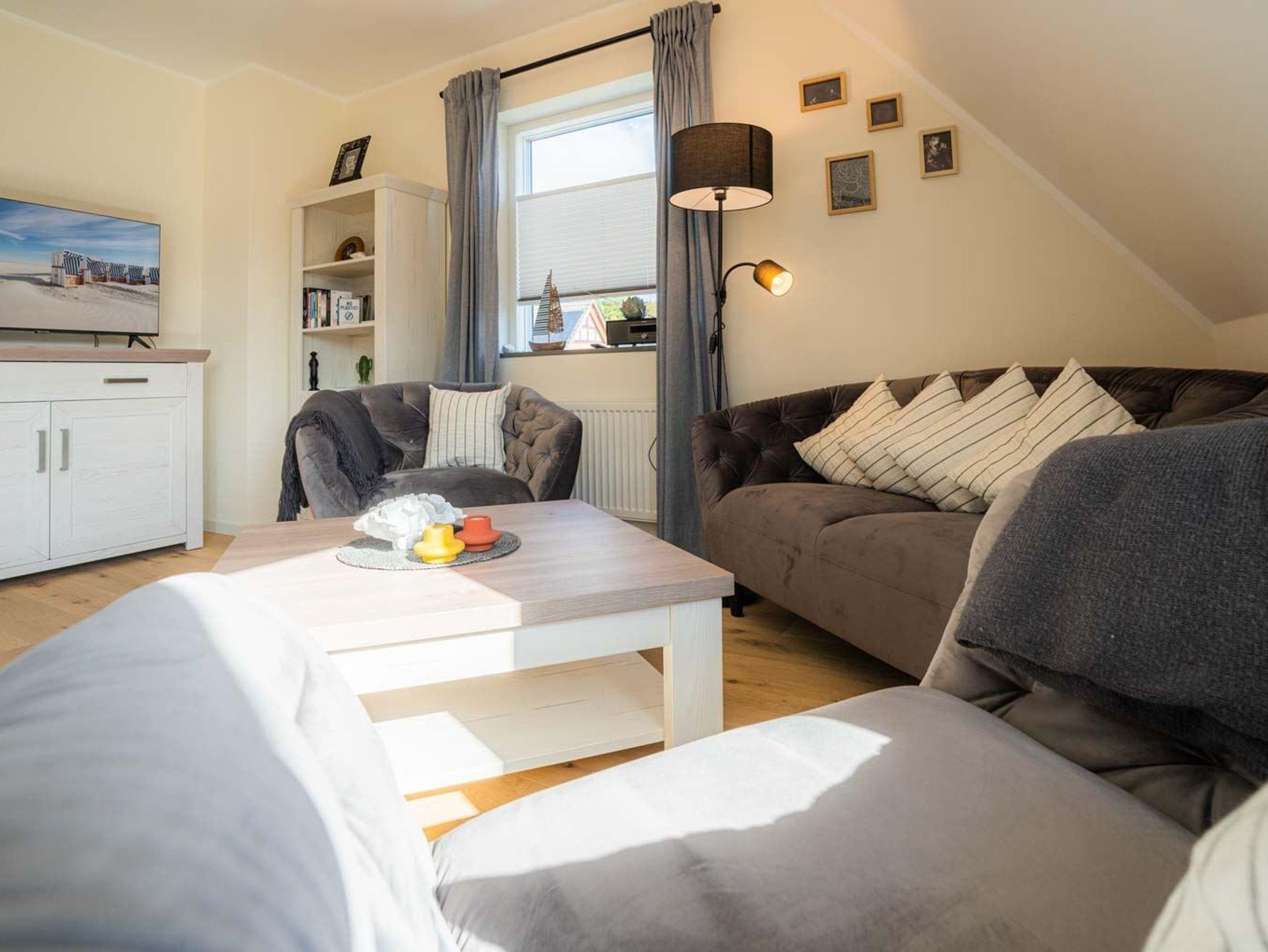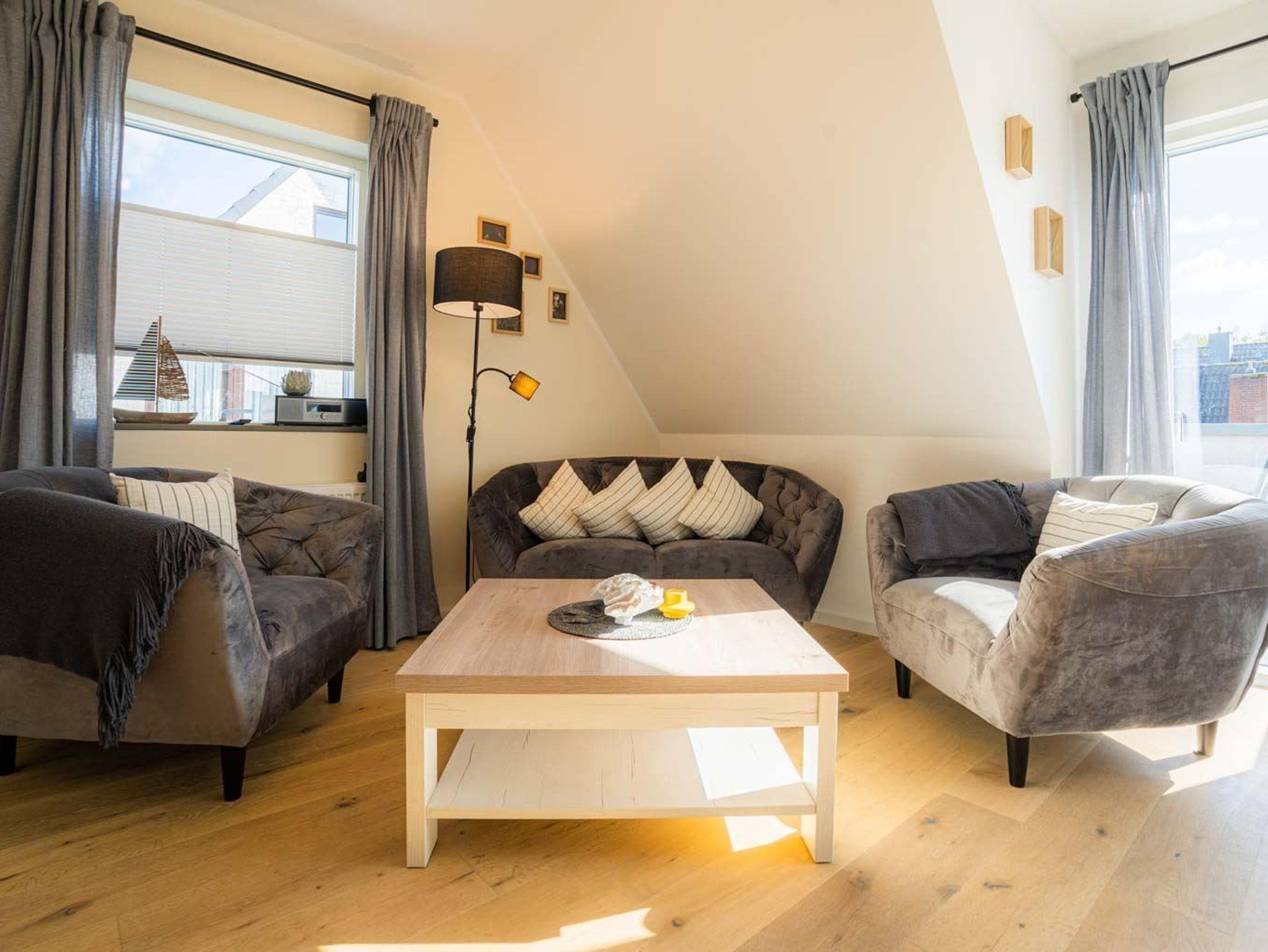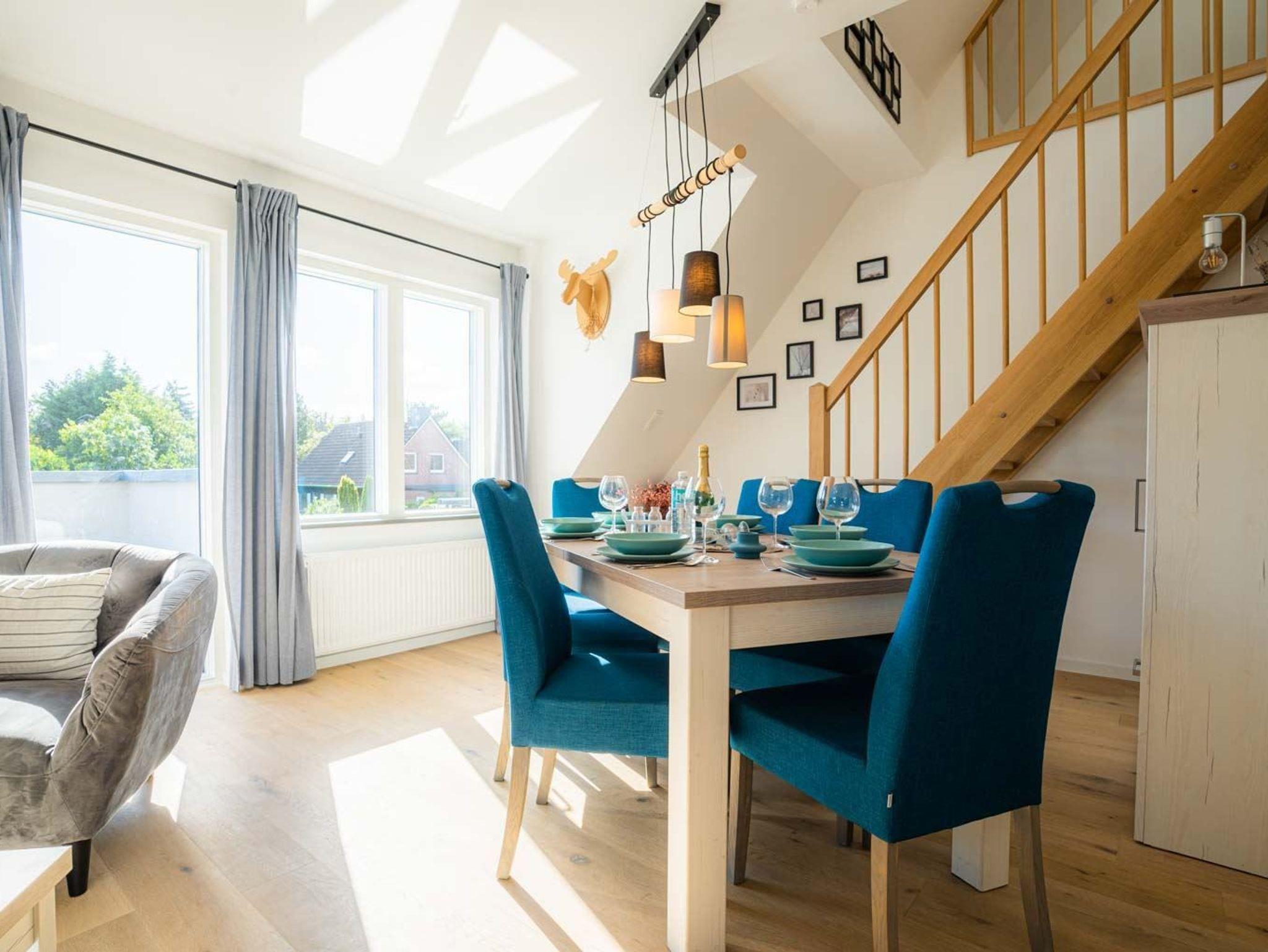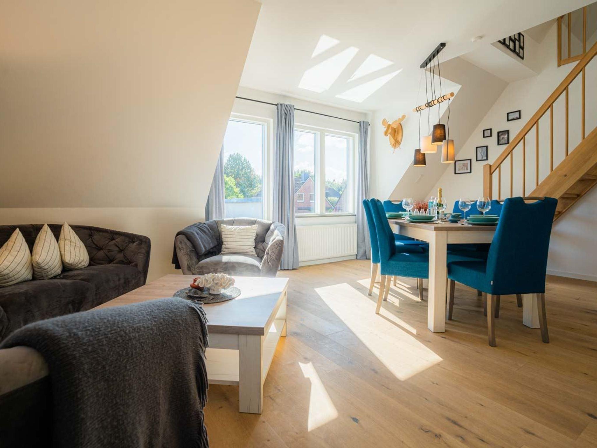 Sehr schön und komfortabel eingerichtete 4-Zimmer-Ferienwohnung Brisemit ca. 76 m² auf 2 Ebenen (OG, DG) für bis zu 6 Personen (Wohlfühlbelegung: max. 4 Erwachsene). In ruhiger Lage in einer Seitenstraße im Ortsteil Bad in St. Peter-Ording. Zum nächsten Strandübergang sind es nur ca. 900 Meter zu Fuß. Hunde sind herzlich willkommen.
