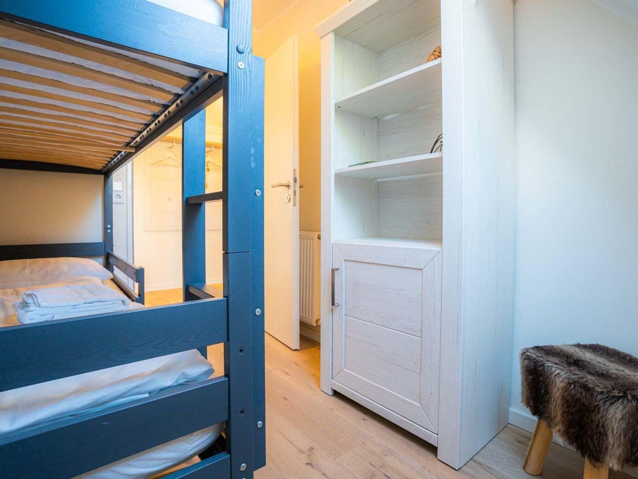 2. Schlafzimmer mit 2 Etagen-Einzelbetten (je 80x190cm) und Kleiderschrank.