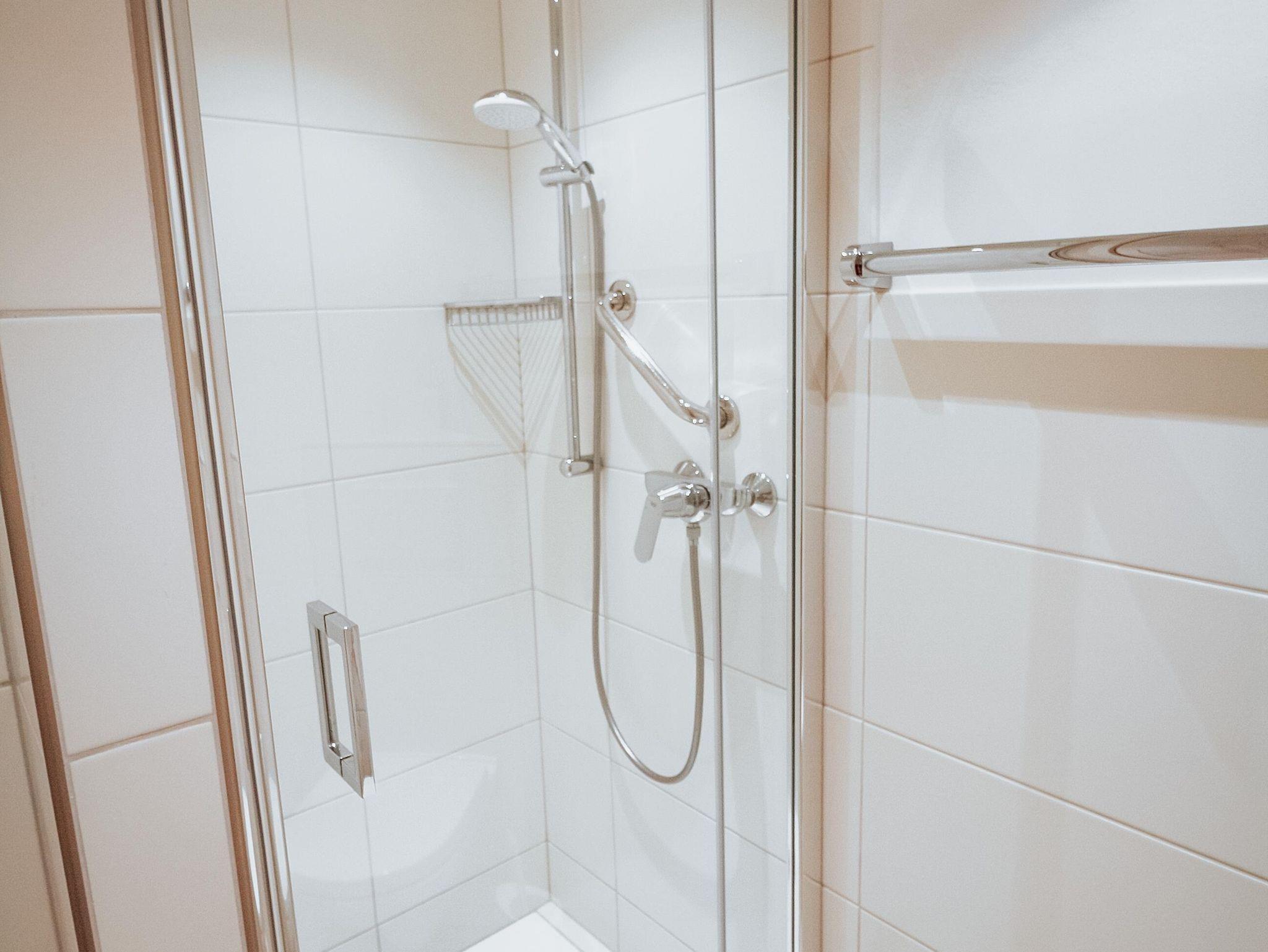 Ferienwohnung im Erdgeschoß mit 2 getrennten Schlafzimmmern mit je 2 Einzelbetten, Dusche und WC.