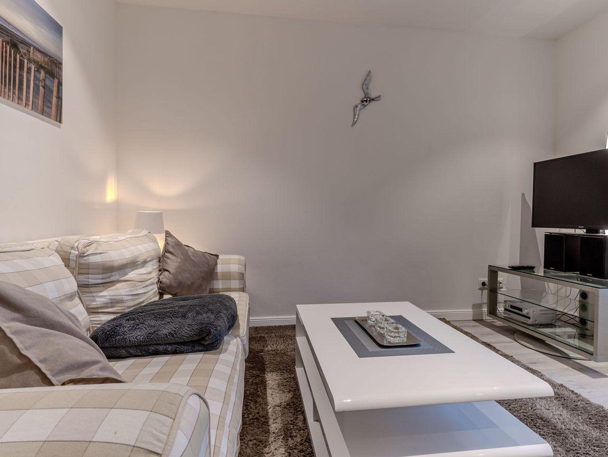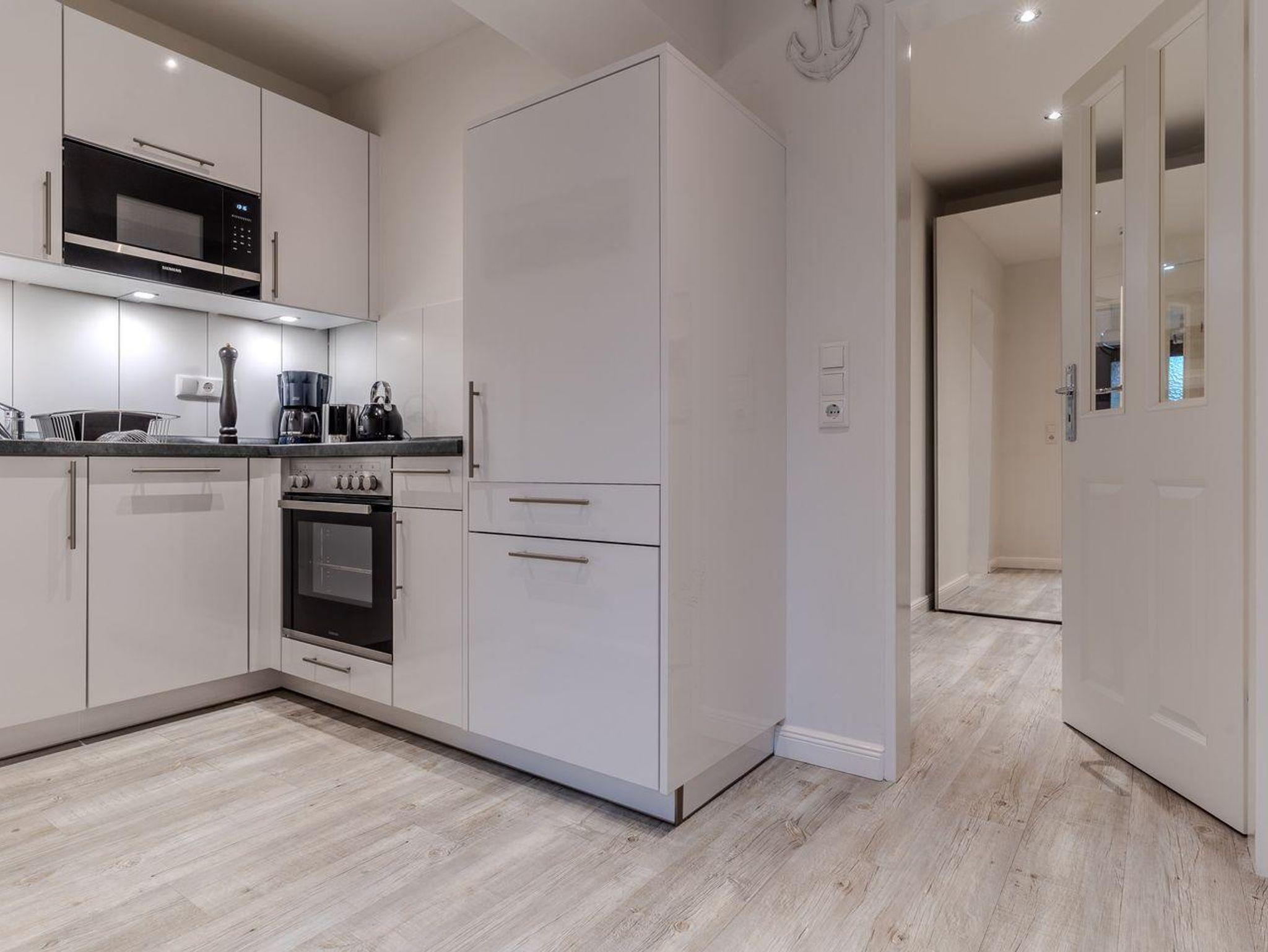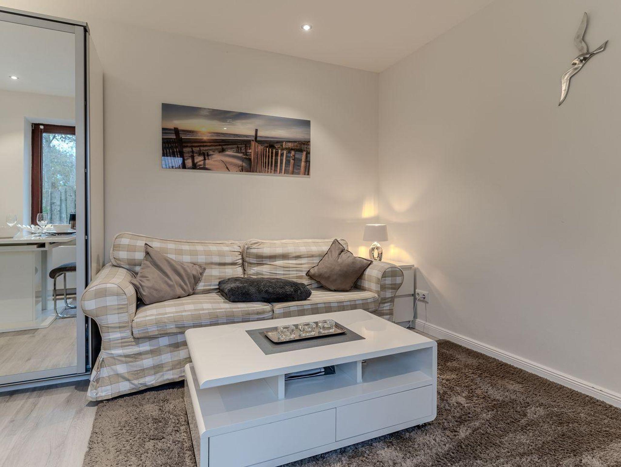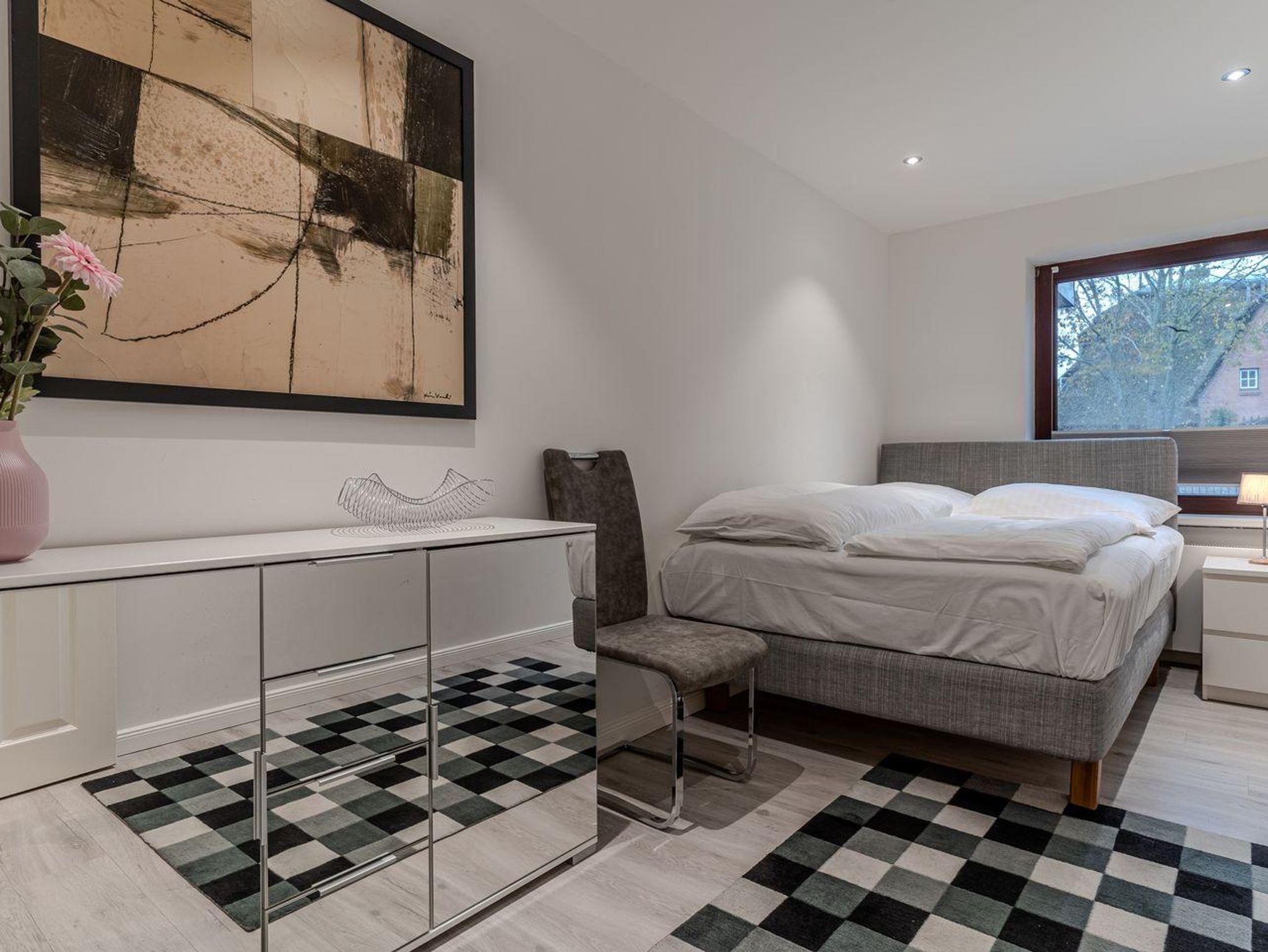 Die moderne, 40m² große Ferienwohnung, welche im Jahr 2020 vollständig saniert wurde, liegt im Erdgeschoss und bietet bis zu 4 Personen Platz für einen unvergesslichen Urlaub in St. Peter-Ording. Durch die Lage und Ausstattung ist die Ferienwohnung besonders familienfreundlich, Kinder sind hier herzlich willkommen. Dank der Erdgeschosslage eignet sich die Ferienunterkunft wunderbar für mobilitätseingeschränkte Gäste. Die Ferienwohnung verfügt über eine kleine Terrasse. Auch der Urlaub mit Hund in St. Peter Ording ist hier möglich, bis zu 2 Hunde sind hier herzlich willkommen. Das moderne Wohnzimmer wirkt durch die große Fensterfront wunderbar hell und freundlich. Zur Ausstattung gehören eine komfortable Couch und der große Esstisch, an dem die ganze Familie Platz findet. Die Couch lässt sich zum komfortablen Schlafplatz für 2 Personen umfunktionieren. Für die multimediale Unterhaltung sorgen ein großer Flachbild-TV, Radio mit Bluetooth und kostenfreies W-LAN. Für die Versorgung im Urlaub sorgt die vollumfassend ausgestattete Küche der Ferienwohnung. Hier stehen neben Cerankochfeld und Backofen noch Kühlschrank, Mikrowelle und Nespresso-Maschine bereit. Orangenpresse und Milchaufschäumer gehören ebenfalls zum Inventar. Im hellen, einladenden Schlafzimmer steht ein komfortables 140x200cm Boxspringett zur Verfügung. Zur edlen Ferienwohnung gehören weiterhin Duschbad mit WC, Haartrockner und Schminkspiegel. Alle Fenster der Ferienwohnung sind mit Fliegenschutzgitter und Verdunklungsplissees ausgestattet. Die große Fensterfront ist mit elektrischem Außenrollo ausgestattet, um Licht und Sichtschutz nach Belieben regulieren zu können. Feriengästen steht zudem eine kostenfrei nutzbare Waschmaschine zur Verfügung.