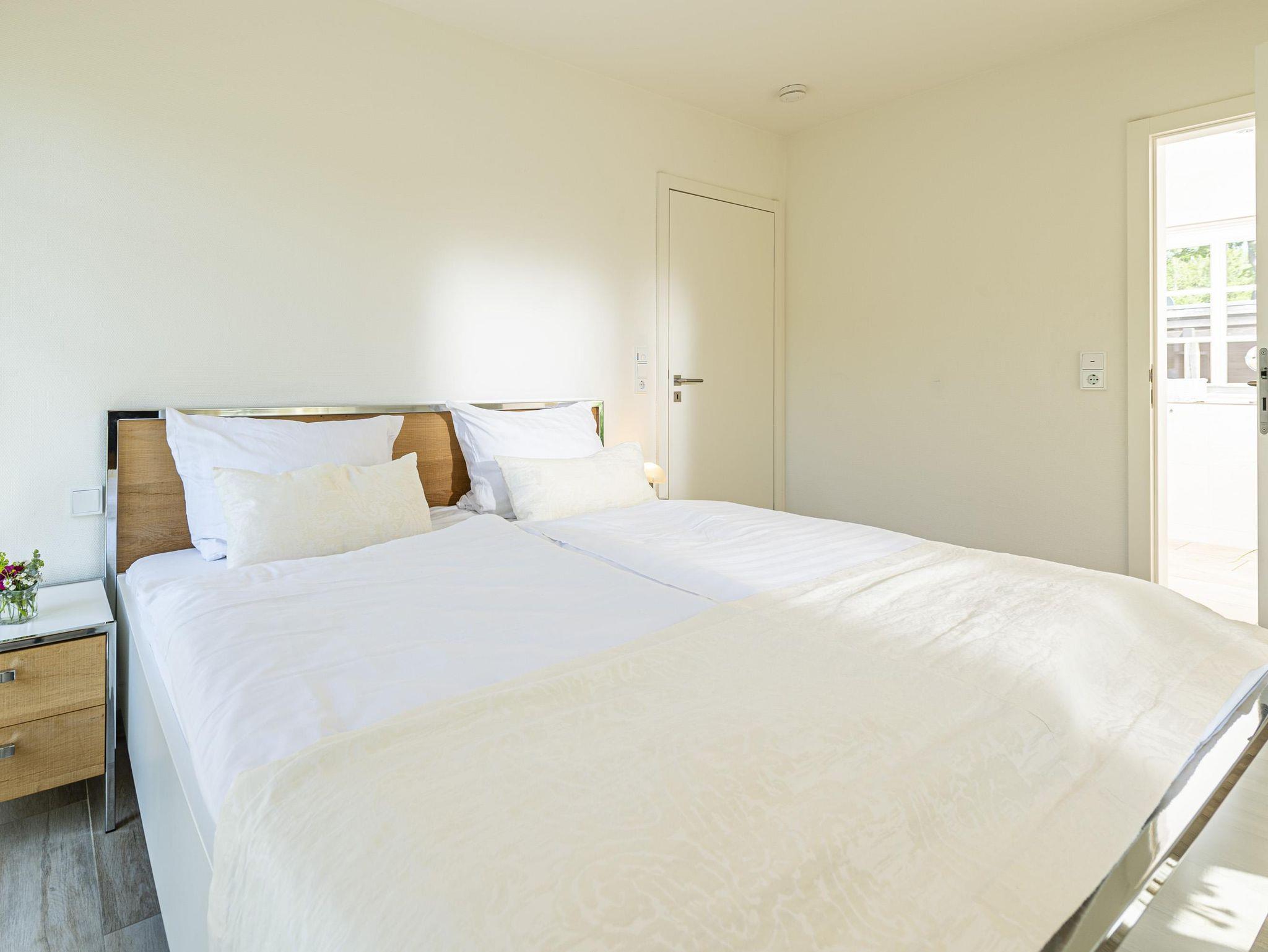Im Obergeschoss befindet sich eine kleine Schreibecke, 2 Schlafzimmer. Eines hat ein Doppelbett, das andere zwei Einzelbetten, welche sich aber problemlos zusammenschieben lassen. Ausreichend Stauraum bieten die Einbauschränke. Jedes Schlafzimmer verfügt über einen Fernseher. Zudem finden Sie hier ein Wannenbad / WC mit separater Dusche. Entspannen können Sie in der großen Eckbadewanne, durch den Farblichtwechselmodus (Lichttherapie) erwartet Sie ein besonderer Komfort.