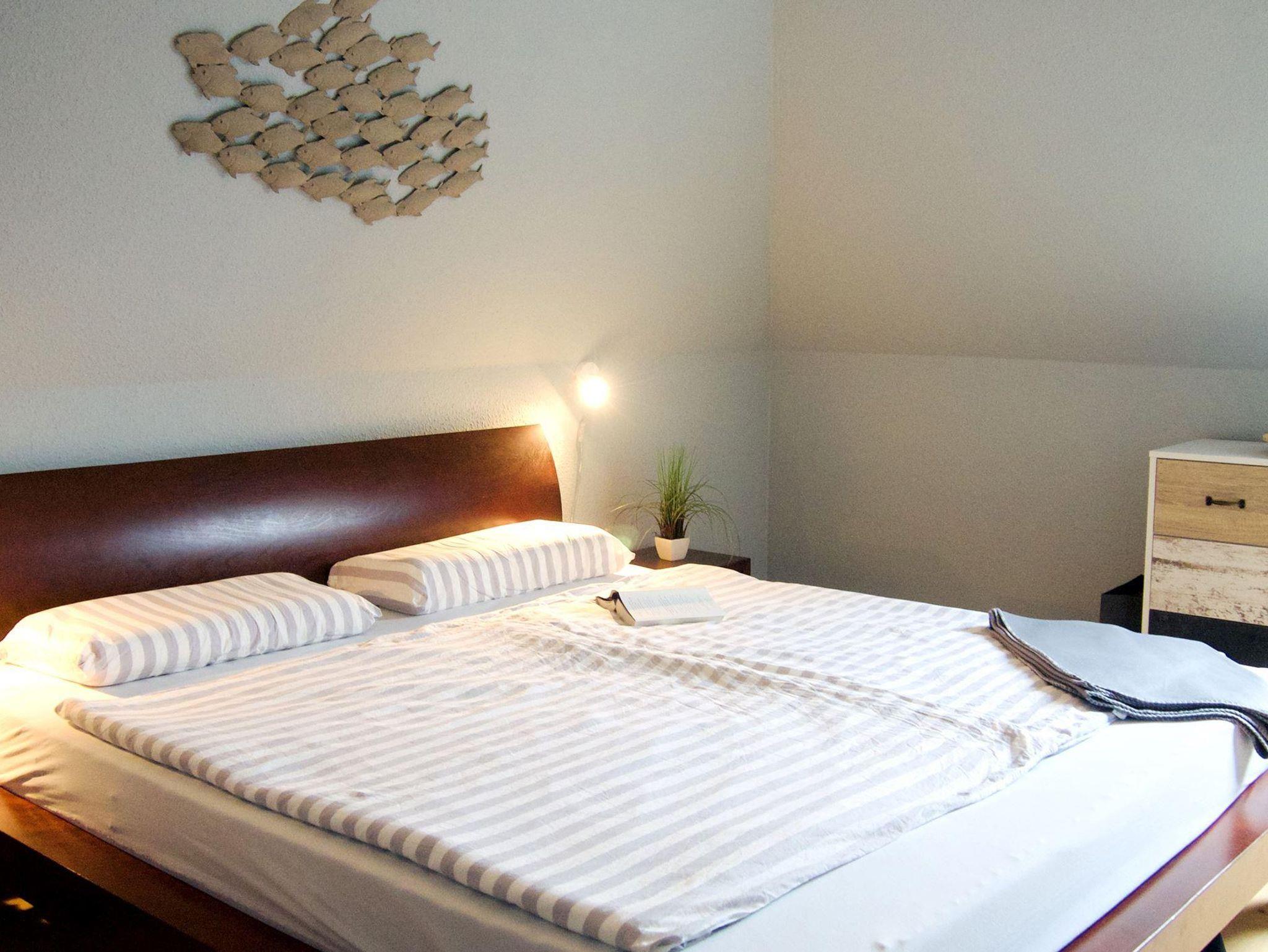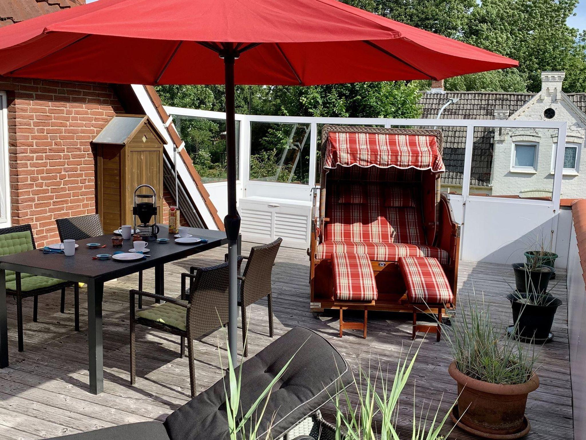 Die liebevoll gestaltete Ferienwohnung Sünnkieker mit ihrer 40 qm großen, sonnigen Dachterrasse befindet sich im Herzen des Ortsteils Dorf, ruhig gelegen, aber doch mittendrin. Die Nichtraucherwohnung ist ca 60 qm groß,(inkl. anteiliger Dachterrasse), hat 2 Schlafzimmer und ist für 2 bis 4 Personen und einem kleinen Hund (bis 40cm). In den meisten Fenstern Insektenschutzgitter. Nichtraucherwohnung mit Parkplatz, Fahrradständern und kostenfreien W-Lan.