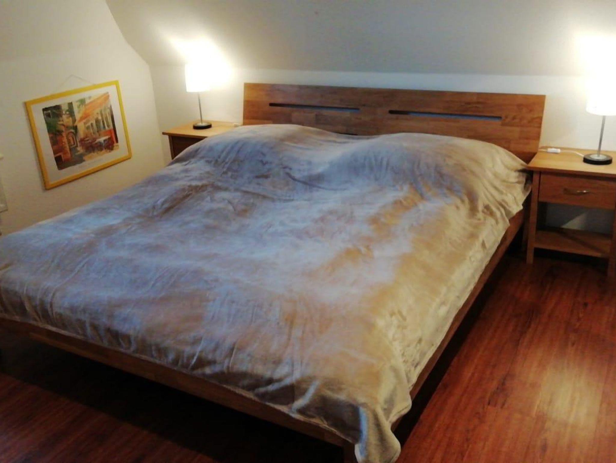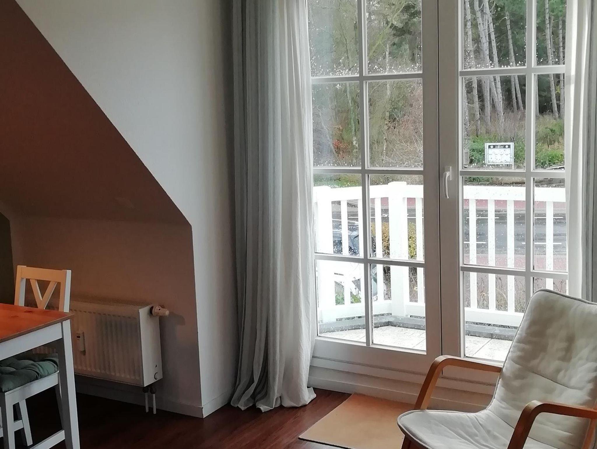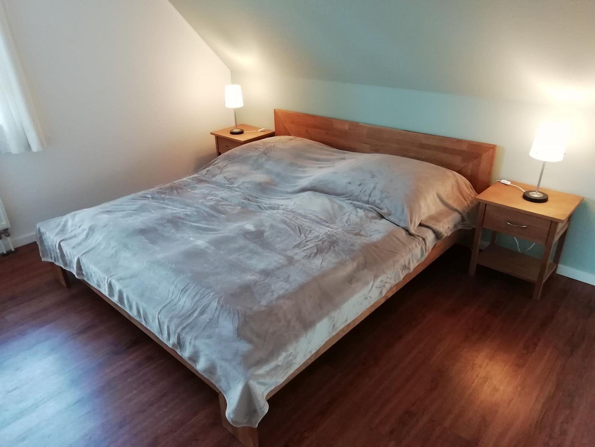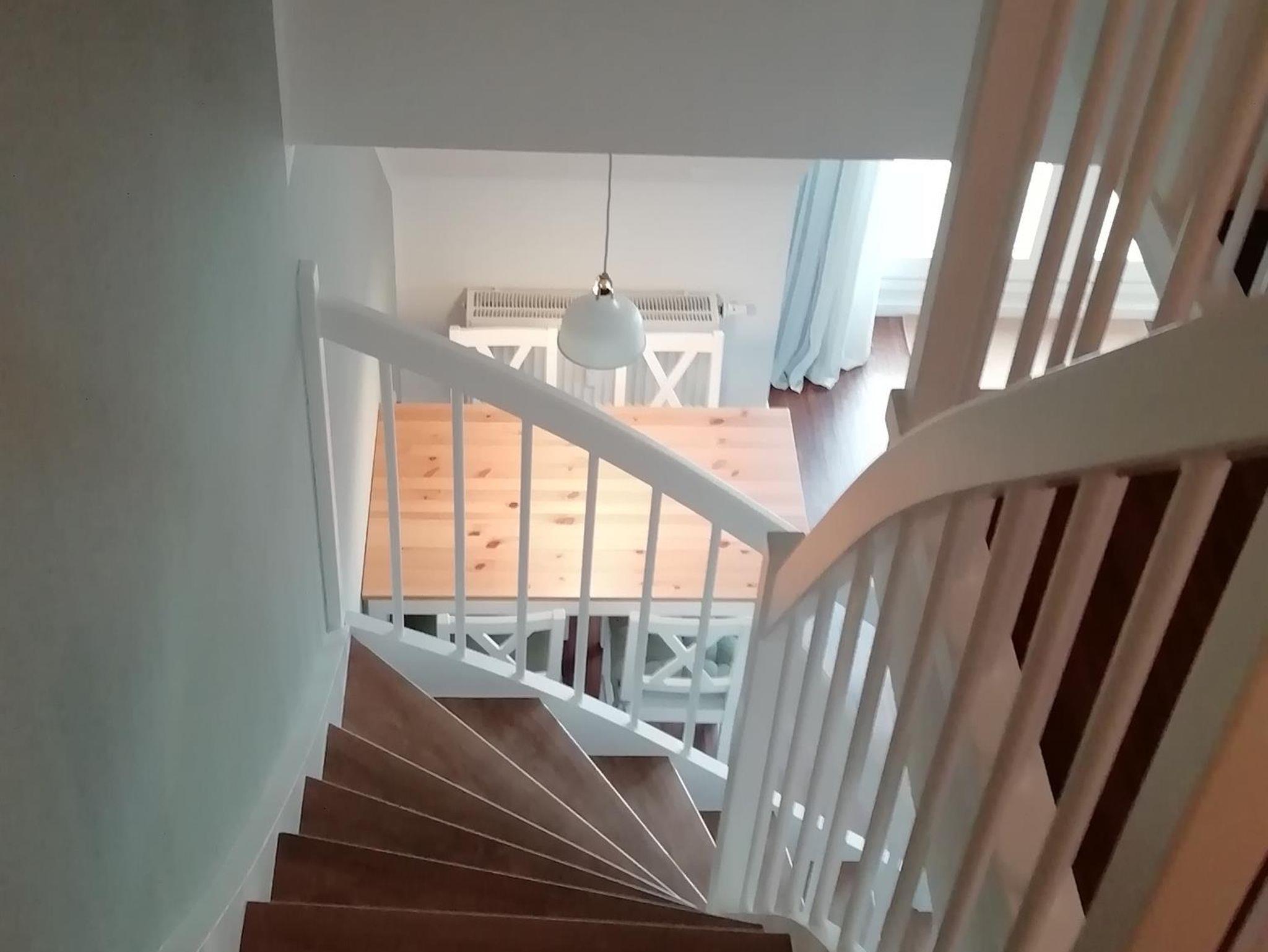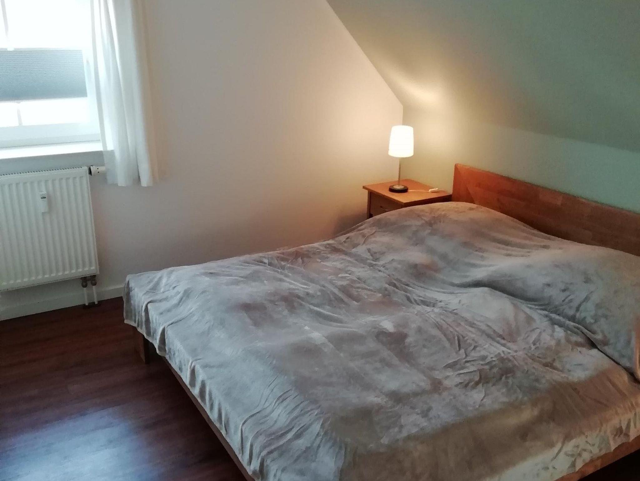 Die Ferienwohnung ist hell, freundlich und liebevoll eingerichtet. Sie ist ausgestattet mit einer Einbauküche mit Backofen, Mikrowelle, Geschirrspüler, Toaster, Wasserkocher und Kaffeemaschine, einer kleinen Essecke und einem gemütlichen Wohnbereich mit Radio und Kabel-TV und einem Zugang zum Balkon. Es steht auch eine Internetnutzung per WLAN zur Verfügung. Die Wohnung verfügt über ein Schlafzimmer mit Doppelbett und einem großen Schlafzimmer ebenfalls mit Doppelbett im Spitzboden. Für Kleinkinder stehen ein Reisebett und ein Kinderhochstuhl zur Verfügung. Im hellem Badezimmer ist eine Dusche vorhanden. Einen Fön stellen wir Ihnen ebenfalls zur Verfügung. Zur Ferienwohnung gehört auch ein gemeinschaftlicher Fahrradkeller und eine gemeinsame Waschmaschine. Die Wohnung und die Umgebung ist kinderfreundlich. Es handelt sich um eine Nichtraucherwohnung. Haustiere sind nicht erlaubt.