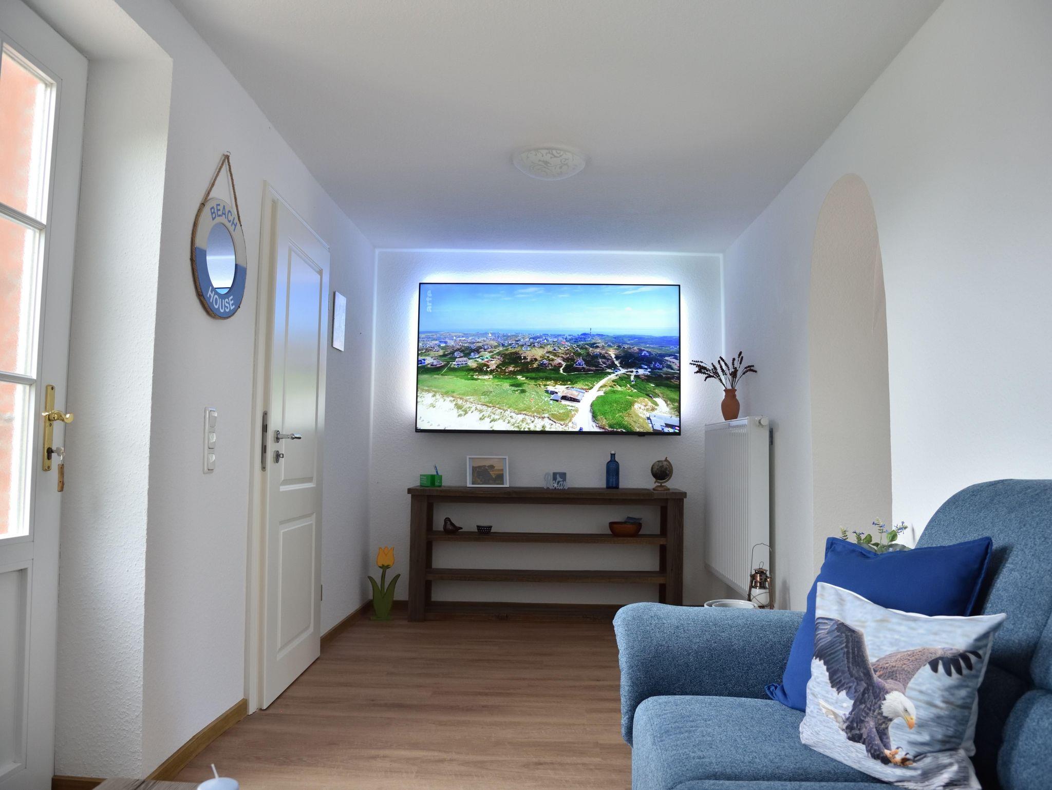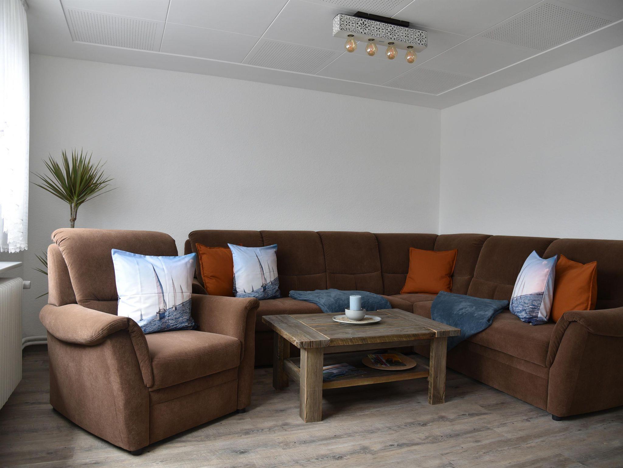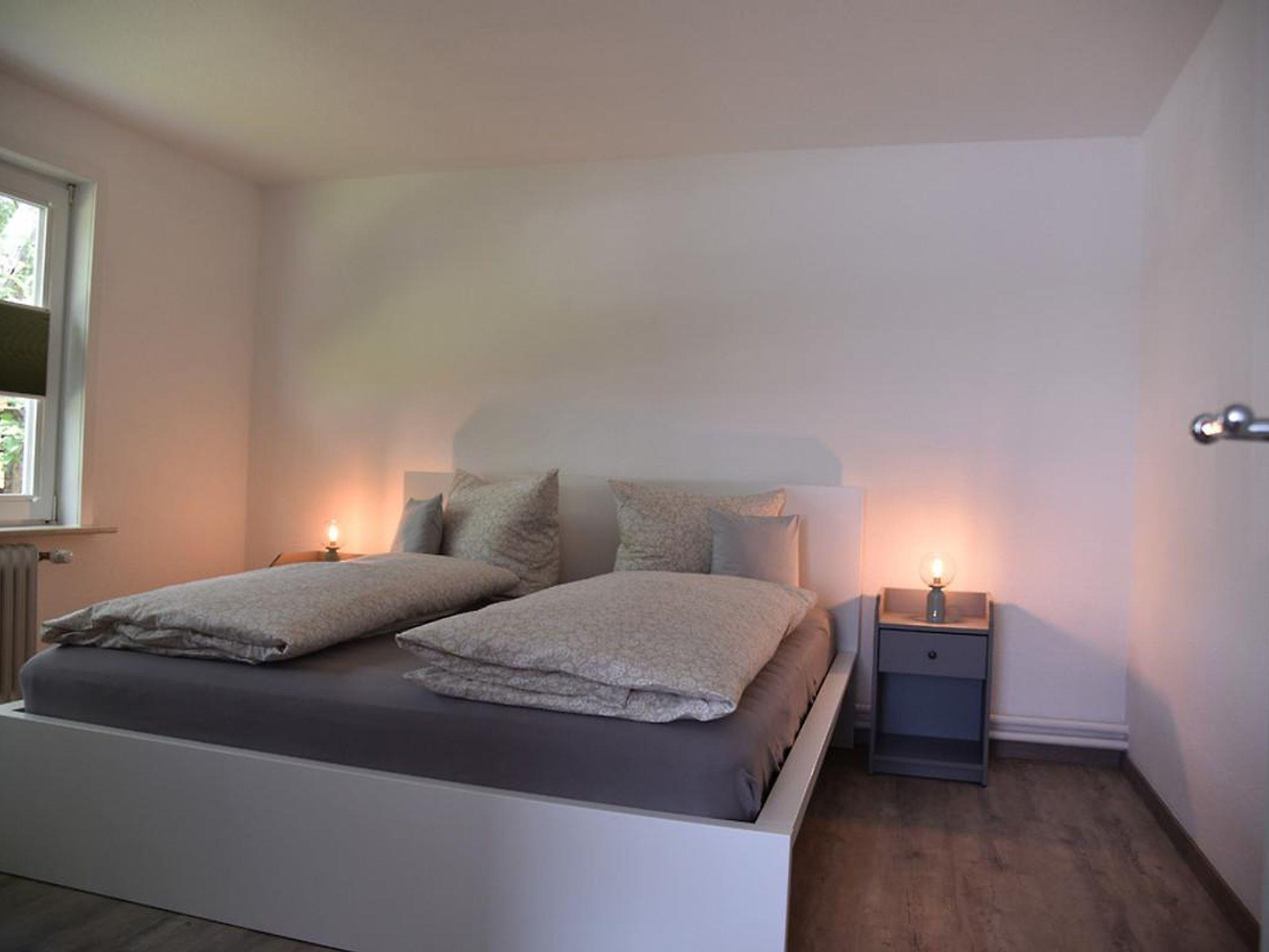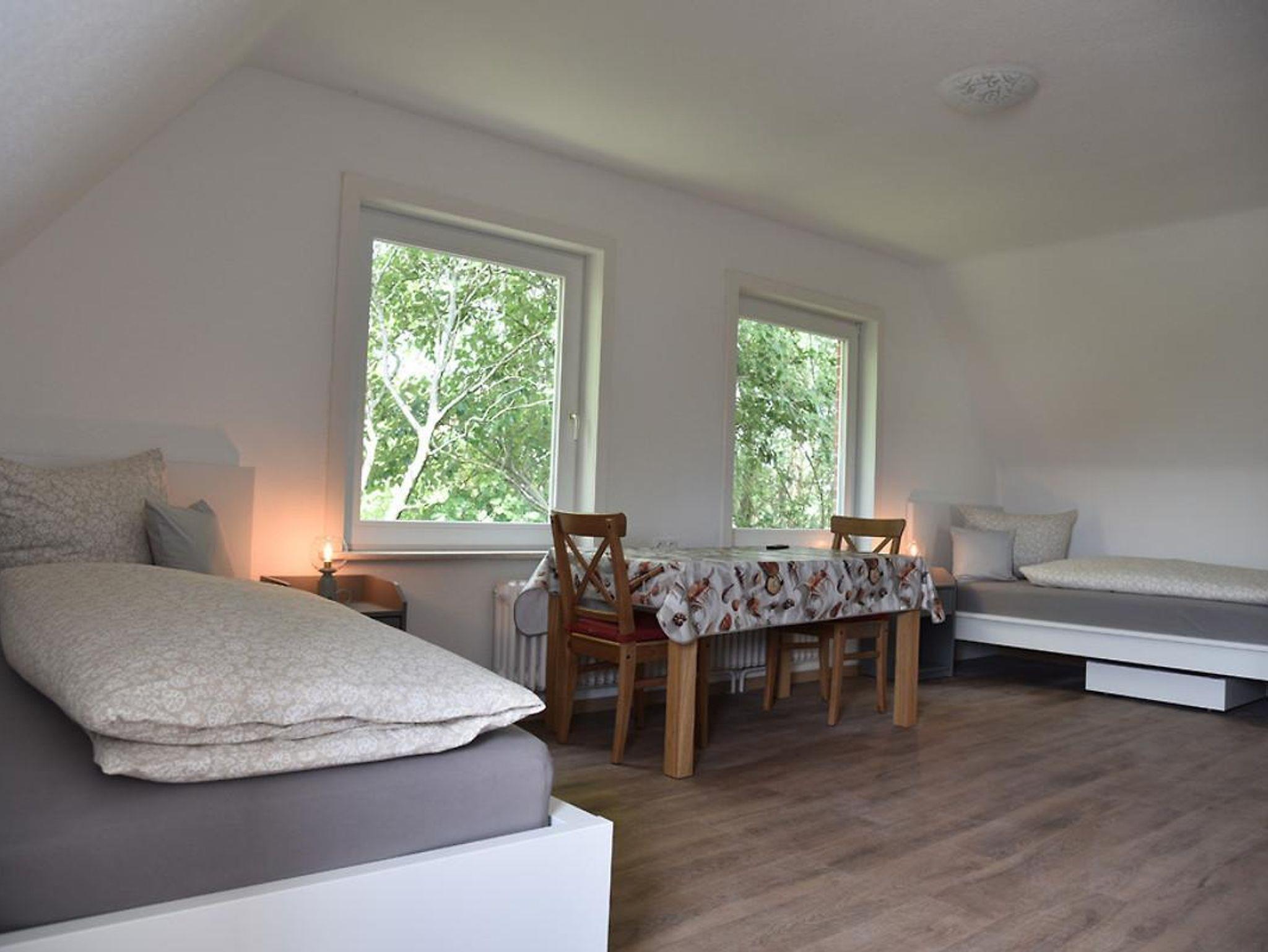 Den Anbau betreten Sie entweder über den Durchgang vom Essplatz in der Küche aus oder über den separaten Außeneingang. Im Anbau finden Sie einen weiteren Wohnbereich (mit riesigem Fernseher und großer Eckcouch) sowie vom Flur abgehend einen zusätzlichen Schlafraum und ein eigenes großzügiges Duschbad. Alle vier Schlafräume bieten entweder ein Doppelbett (EG und einer im OG Haus) oder je zwei Einzelbetten und Schränke.