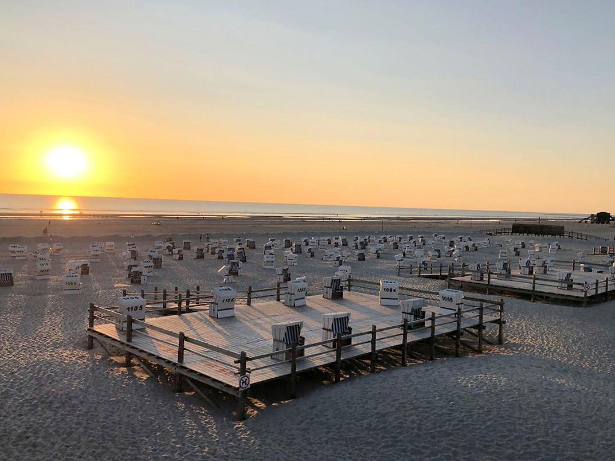 Am Strand findet sich die komplette Infrastruktur mit Spielplatz, Strandkorbvermietung und in den berühmten Pfahlbauten ein Restaurant, Sanitäranlagen und Badeaufsicht.