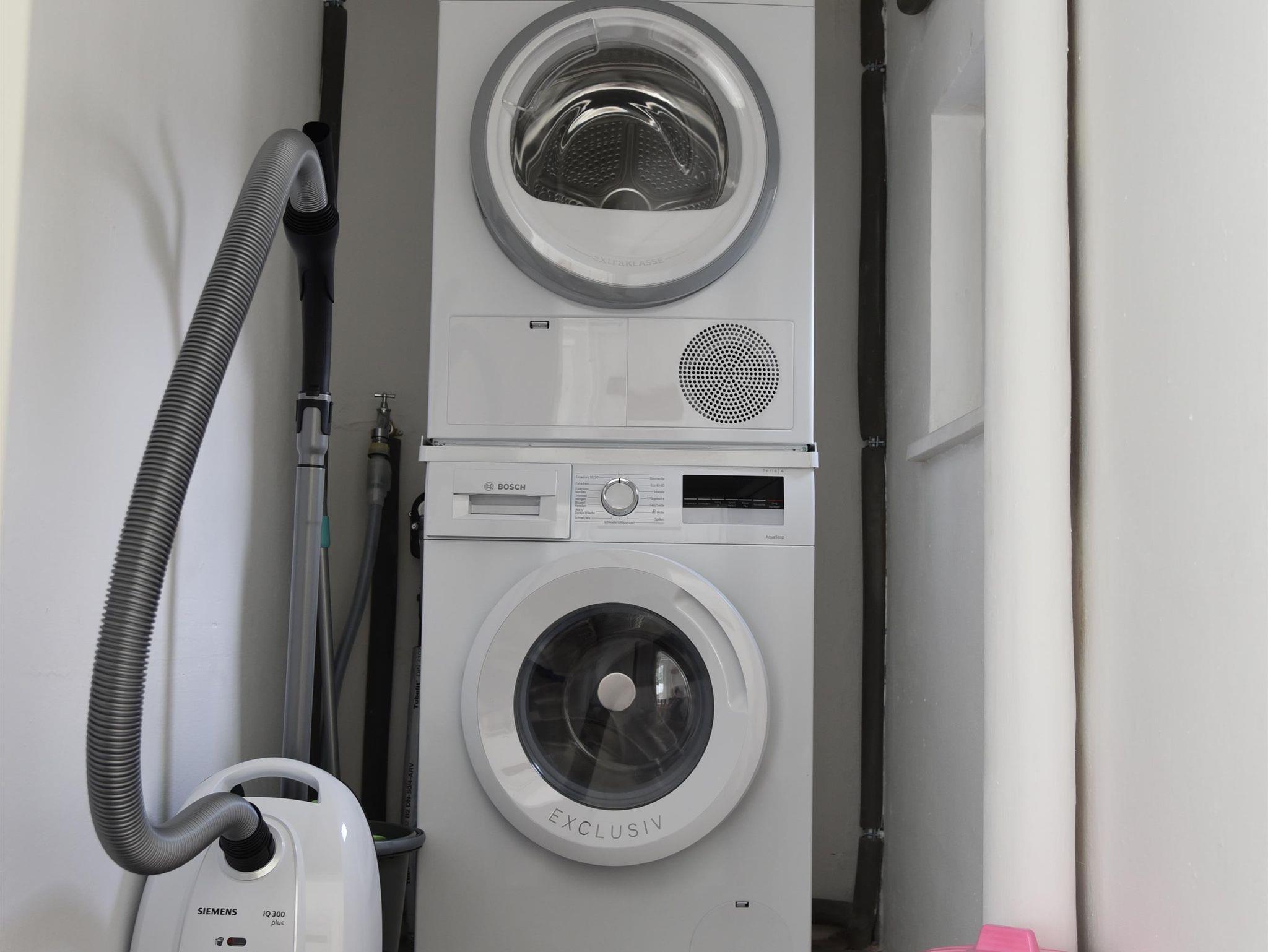 Waschmaschine und Trockner stehen im Hauswirtschaftsraum zur kostenlosen Nutzung zur Verfügung.