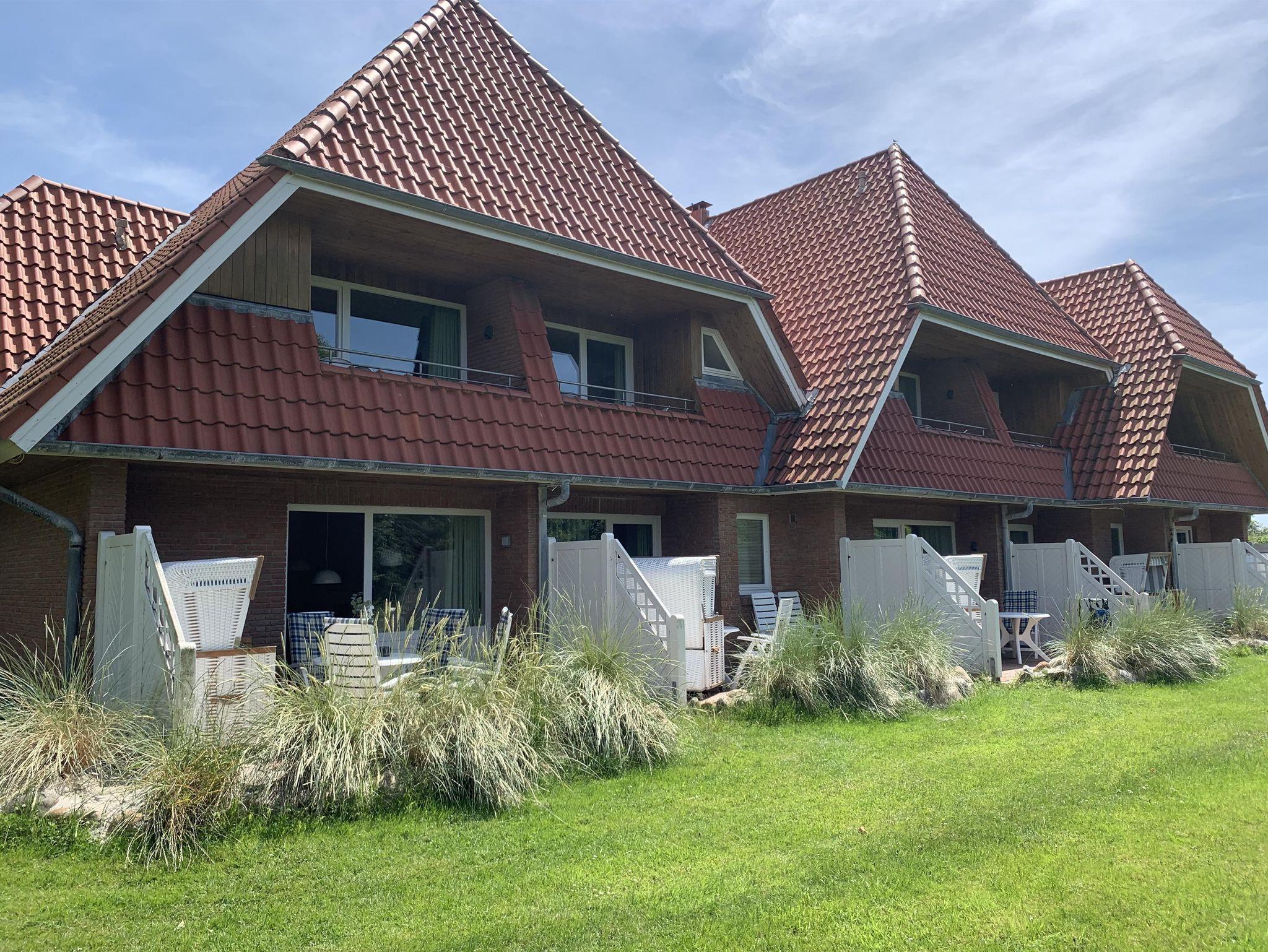 Das über 10.000 qm große Appartementhausgrundstück, eingerahmt von alten, landtypischen Bäumen ist parkähnlich mit Liegewiesen für unsere Gäste angelegt. Ein kurzer Weg, ca 100m, und Sie sind bereits im Dünengelände und am Strand.
