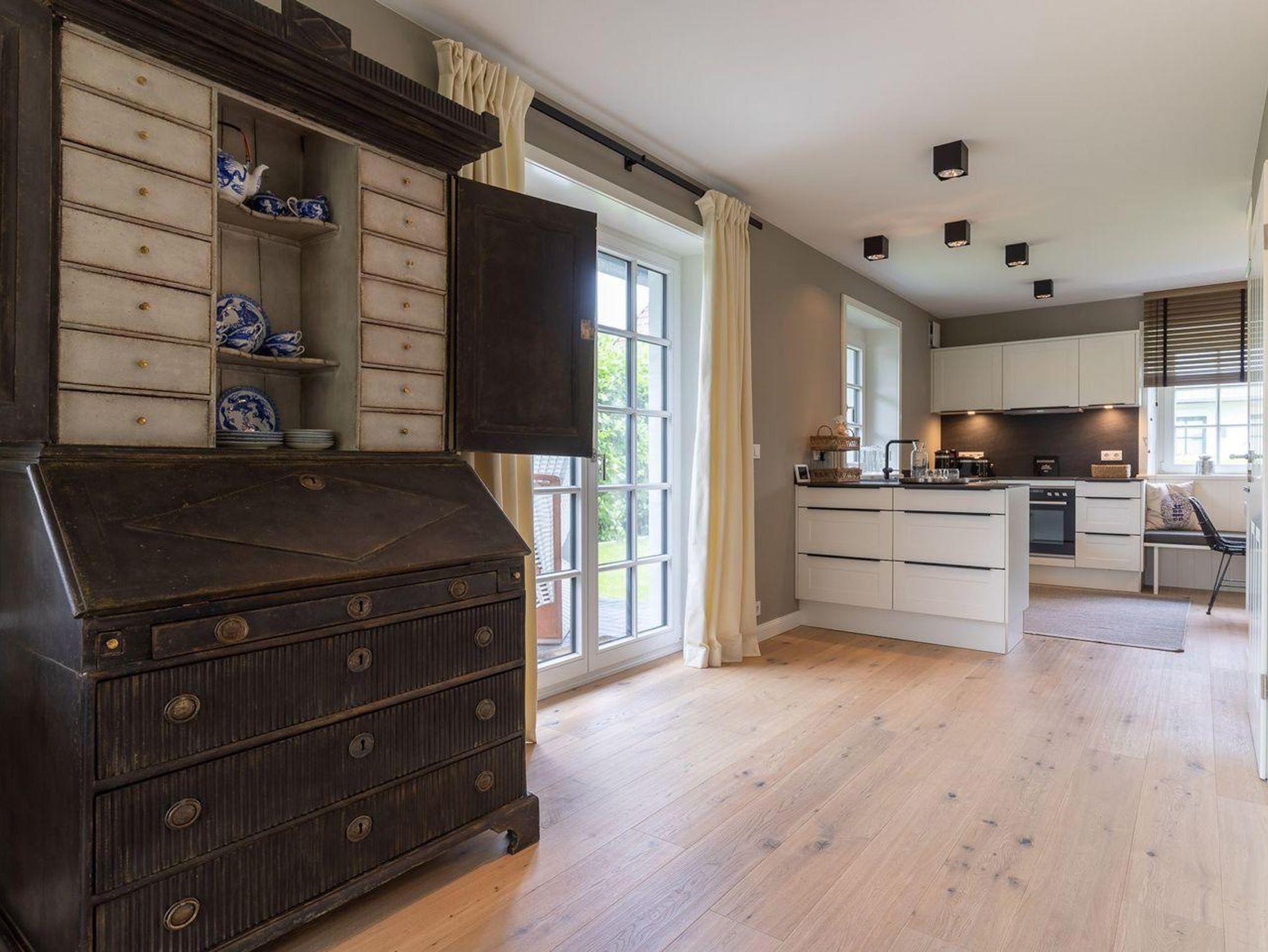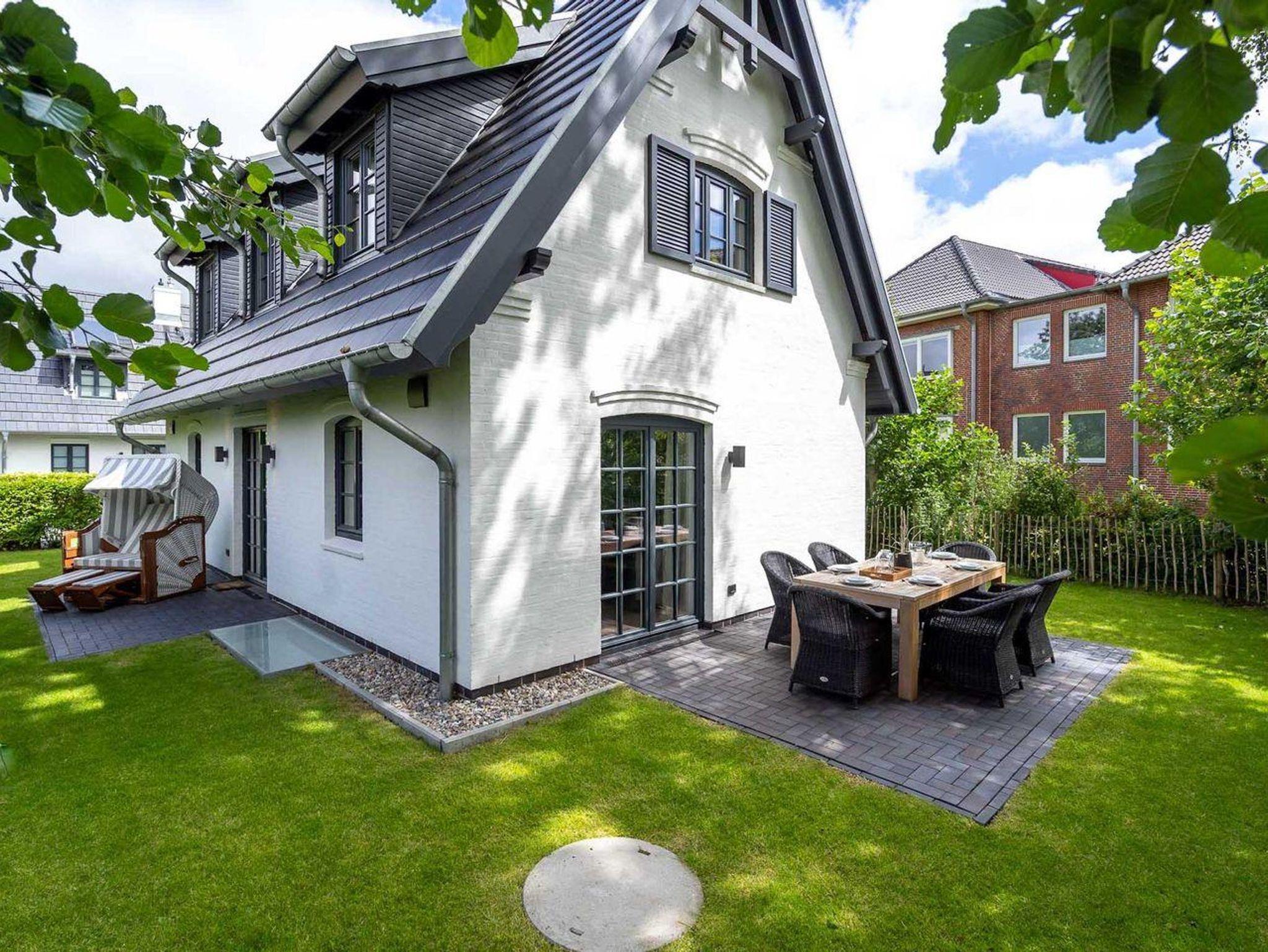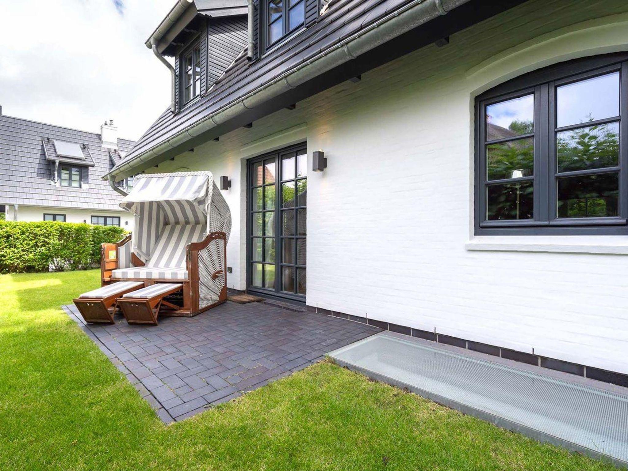 Das Grundstück mit Stellplatz, Rasenfläche rund um das Haus und zwei sonnigen Süd- und West-Terrassen ist mit heimischen Pflanzen angelegt. Ein Strandkorb und gemütliche Rattansessel um den großen Gartentisch laden zu gemütlichen Stunden im Freien ein. Dieses stilvolle Haus lässt keine Wünsche offen und bringt Sie sofort in Urlaubsstimmung! (Keine Jugendgruppen erwünscht)