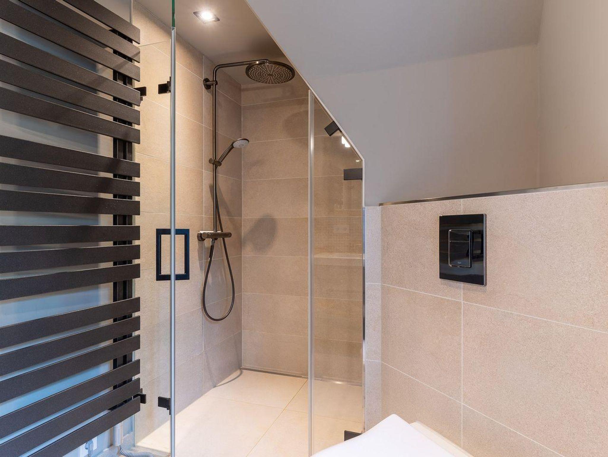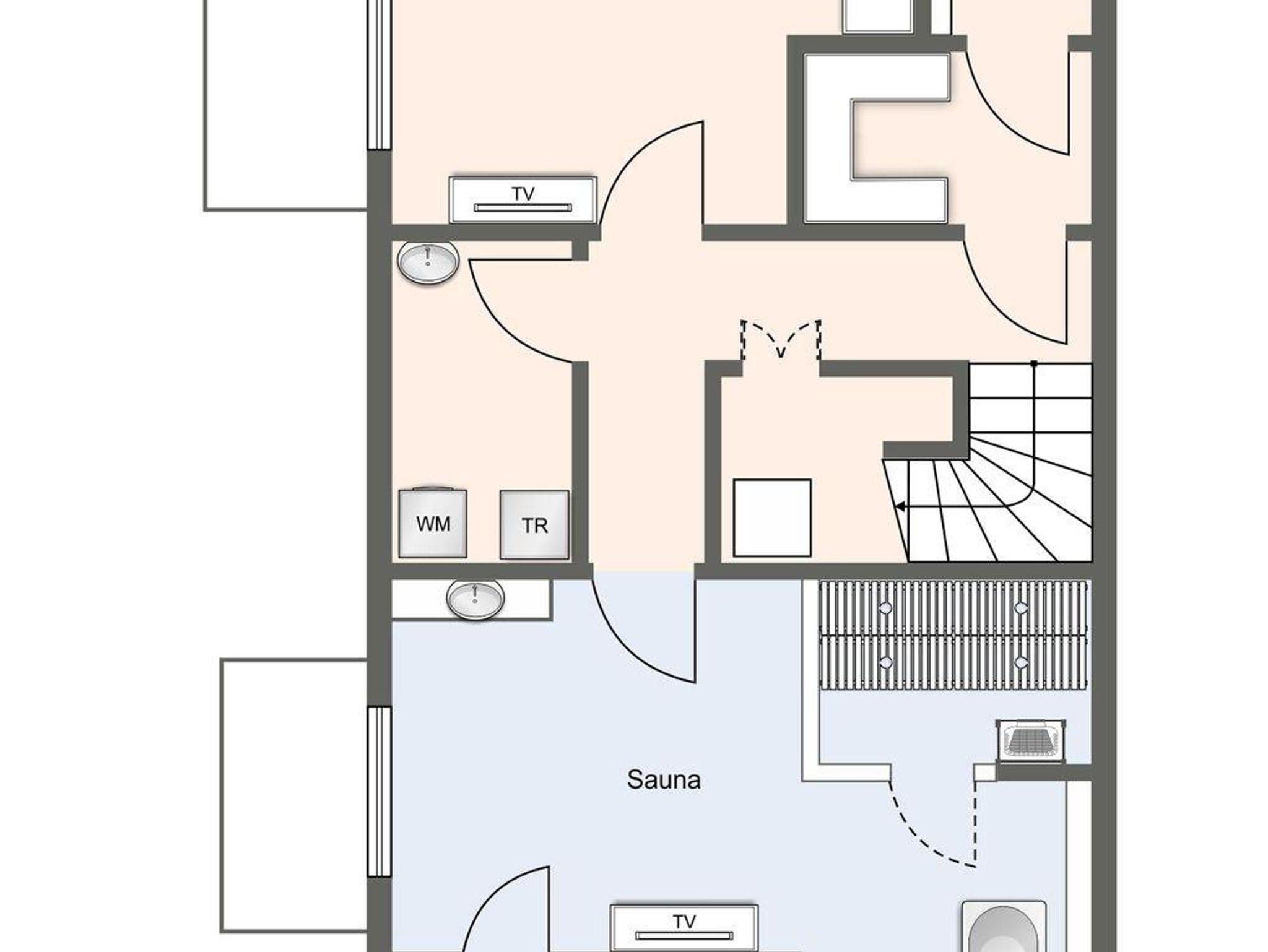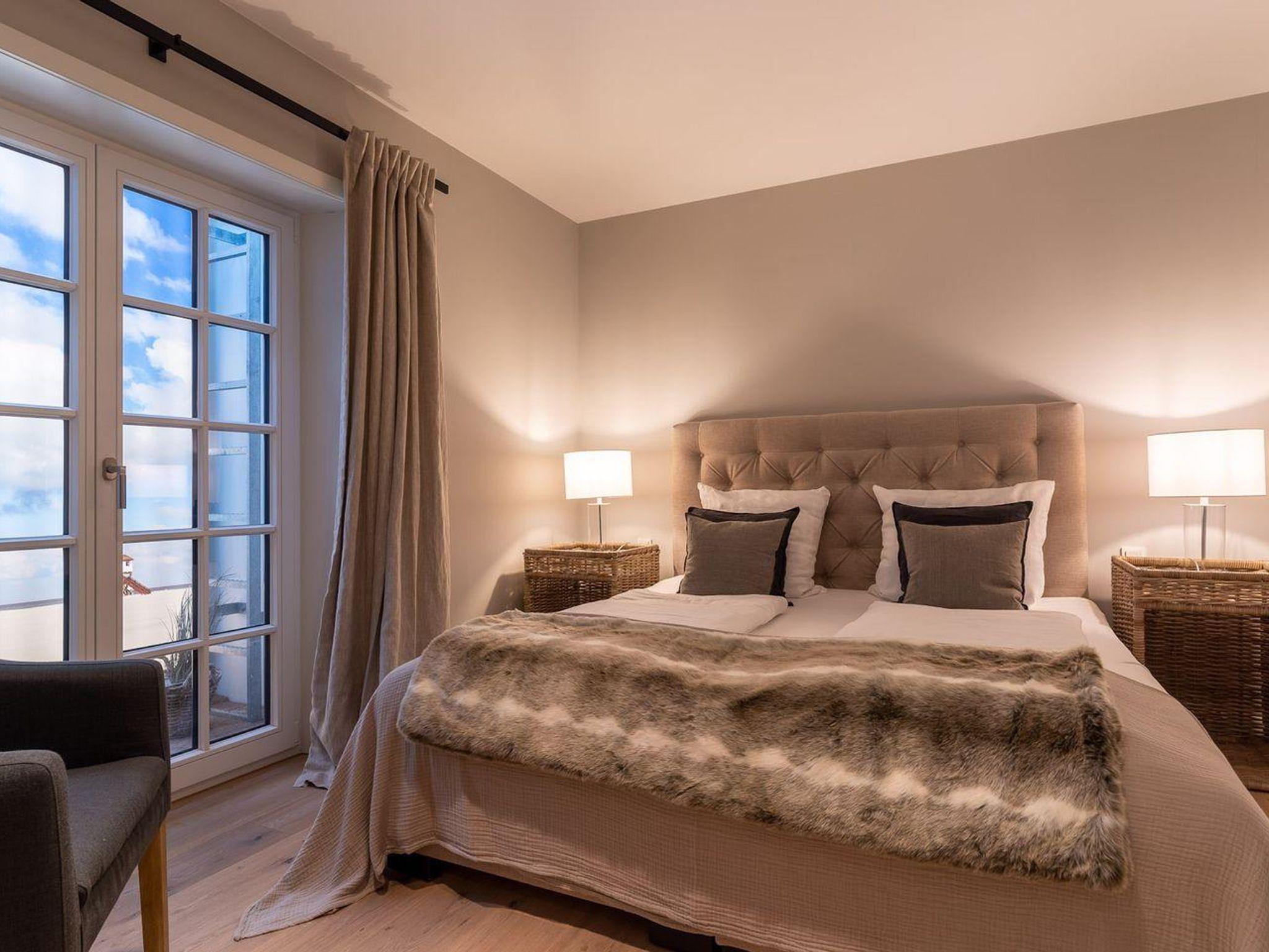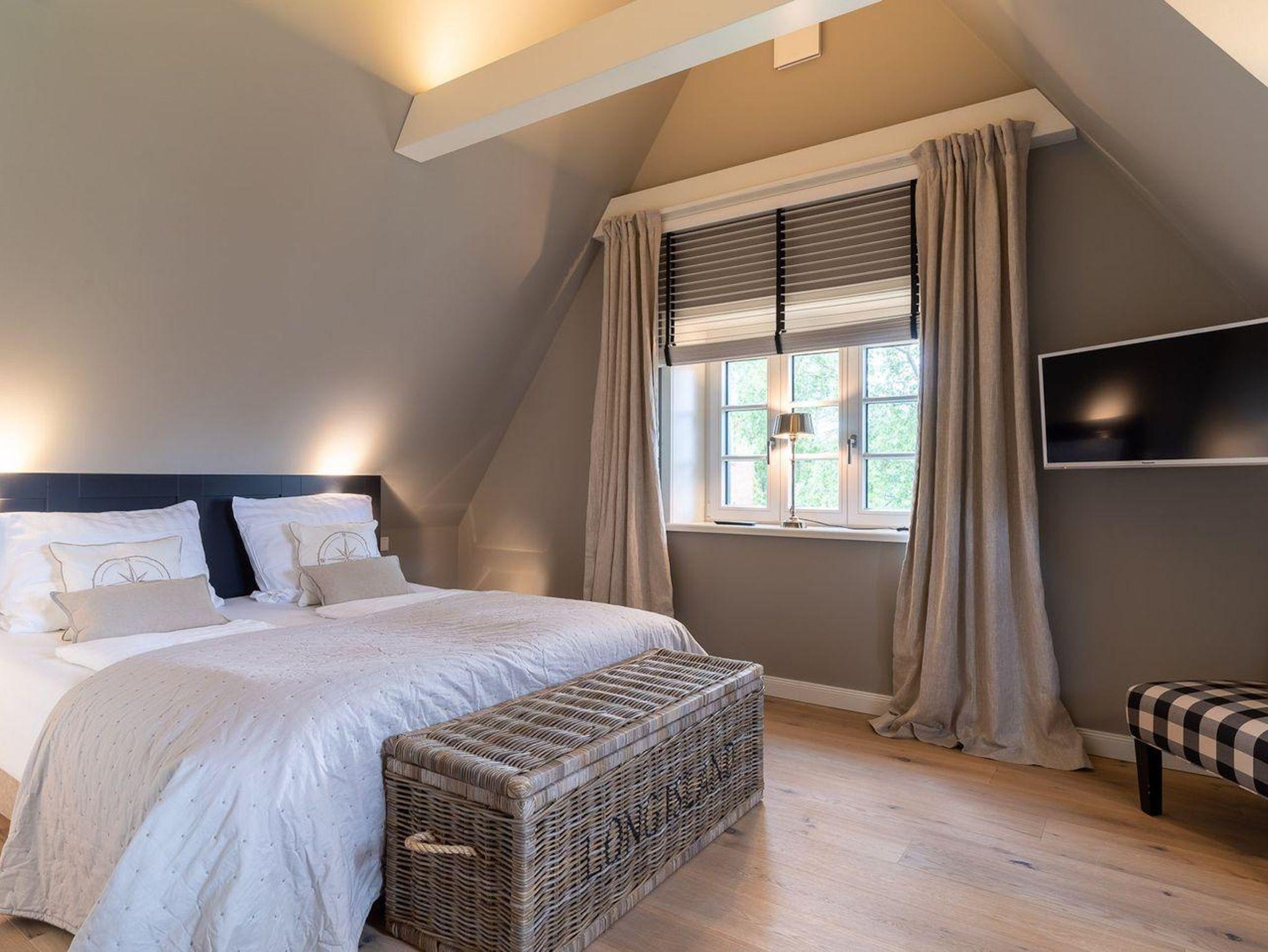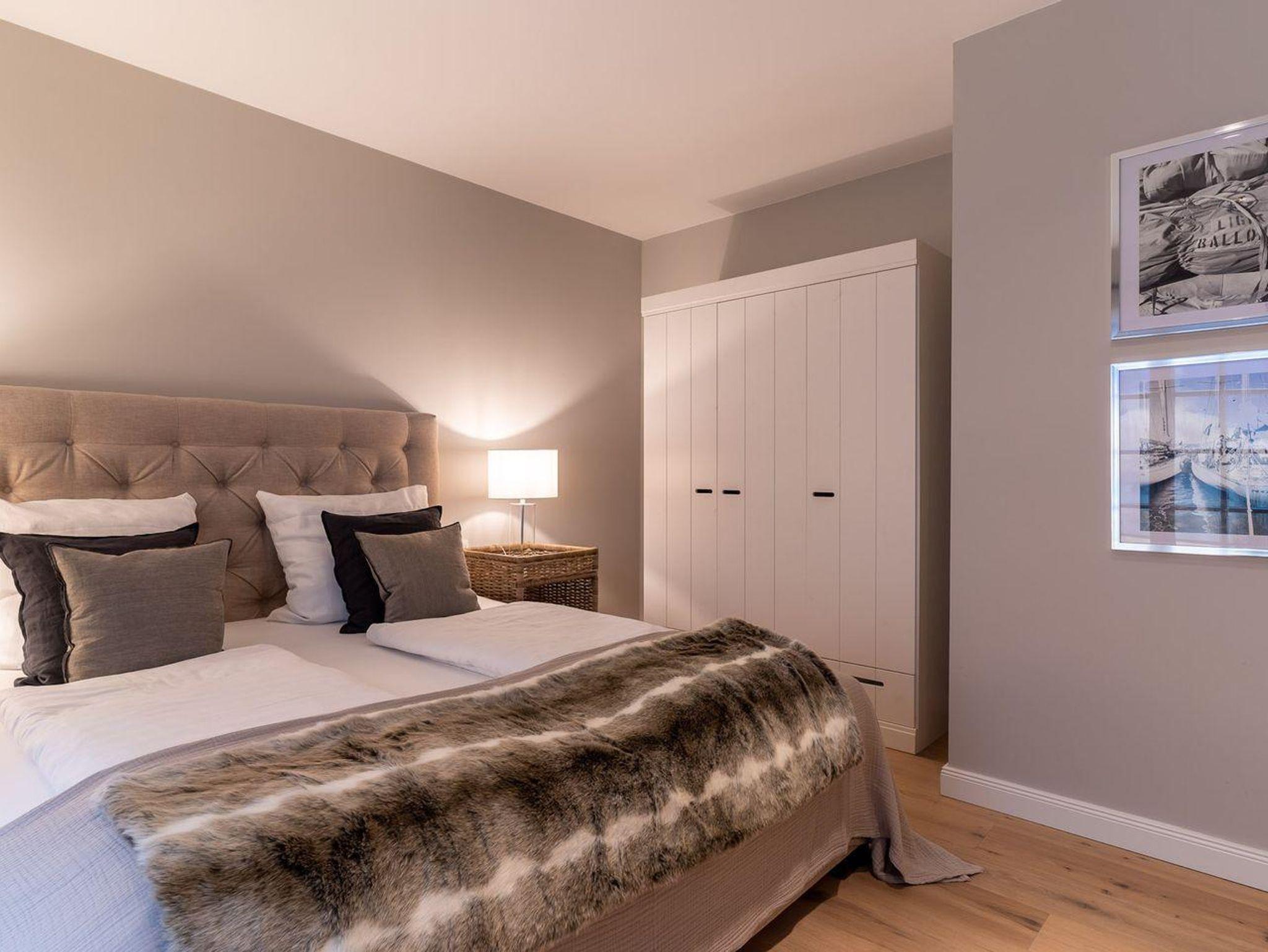 Im Erdgeschoss erwartet Sie ein lichtdurchflutetes Wohnzimmer mit Gaskamin und TV, eine offene Küche sowie ein integriertes gemütlichen Esszimmer. In diesem Bereich - wie auch in den Schlafzimmern - ist das Haus mit Eichenparkett ausgestattet. Die Küche verfügt über hochwertige Elektrogeräte und genügend Platz zum gemeinsamen Kochen. An den Wohnbereich schließt sich ein Flur sowie ein Gäste-WC an. Über eine Holztreppe gelangt man in das Obergeschoss. Die zwei Schlafzimmer, jeweils mit einem Doppelbett ausgestattet, sind bis unter das Dach geöffnet. Dies gibt den Räumen viel Luft und abends durch die indirekte Beleuchtung eine besondere Gemütlichkeit. Die Schlafzimmer sind ebenfalls mit TV ausgestattet. Kleiderschränke und Kommode gewähren Ihnen viel Stauraum. Darüber hinaus befindet sich im Obergeschoss ein geräumiges Badezimmer mit Raindance-Dusche. Das volle Wohlfühlprogramm erwartet Sie im Untergeschoss, das sowohl durch natürliches Tageslicht, als auch durch eine Strandbilder-Beleuchtung illuminiert wird. Sie gelangen direkt in den großzügigen Entspannungsbereich mit Sauna, freistehender Badewanne, großer Raindance-Dusche und TV. Auf dieser Ebene befindet sich das dritte Schlafzimmer, das auch mit einem Doppelbett, Kleiderschrank und TV ausgestattet ist.