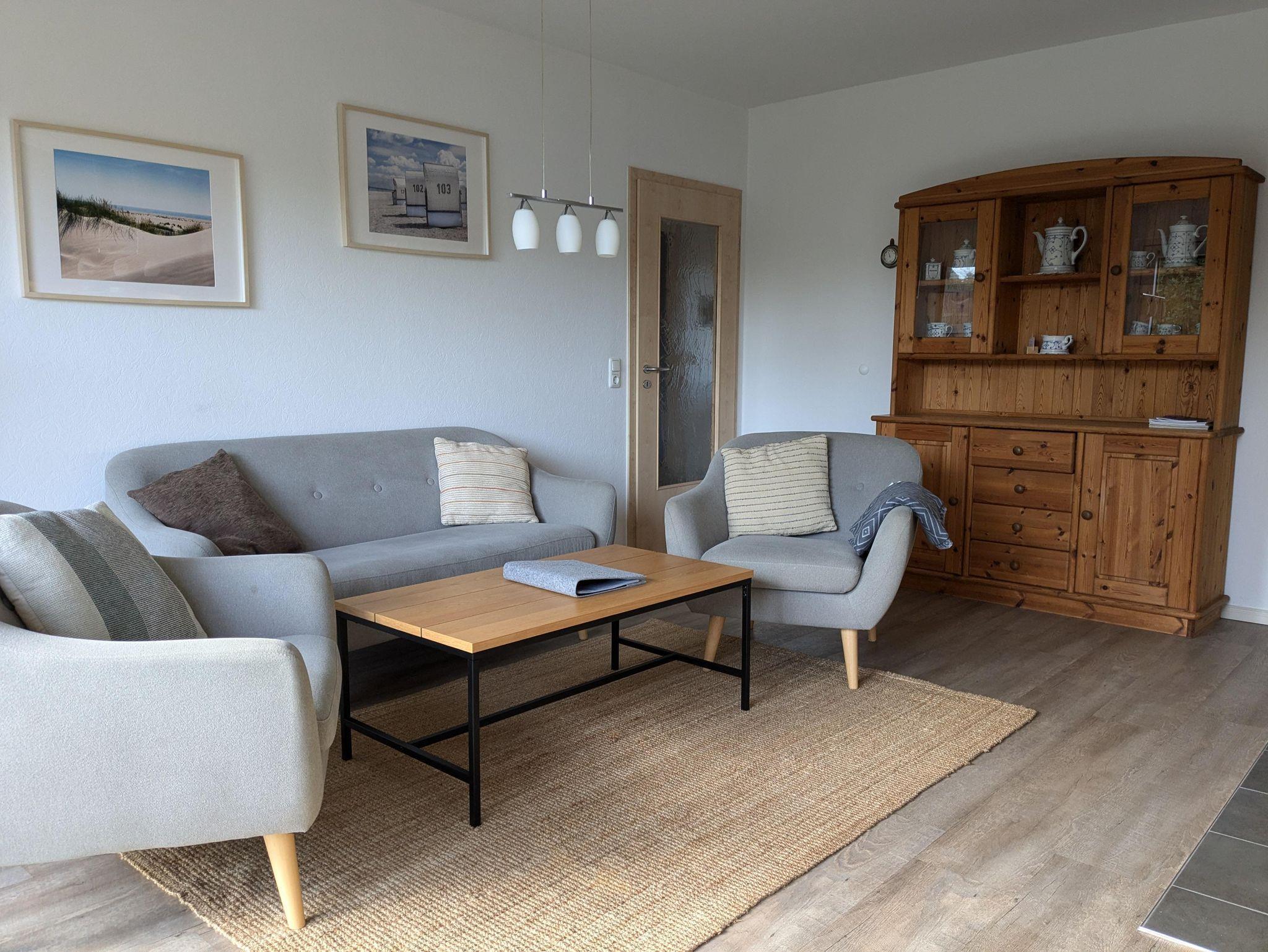 Der PKW-Stellplatz befindet sich direkt am Haus. Die Einrichtung ist im nordischen Stil gehalten. Für warme und gemütliche Stunden sorgt der Kaminofen im Wohnzimmer, den man von einer bequemen Sitzgruppe aus genießen kann. Bei Schmuddel-Wetter sorgt der Flachbildschirm für Unterhaltung.