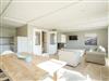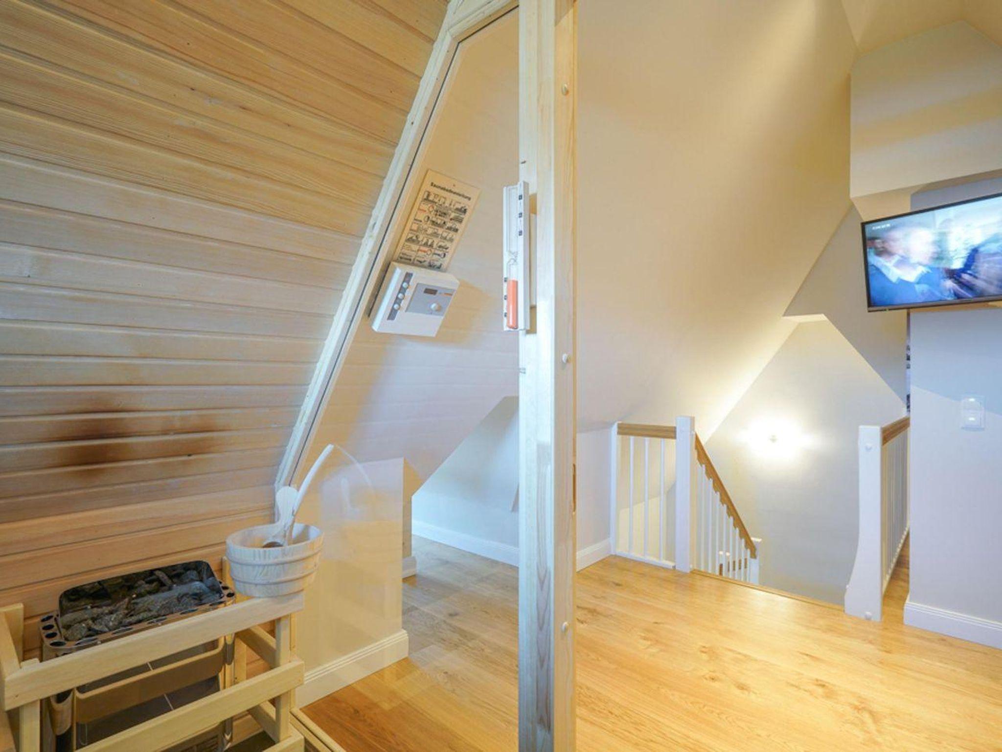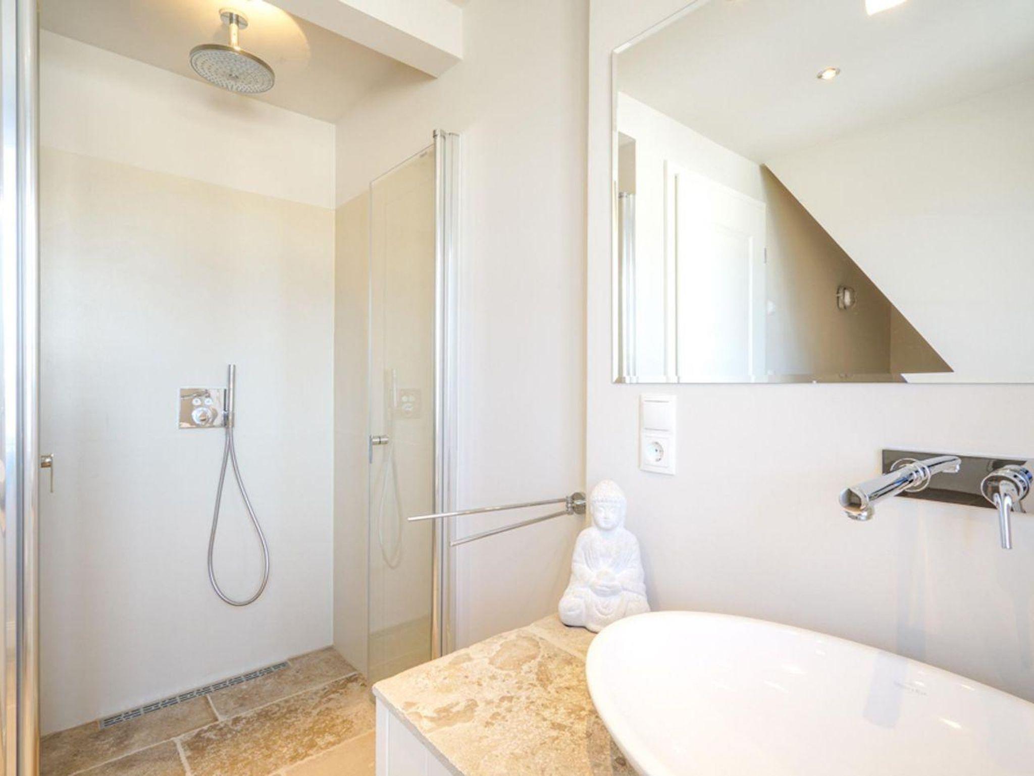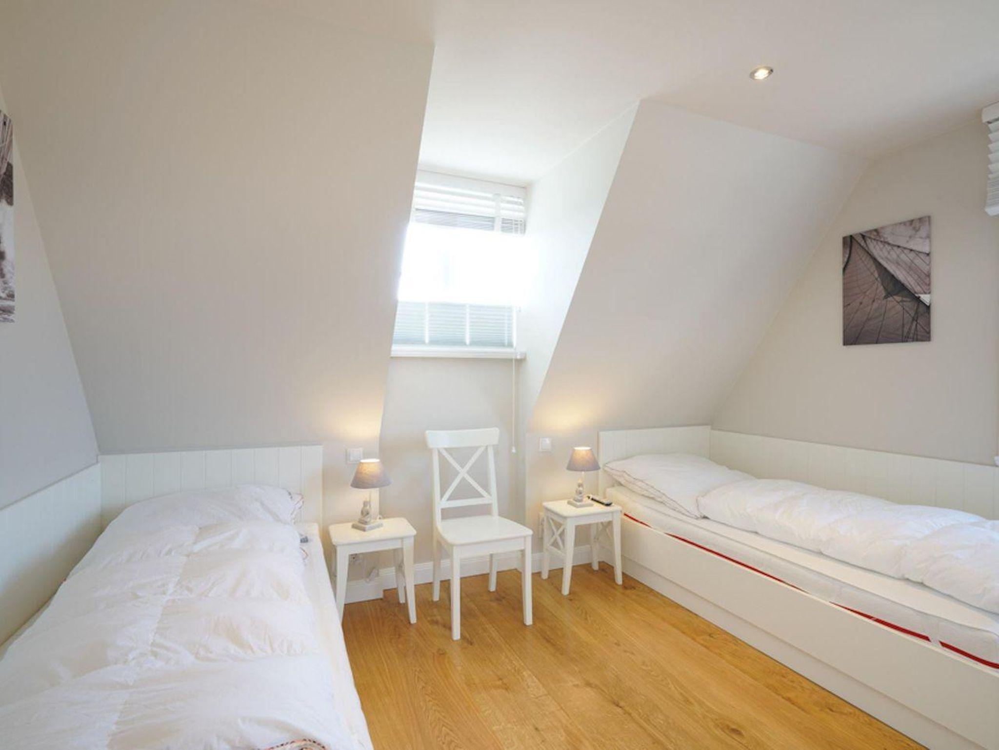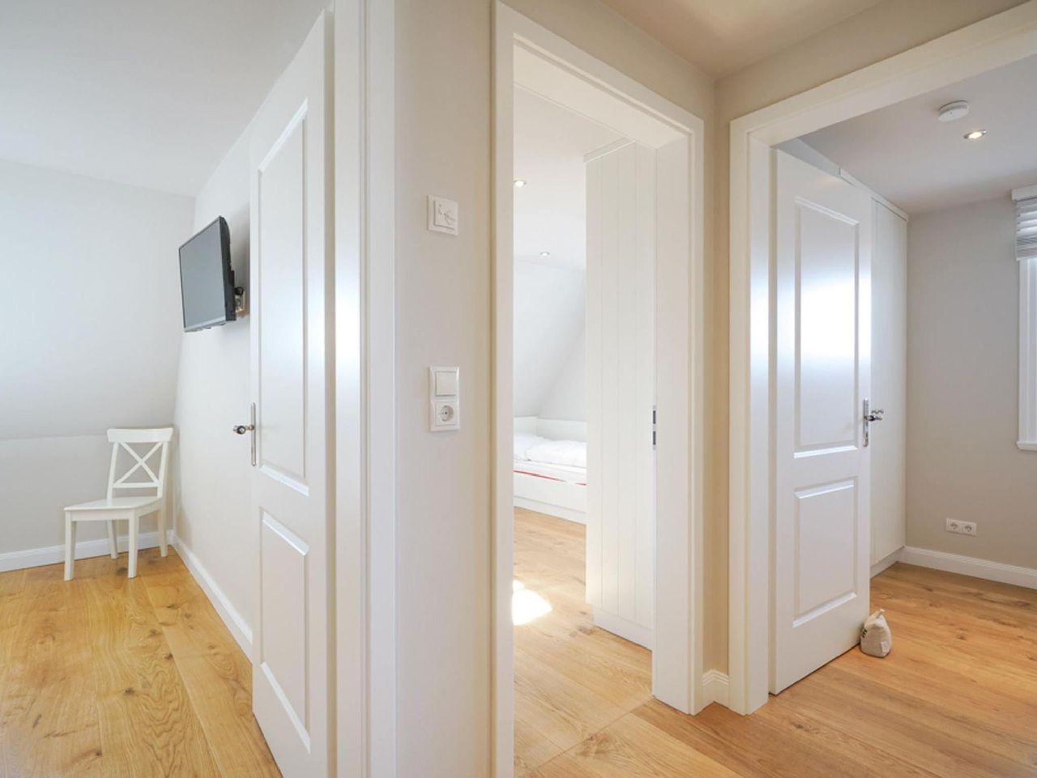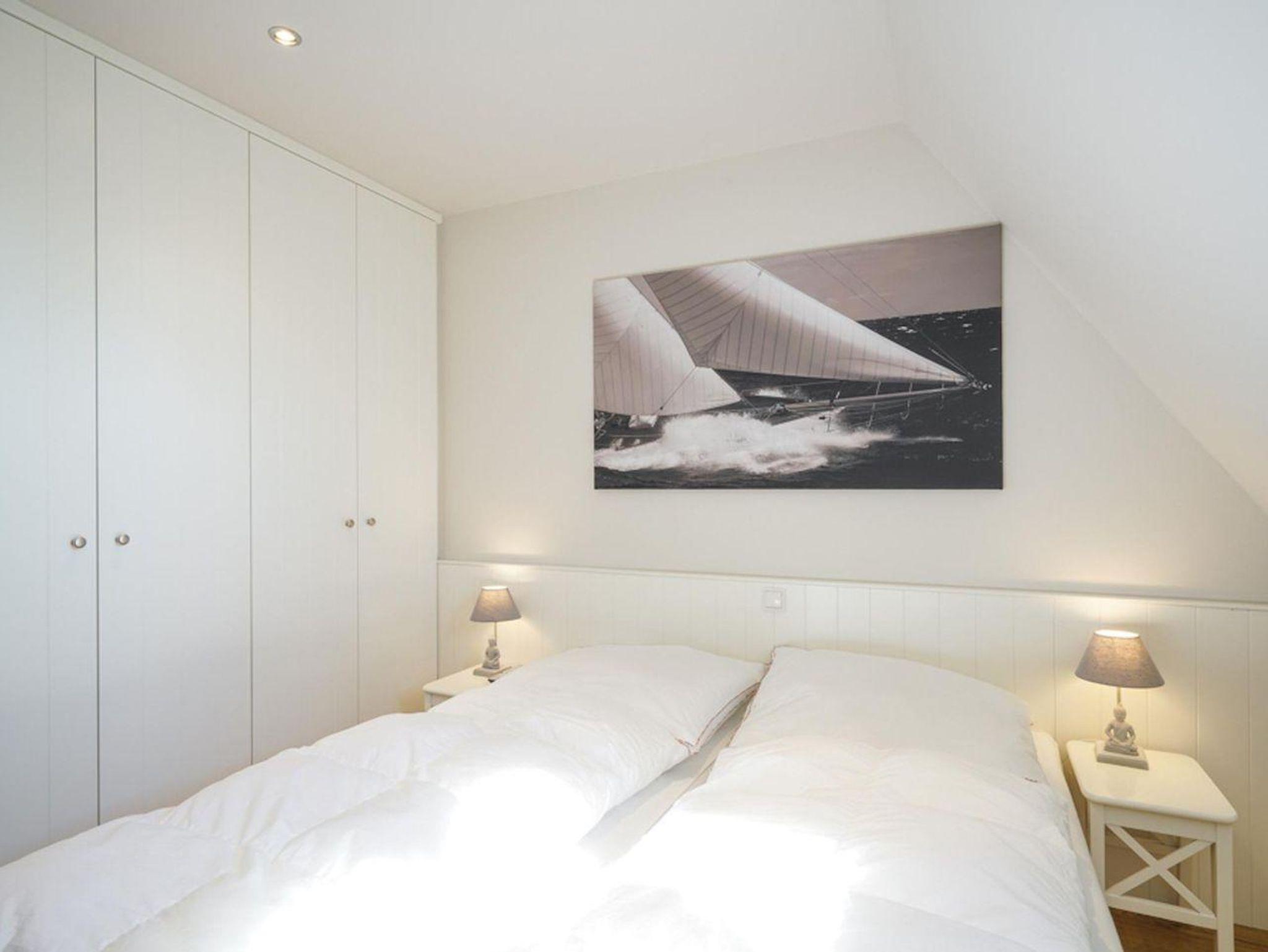 Die luxuriöse Haushälfte unter Reet verfügt über ca. 105 m² Wohnfläche und bietet Platz für 6 Personen. Im Erdgeschoss befindet sich der lichtdurchflutete Wohnraum mit TV, Kamin, einer offenen Küche sowie einem stilvollen Essbereich. Die Wohnräume sind mit wunderschönen Möbeln ausgestattet. Die Küche verfügt über hochwertige Elektrogeräte. An den Wohnbereich schließen sich ein Flur mit ein Hauswirtschaftsraum und ein Duschbad an. Das gesamte Erdgeschoss verfügt über geschmackvolle Natursteinfliesen, die über eine Fußbodenheizung beheizt werden können.Über eine Holztreppe gelangt man in das mit Parkett ausgelegte Obergeschoss. Dieses verfügt ebenfalls über eine Fußbodenheizung. Ebenfalls drei Schlafzimmer, Schlafzimmer I mit einem Doppelbett 1,80 x 2,00 m, Schlafzimmer II mit 2 Einzelbetten und Schlafzimmer 3 mit 2 Einzelbetten die zu einem Doppelbett zusammengeschoben werden können, jeweils mit TV ausgestattet. Einbauschränke gewähren Ihnen hinreichend Ablageflächen. Darüber hinaus befindet sich im Obergeschoss ein weiteres Bad mit Dusche. Vom Obergeschoss führt die Holztreppe hinauf in das Dachgeschoss. Hier befindet sich eine sehr große Sauna mit Entspannungsbereich.