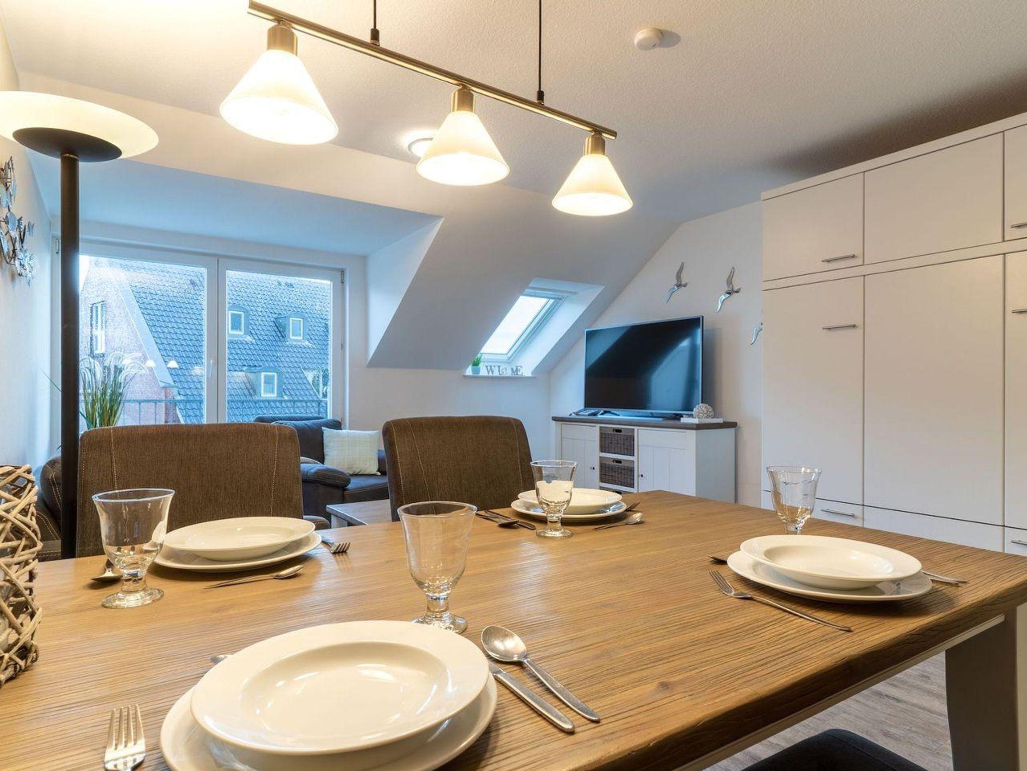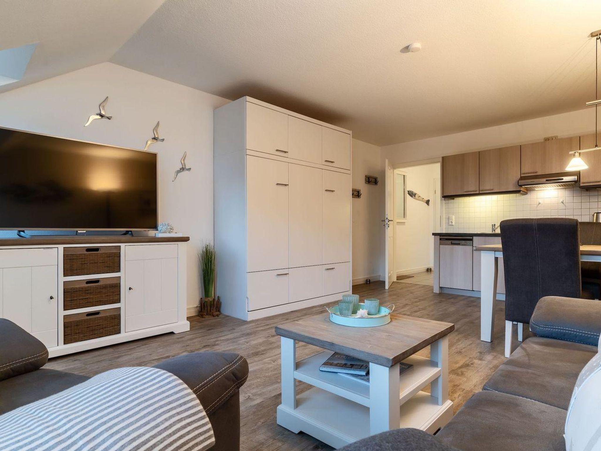 Zur Unterhaltung im Wohnzimmer dient ein 55K Sat-TV Flachbildschirm, sowie WLAN (inklusive).