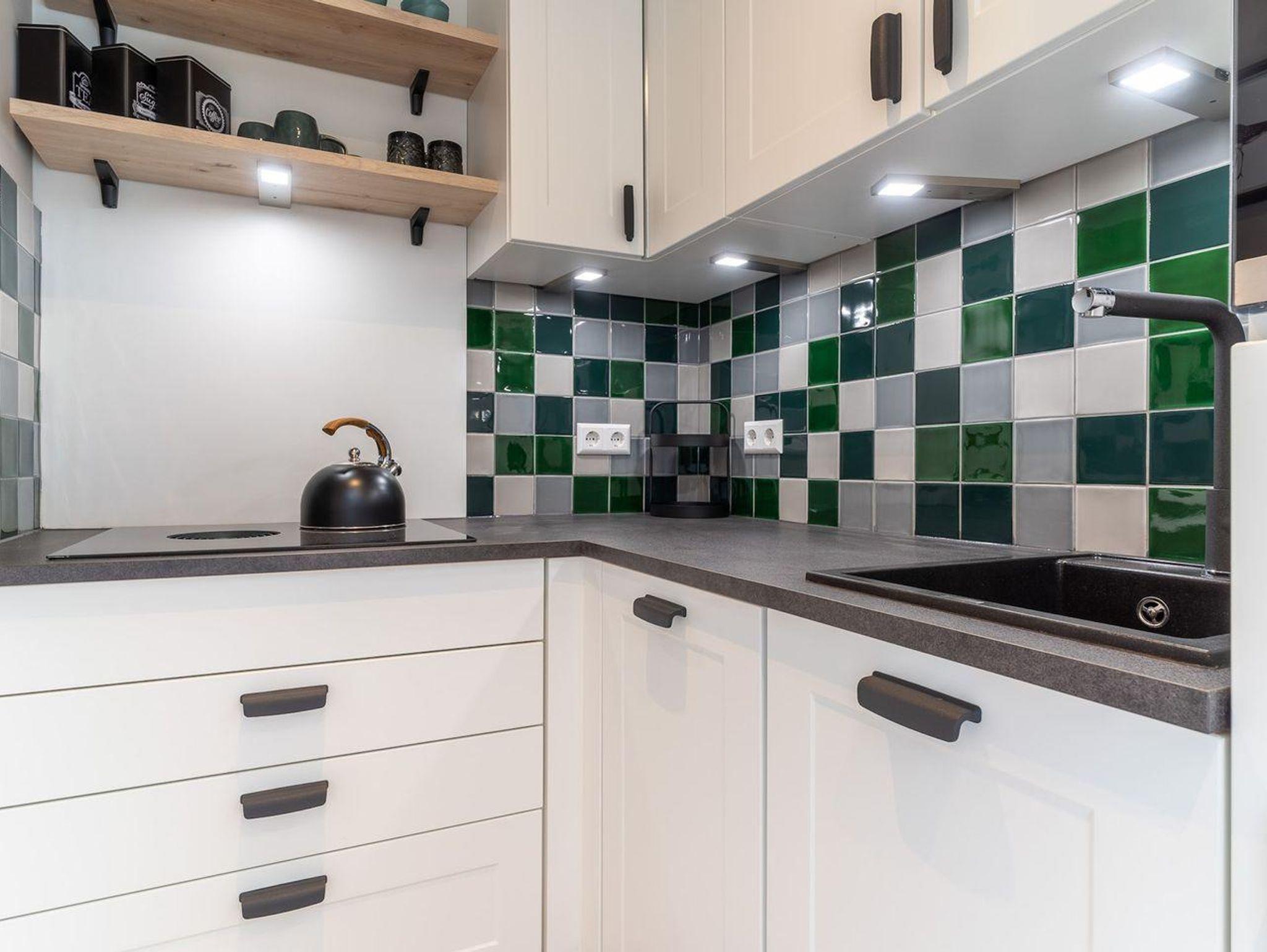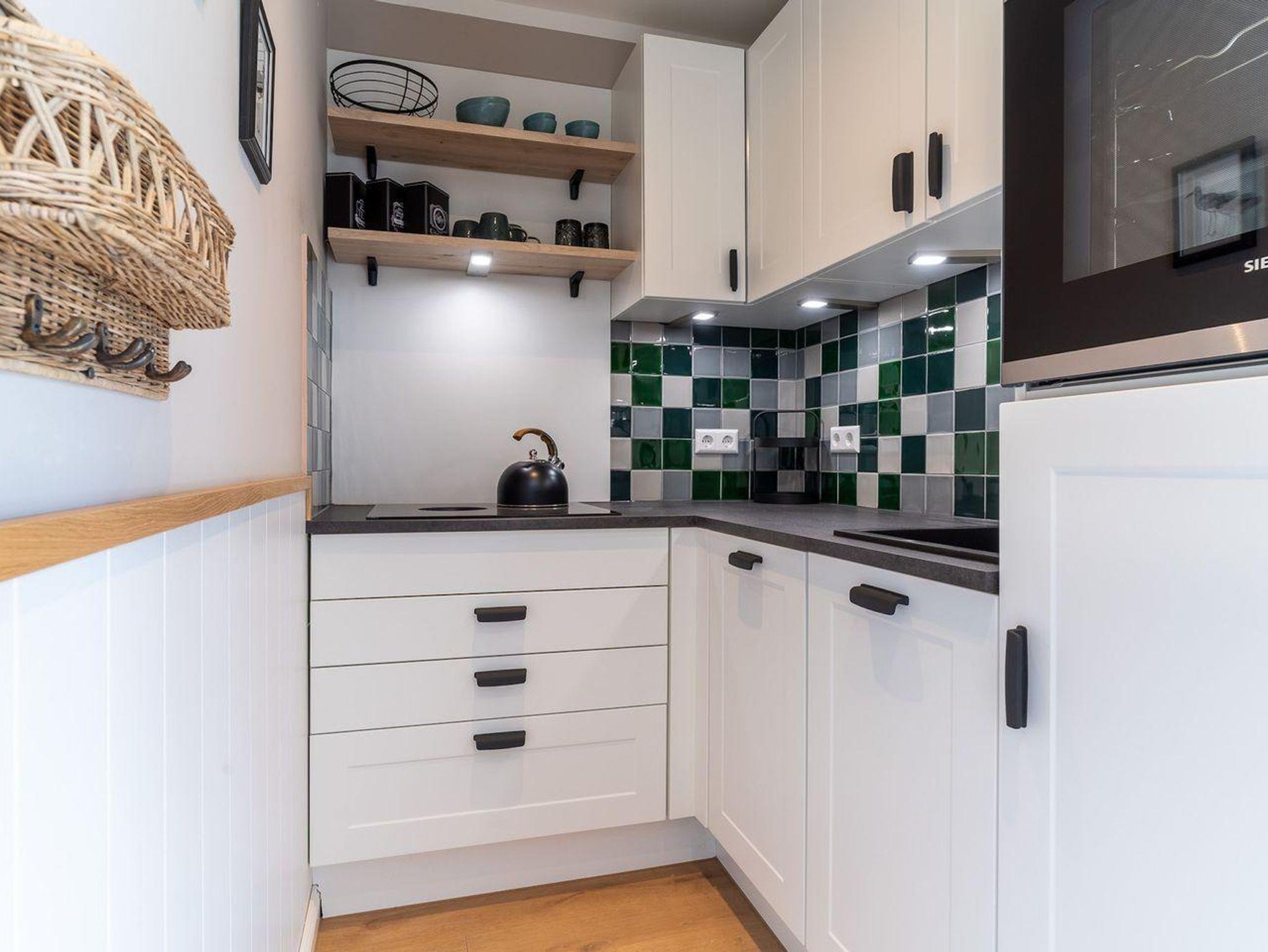 Im Erdgeschoss befindet sich ein großzügiger Wohnraum mit TV und einer modernen Wohnküche. Die Küche ist voll ausgestattet und verfügt über hochwertige Elektrogeräte.