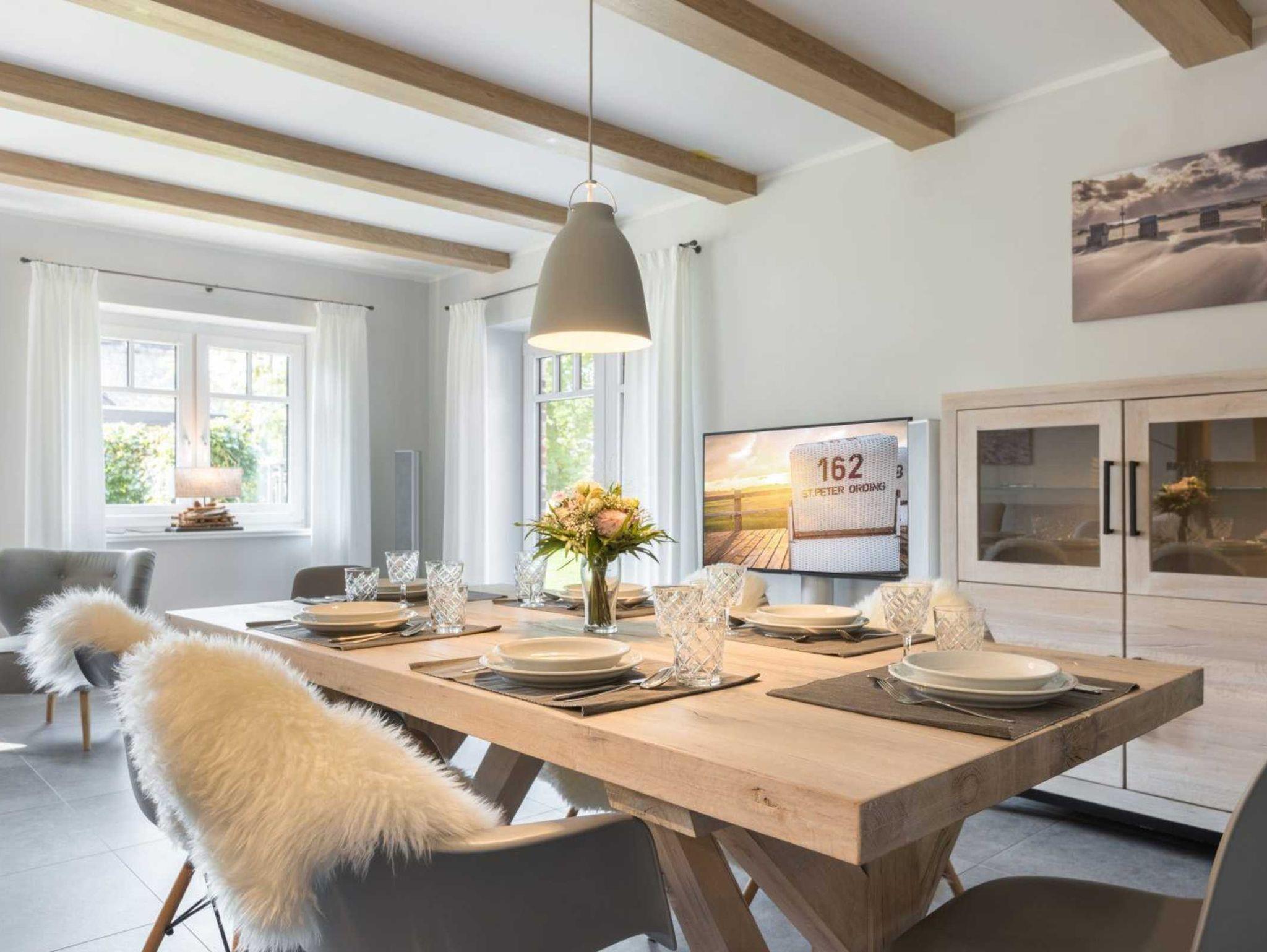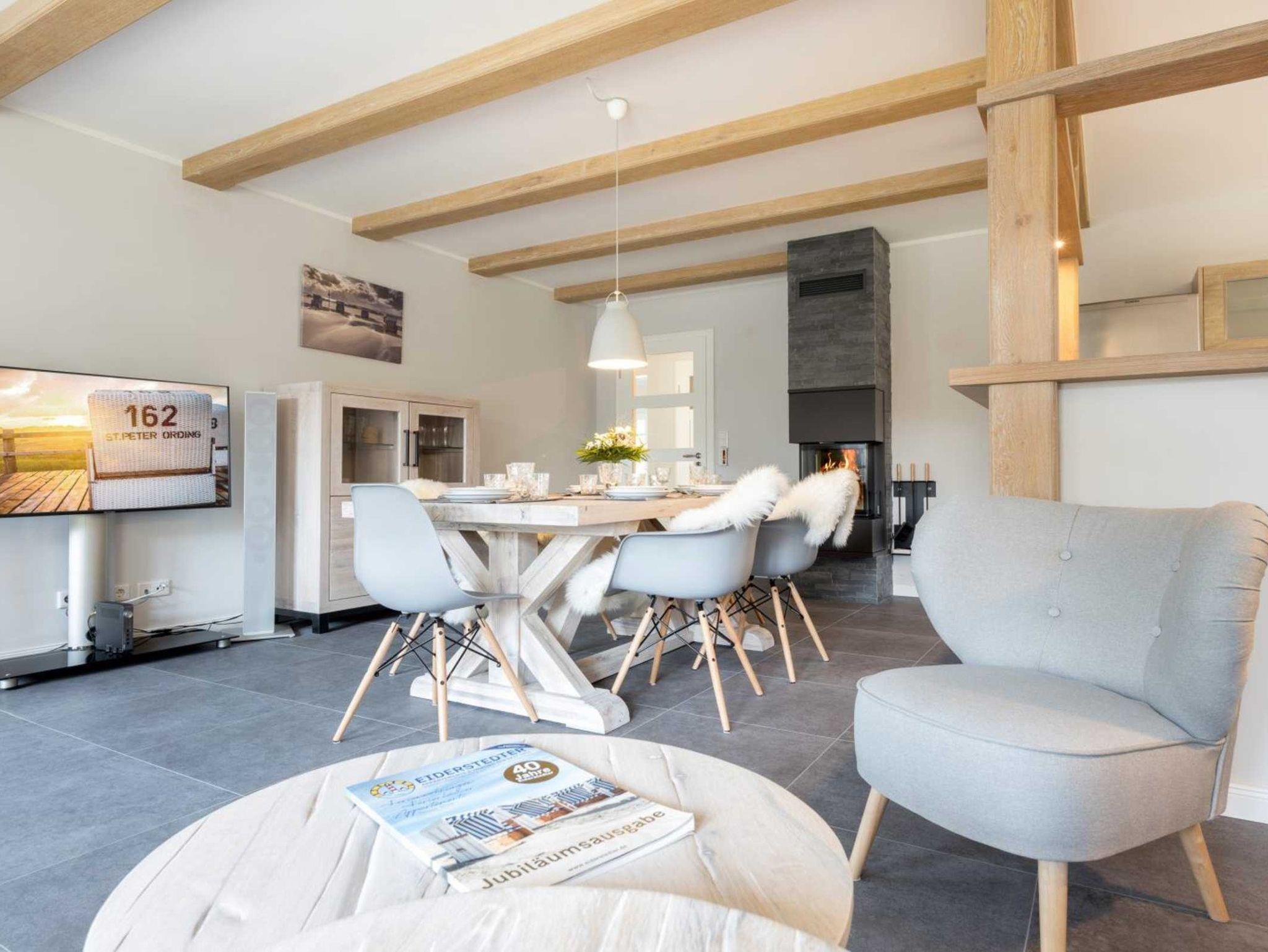 Exklusives 4-Zimmer-Feriendomizil Vörn Binnendiek unter Reet im Haus Öwerweg 4 mit ca. 105 qm auf 1 Ebene (EG) für bis zu 5 Personen. In absolut ruhiger, aber zentrumsnaher Lage im Ortsteil Bad in St. Peter-Ording. Den Gästen steht der gesamte schöne Garten zur Verfügung. Besondere Behaglichkeit spendet der schöne Kaminofen im Wohnzimmer.