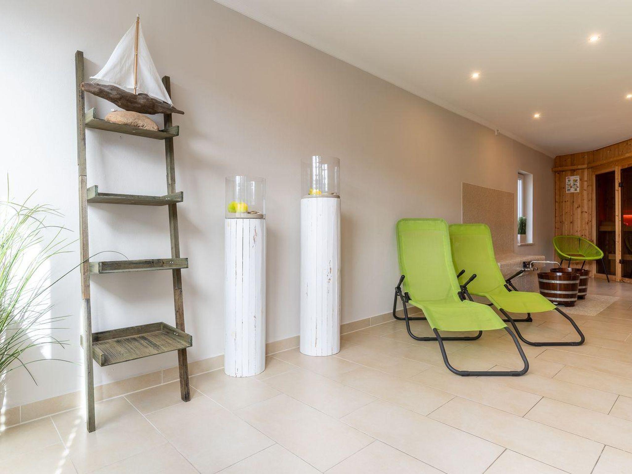 In einem separaten wunderschönen Anbau lädt der große Wellnessraum mit Sauna, Ruhezone, Dusche, WC und eingezäunter Terrasse zur Erholung ein. Traumhaft schön und einzigartig in SPO! (Nutzbar von 2 Appartements im Haus gegen Gebühr) Carpe Diem!