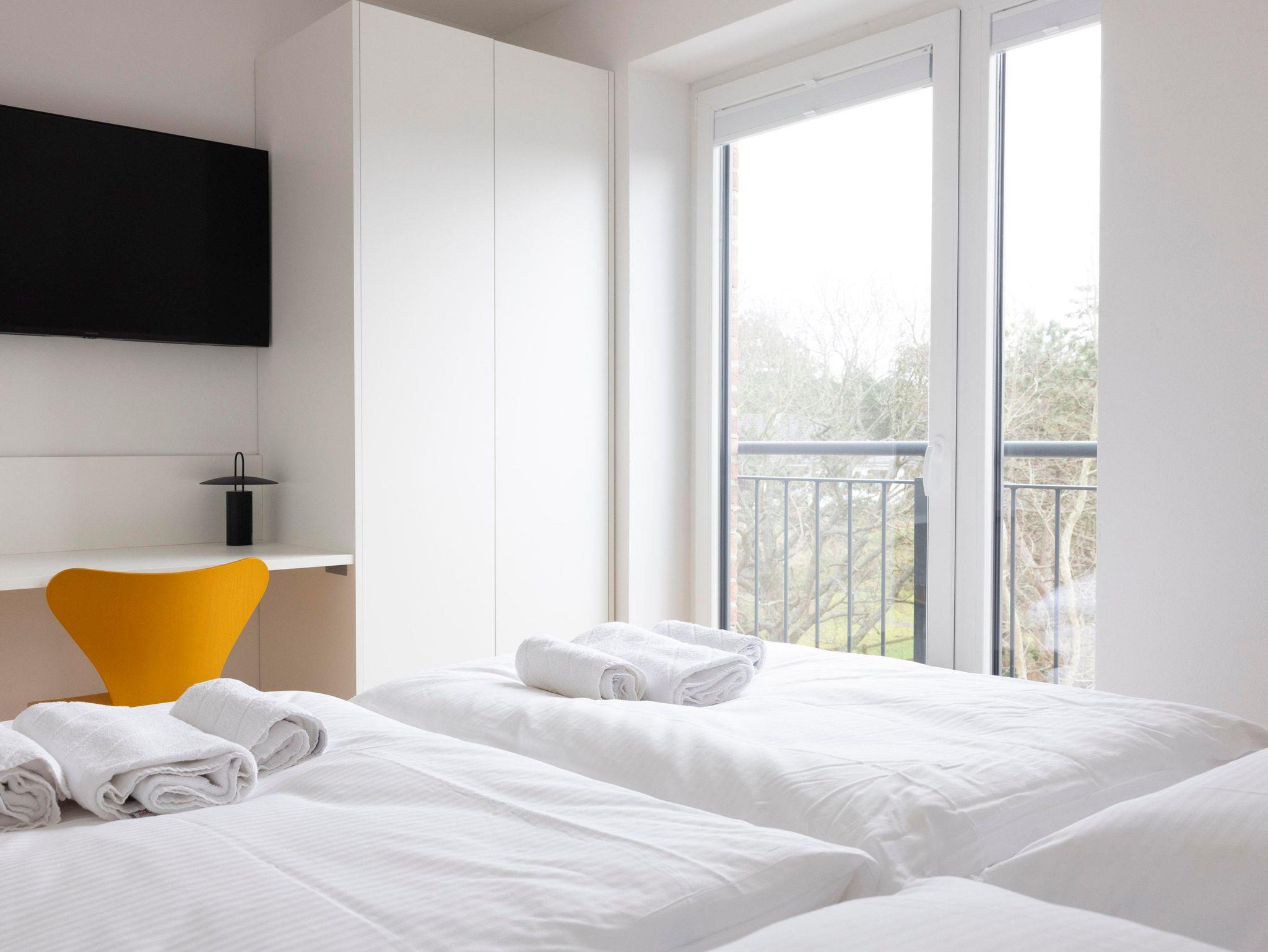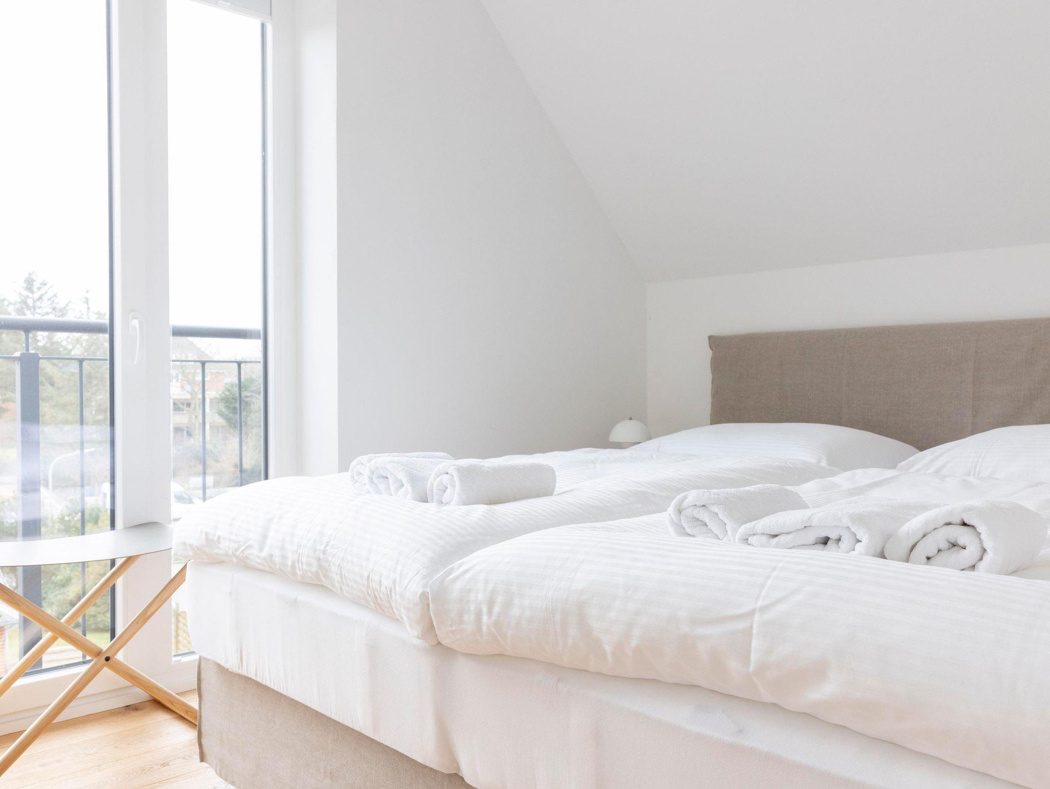 Tolle Möbel, ein großzügiges Bad en suite. Und ein bißchen Meerblick. Wirklich!