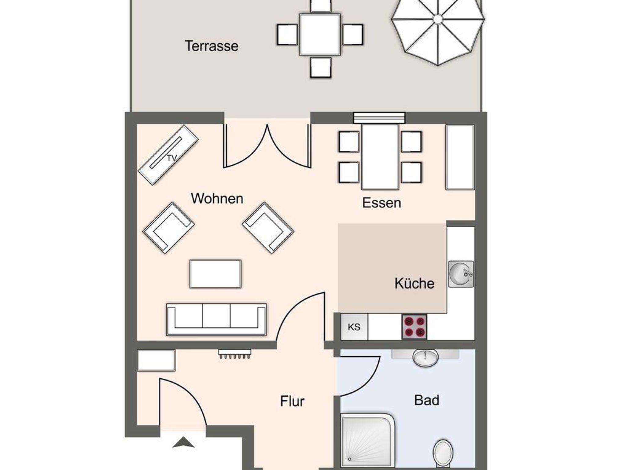 Der lichtdurchflutete Wohnraum mit TV, Sofalonge und einem gemütlichen Essbereich bietet jeden Komfort. Eine gemütliche Terrasse lädt zum Sonnen und Verweilen ein. Die Landhausküche grenzt direkt am Wohnzimmer an. Das Duschbad ist großzügig gestaltet und bietet genügend Platz für Ihre Utensilien. Ein Schlafzimmer mit einem 180er Doppelbett sorgen für ruhevolle Erholung. Die Wohnung ist mit sehr viel Liebe zum Detail ausgestattet und traumhaft lichtdurchflutet.