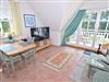 Wohnzimmer: 2 Stühle, 4 Plattenherd mit Ceranfeld und Backofen, Anrichte, Couchtisch, Dunstabzugshaube, Eckcouch, Eierkocher, Einbauküche, Esstisch, Flachbildschirm, Kaffeemaschine, Kühlschrank, Mikrowelle, Sat-TV, Sessel, Spülmaschine, Stehlampe, Stereoanlage mit CD-Player, Tischlampe, Toaster, Treppe nach oben, Wasserkocher