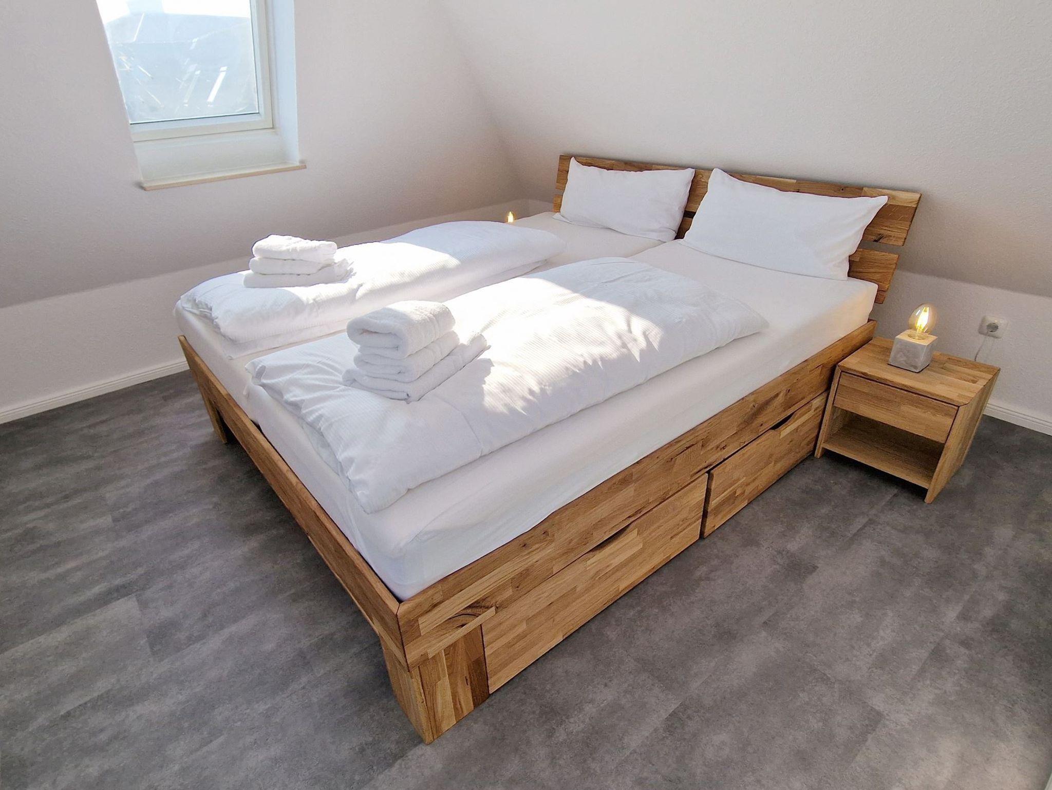 Gemütliche Schlafzimmer: Die beiden Schlafzimmer sind jeweils mit komfortablen Doppelbetten ausgestattet, die für erholsame Nächte sorgen.