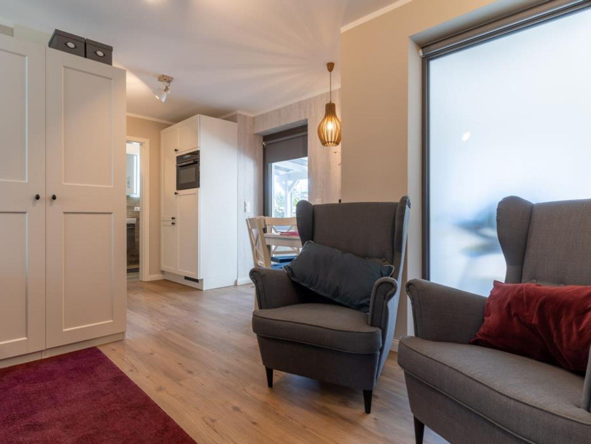 Die Wohnung „nordisch by nature“ ist eine 4 Zimmer-Wohnung mit ca. 90 m² Wohnfläche. Sie verfügt über 2 Schlafzimmer mit Doppelbetten (180cm x 200cm) sowie einem ausziehbaren Schlafsofa 2 Personen (140cm x 200cm). 1 Bad mit Dusche & WC, 1 Bad mit WC und eine große moderne und hochwertig ausgestattete Küche. Ein riesiges Wohnzimmer und das Esszimmer mit einer Esstafel bieten Raum und Gelegenheit für tolle Abende mit Familie und Freunden. Außerdem bietet die Wohnung Zugänge zu den Terrassen auf beiden Seiten des Hauses und einen hochwertigen Elektrogrill von Weber. Darüber hinaus besteht die Möglichkeit den Wohnraum um ca. 25 m² gegen Aufpreis zu erweitern. Die Wohnraumerweiterung besteht aus einem 1-Zimmer-Appartment mit einem Doppelbett (160cm x 200cm), Einbauküche, Badezimmer mit Dusche & WC und Zugang zur Terrasse im Gartenbereich.