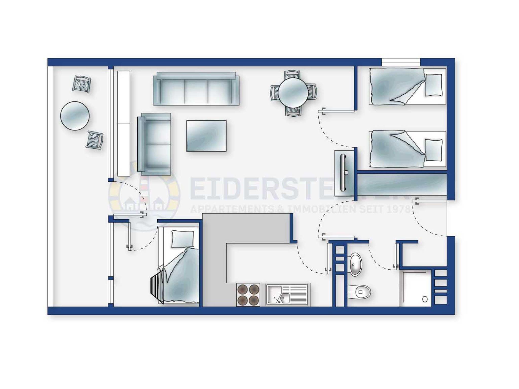 Komfortable 3-Zimmer-Ferienwohnung im Haus Atlantic mit ca. 47 m² auf 1 Ebene (9. OG, mit Fahrstuhl) für bis zu 4 Personen. Gute Lage im Ortsteil Bad in St. Peter-Ording. Von allen Räumen dieses schönen Feriendomizils haben Sie einen herrlichen Ausblick über die Promenade mit dem Erlebnis-Hus, über den Strand und das weite Meer.