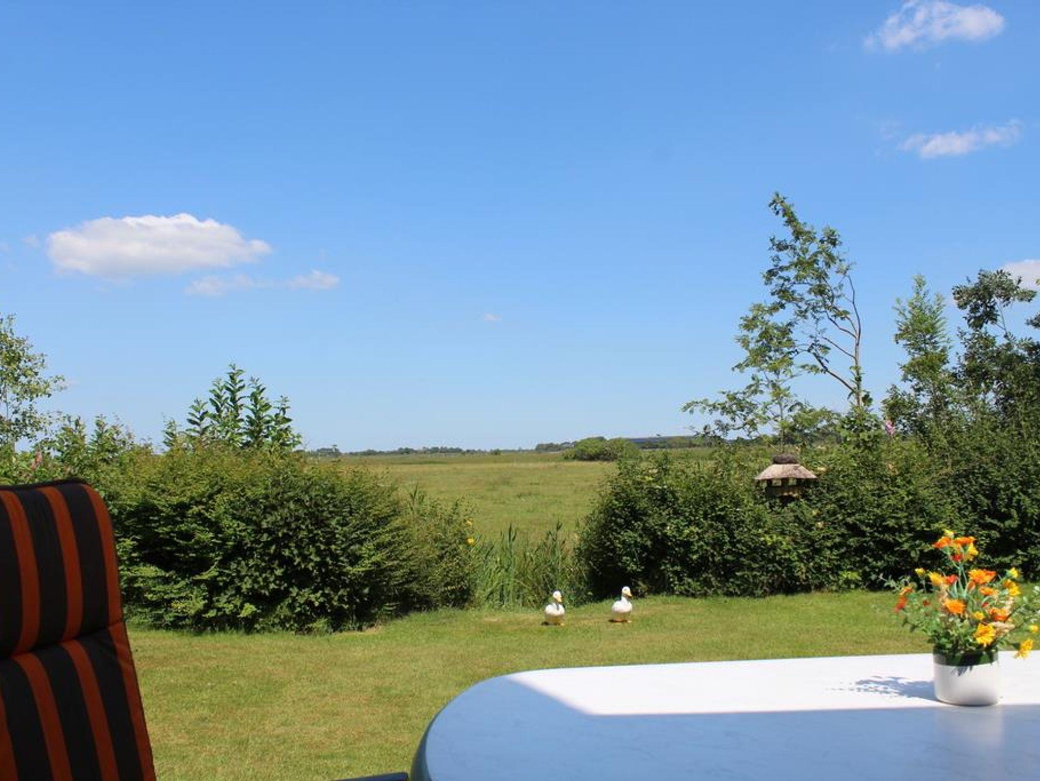 Großzügige, wohnlich gestaltete 80qm-EG-Whg.mit komplett ausgestatteter Küche mit Essplatz u. angrenzender Ost-Terrasse (Frühstücksplatz) mit Blick in die Eiderstedter Landschaft. Wohnz.mit Leseplatz u. Wintergarten, edel skandinavisch möbliert, davor eine Süd-West-Terrasse. Sonnenaufgangs-Schlafz.mit Doppelbett (180x200), ein weiteres Schlafz.mit großem Einzelbett (140x200), Design-Vollbad mit Dusche, Wanne u. WC. Diele mit Garderobe u. Einbau-Schuh-und Kleiderschrank. Nichtraucherhaus, Tiere nicht erlaubt, nicht Allergiker geeignet, Rollläden an allen Fenstern, Fliegengaze an den Schlafzimmer-Fenstern,Internetanschluss W-LAN.