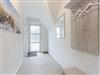 Flur mit Garderobe, Schuhbank und Spiegel.