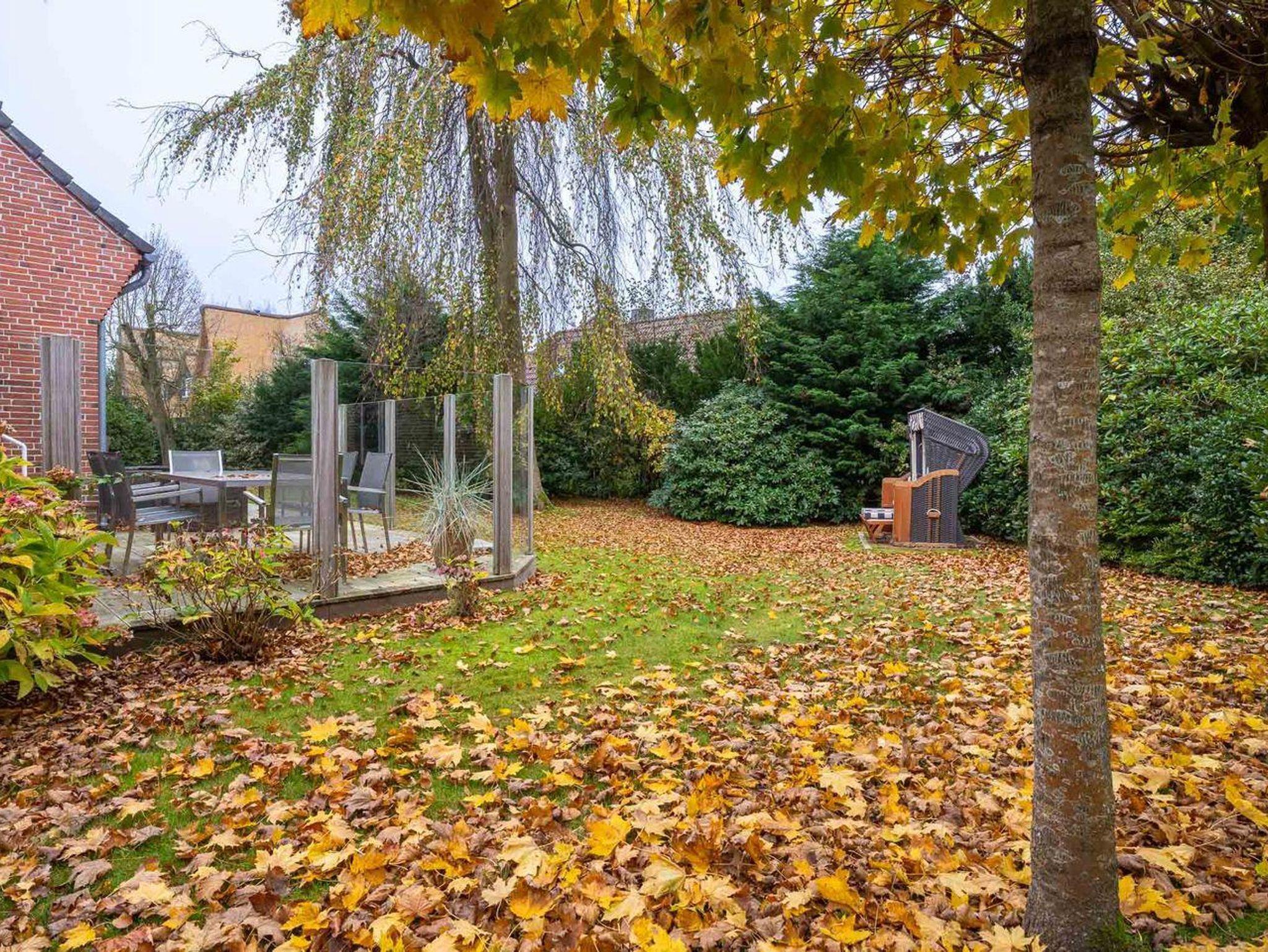 Der wunderschöne Garten ist ein weiteres Highlight des Domizil im Dorf. Hier finden Sie sowohl Sonnen- als auch Schattenplätze, die zum Entspannen einladen. Genießen Sie Ihren Kaffee im Strandkorb, machen Sie es sich in der bequemen Gartenlounge gemütlich oder genießen Sie gesellige Mahlzeiten am großen Esstisch auf der Terrasse.