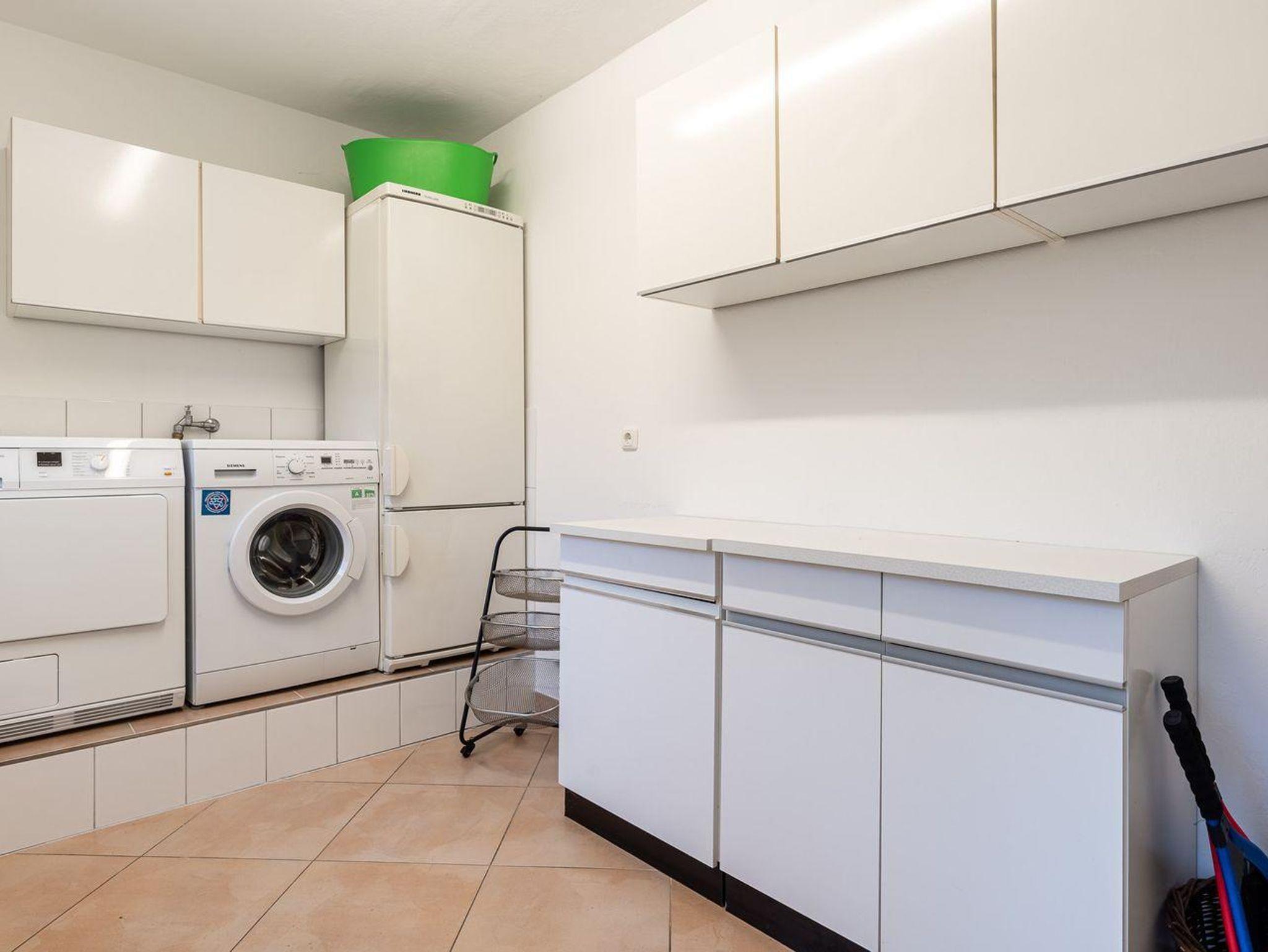 Ein voll ausgestatteter Hauswirtschaftsraum mit Waschmaschine, Trockner und einer zusätzlichen Gefrierkombination steht Ihnen zur Verfügung und macht auch längere Aufenthalte besonders komfortabel.
