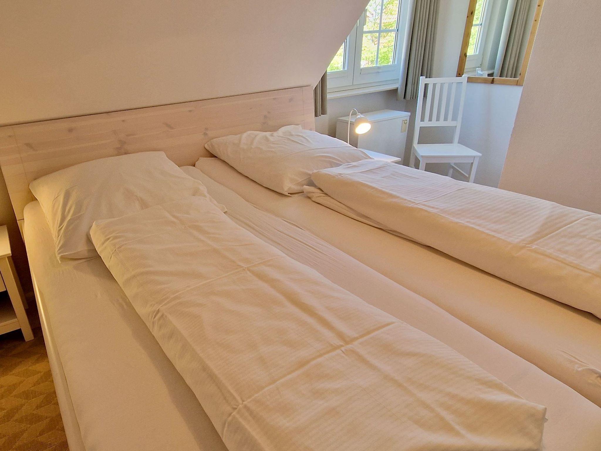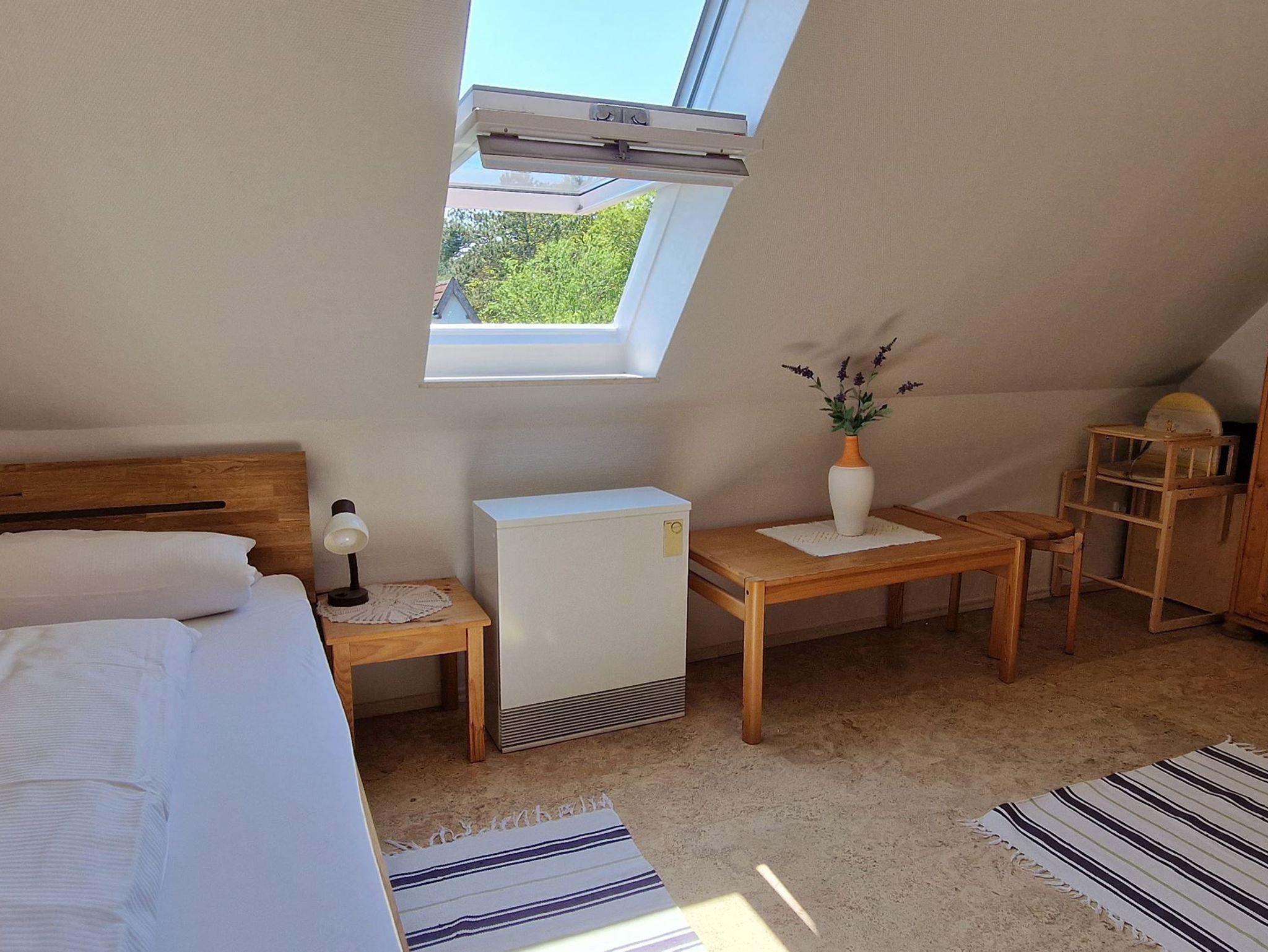 Dachgeschoss: Der lichtdurchflutete Raum im Dachgeschoss ist mit 2 Einzelbetten und einer Couchgarnitur ausgestattet, ideal für zusätzliche Entspannung.