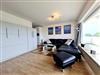Im Wohnbereich finden Sie neben einer Sitzcouch mit Sesseln auch eine Essecke vor dem großen Panoramafenster. Ausgestattet ist er mit Flachbild-TV, Stereoanlage und kostenlosem Wlan. Direkt daneben ist eine gut ausgestattete Kochnische integriert.