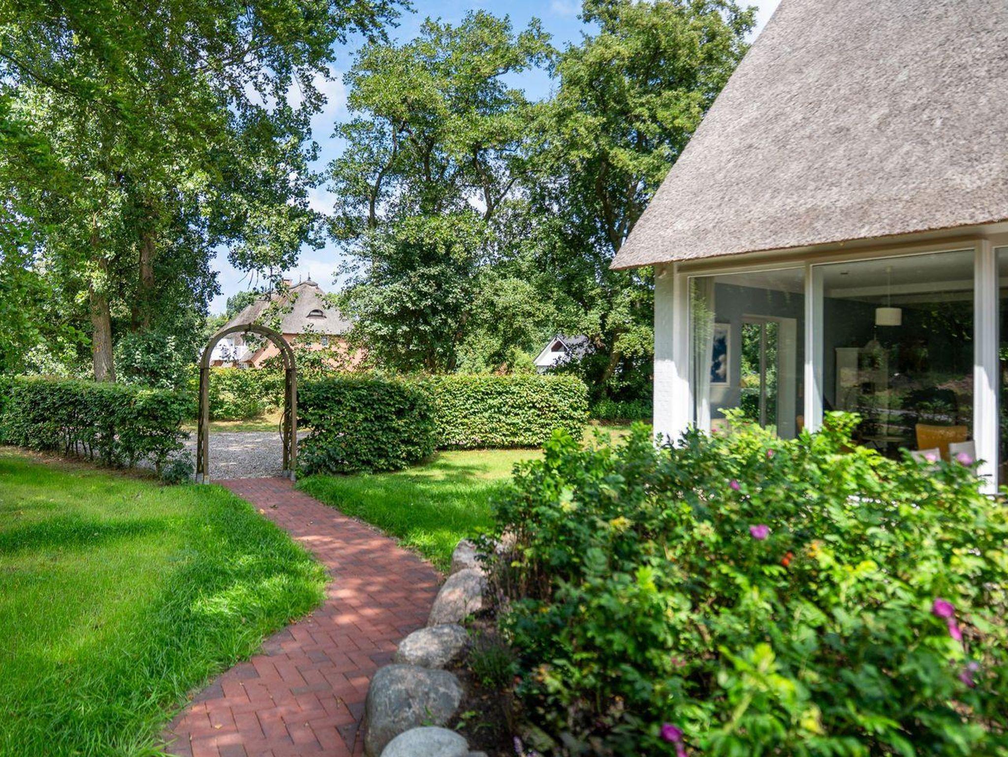 Die Terrasse im wunderschönen Garten lädt zum Entspannen ein und bietet die Möglichkeit, die frische Nordseeluft zu genießen.