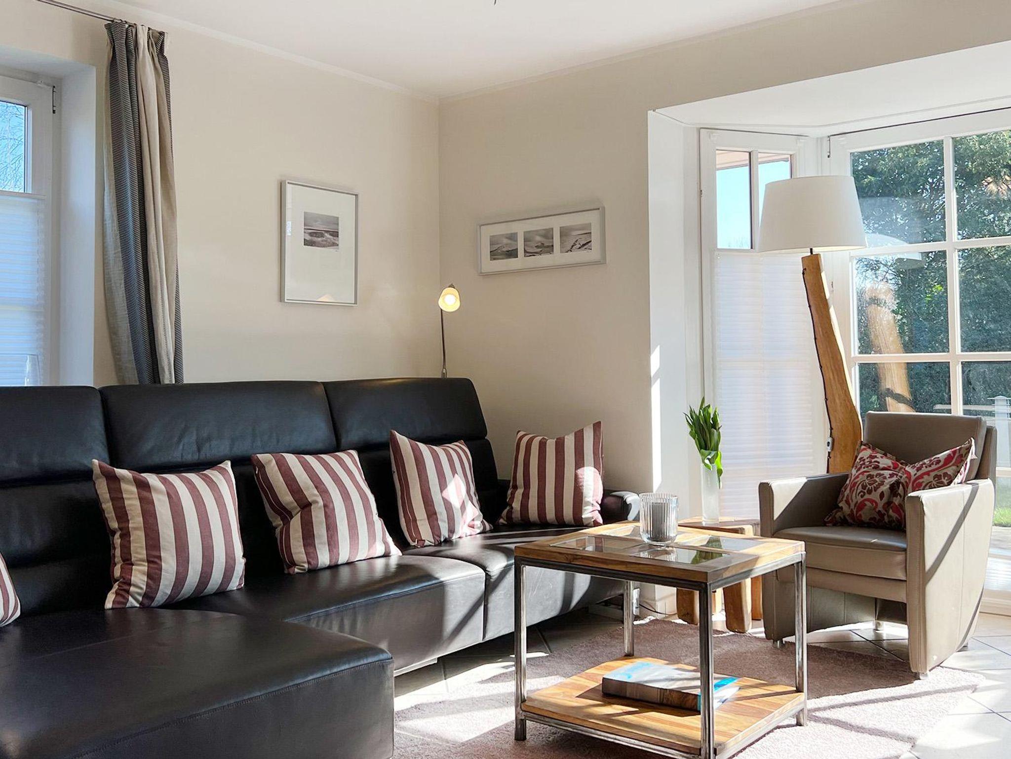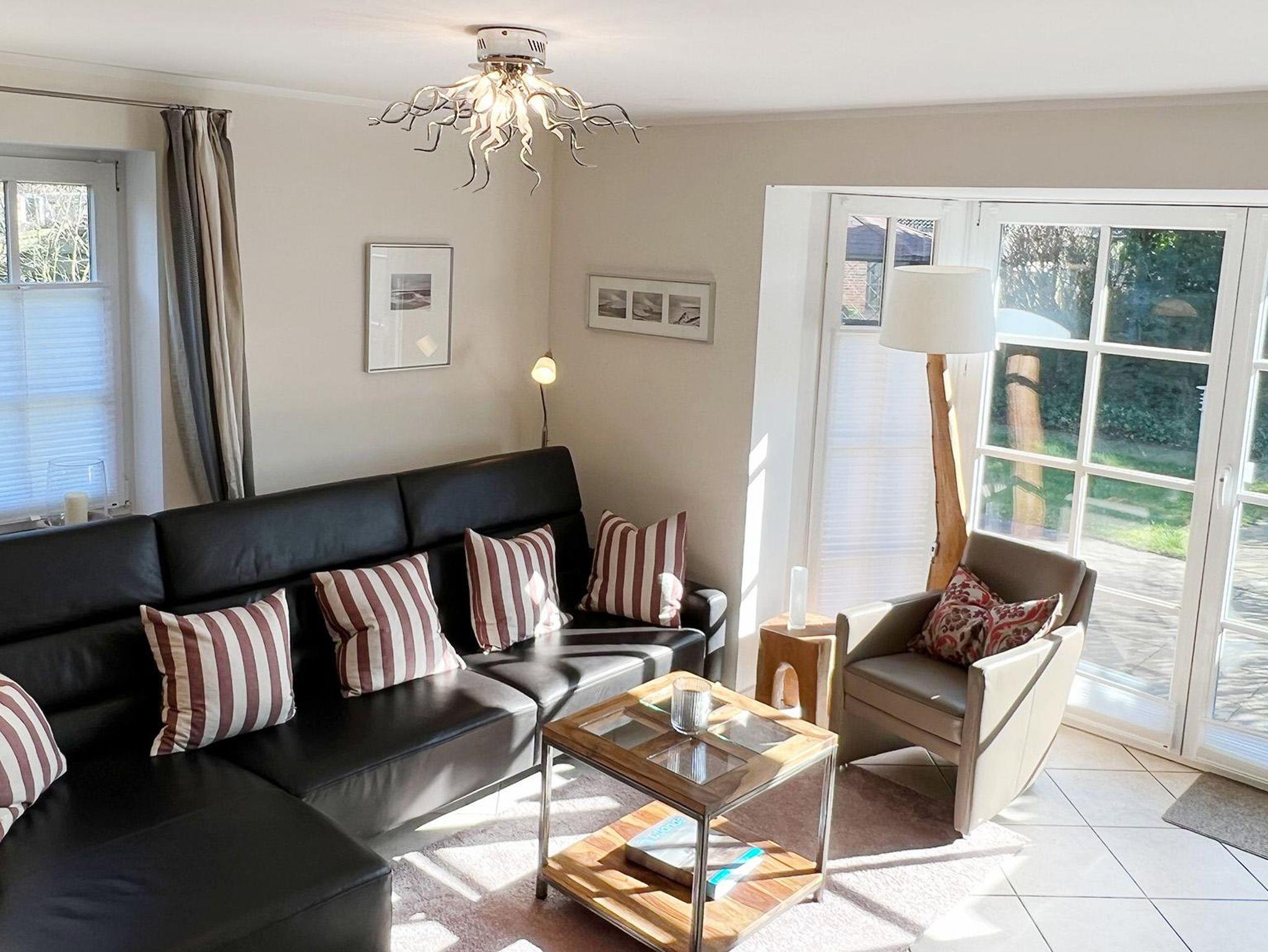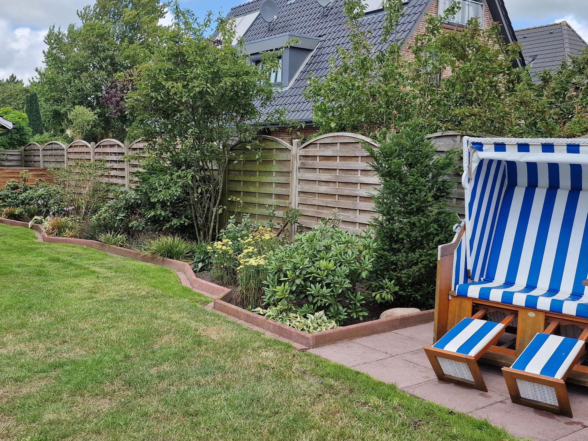 Für Entertainment im Haus ist gesorgt: TV mit Kabelanschluss, DVD Player, Sky Sport HD (Bundesliga, Championsleague, Formel 1, Handballchampionsleague) & Sky Welt, WLAN sowie BOSE-Anlage mit IPod Hub. Für Ihr Wellnessprogramm: Im Untergeschoss finden Sie eine Infrarotsauna und Trainingsrad zur freien Benutzung bereit. Sie finden hier ebenso Waschmaschine und Trockner. Es gibt ein komplett eingezäuntes und liebevoll angelegtes ca. 500 qm großes Grundstück mit einer im Sommer nicht einsehbaren Oase samt Gartenpavillon für gemütliche Stunden. Eine schöne Südterrasse mit Gartenmöbeln aus Holz für 6 Personen wird von einem dazu gehörenden Strandkorb vervollständigt. Auch ein Grill steht für unsere Gäste bereit. Eine Garage mit Abstellraum für Fahrräder, sowie ein zweiter Stellplatz ist vorhanden.