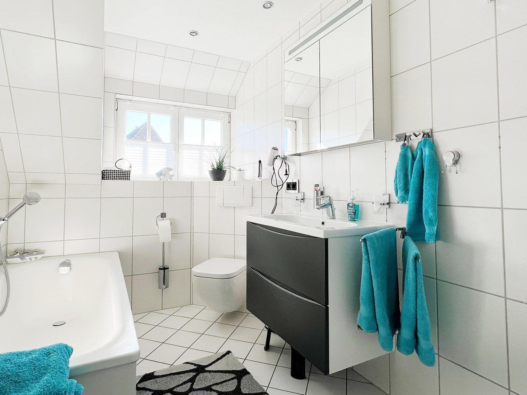 BadVollbad im 1. OG mit Badewanne, Dusche und großem Waschbecken