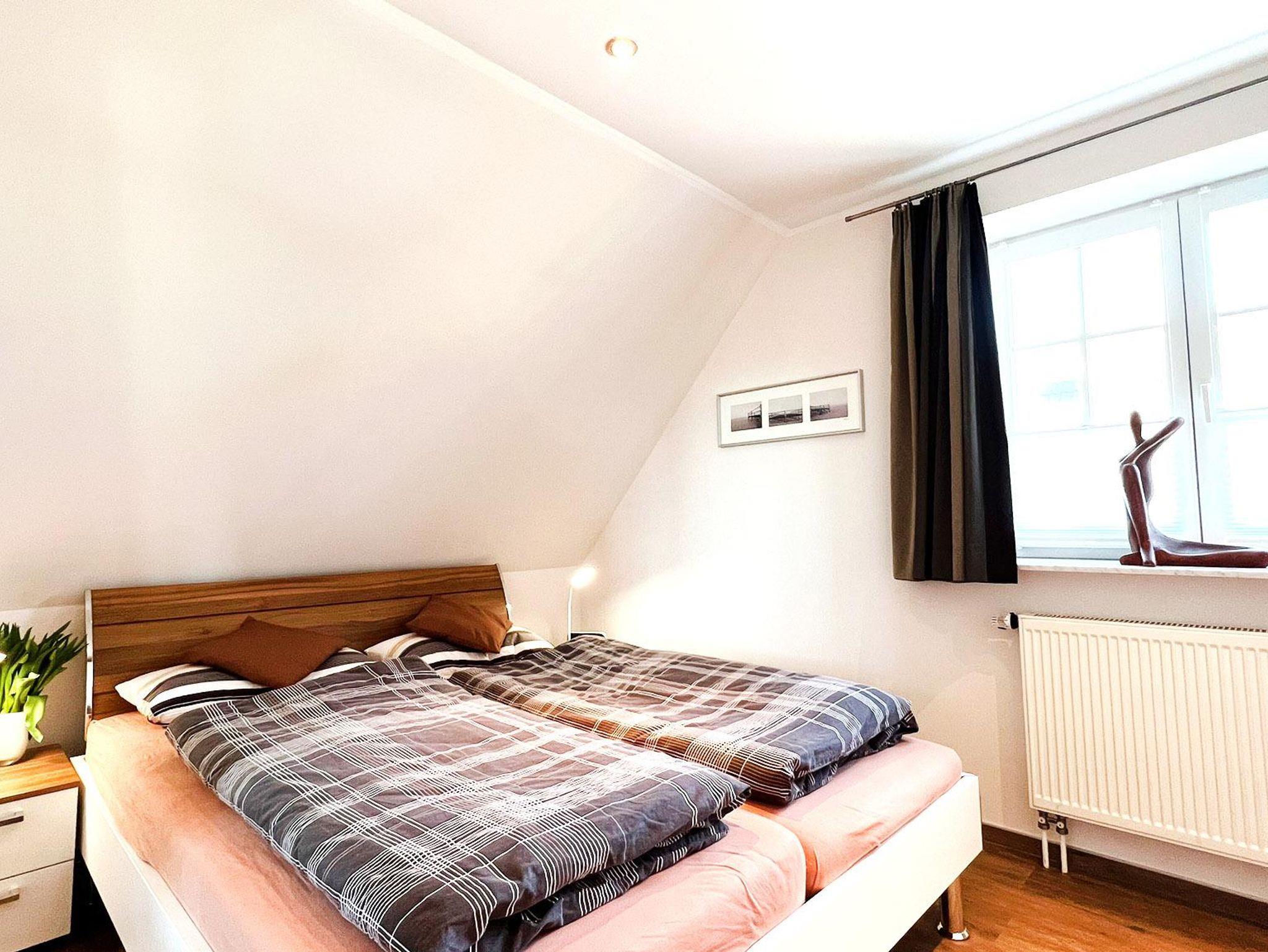 Schlafzimmer 32. OG: Doppelbett 2,00 x 1,80 m, Kleiderschrank, Sessel, Beistelltisch, 2 Nachttische
