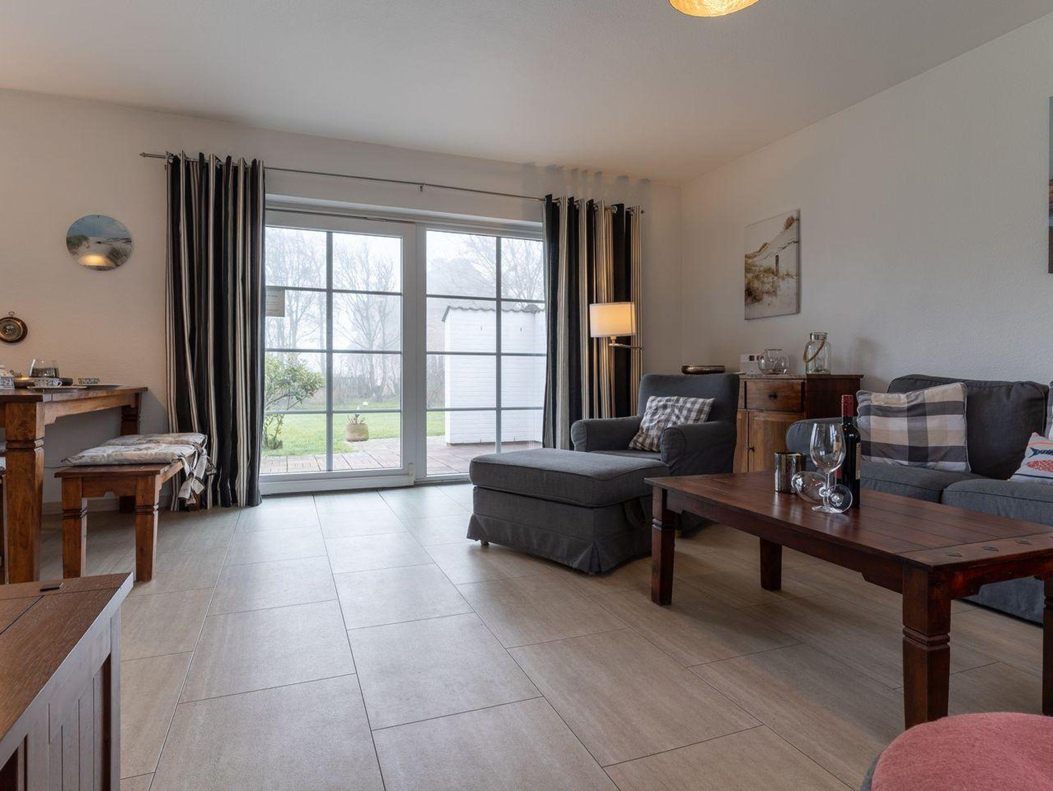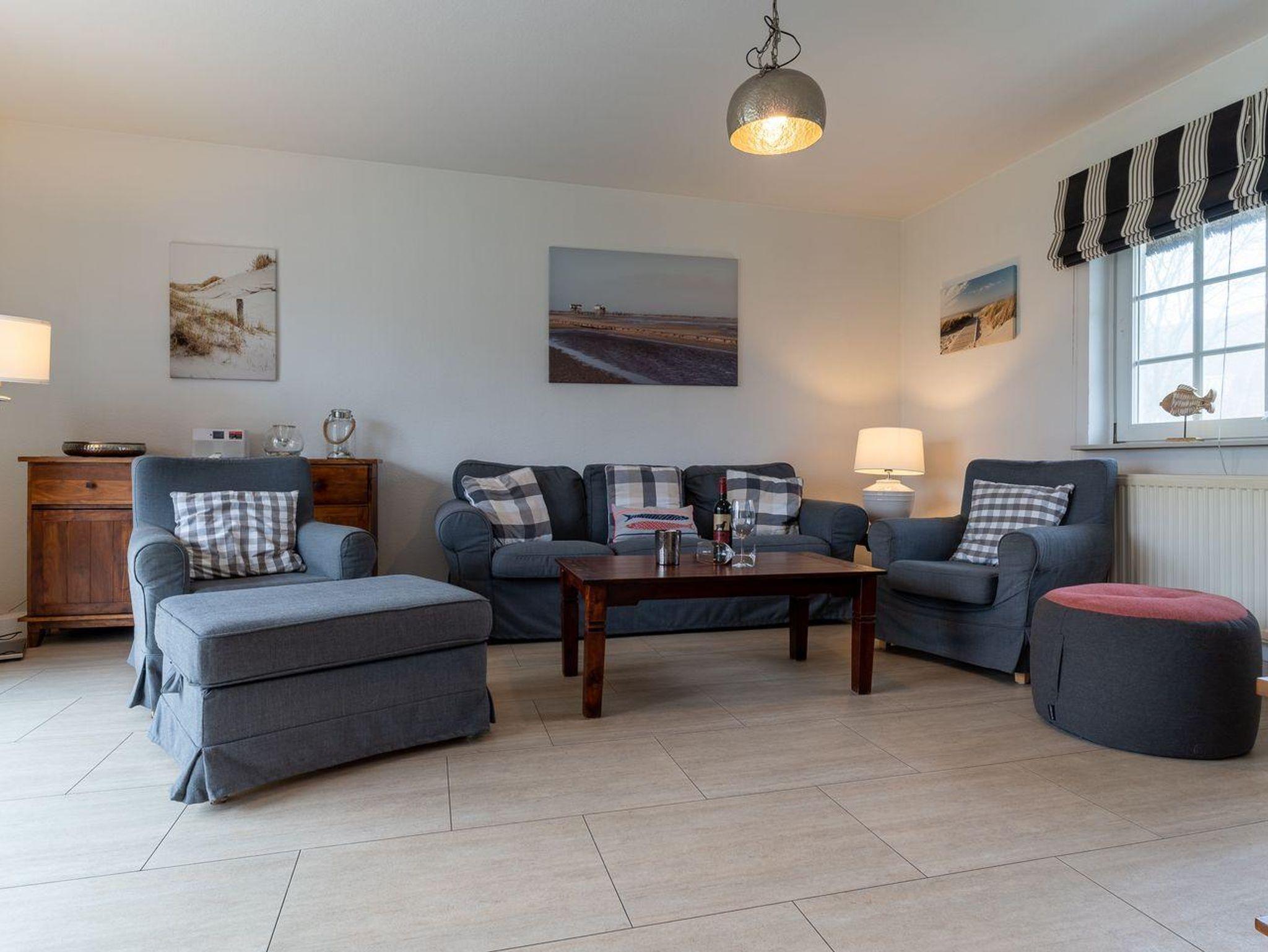Das Wohnzimmer verfügt über große Fenster und ist herrlich lichtdurchflutet.