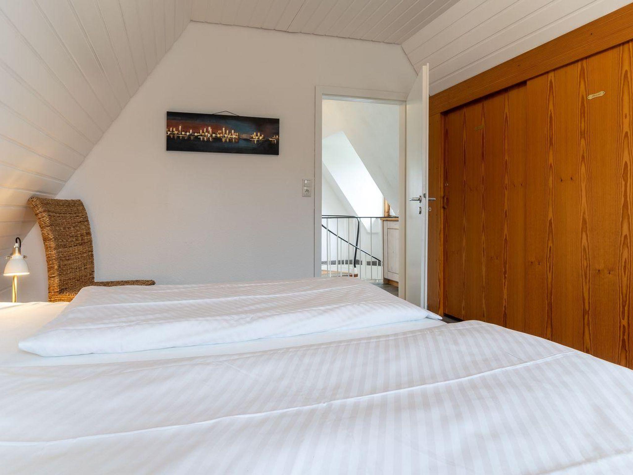 Über eine Rundtreppe gelangt man in das Obergeschoss mit zwei großzügigen Schlafzimmern und einem Duschbad.