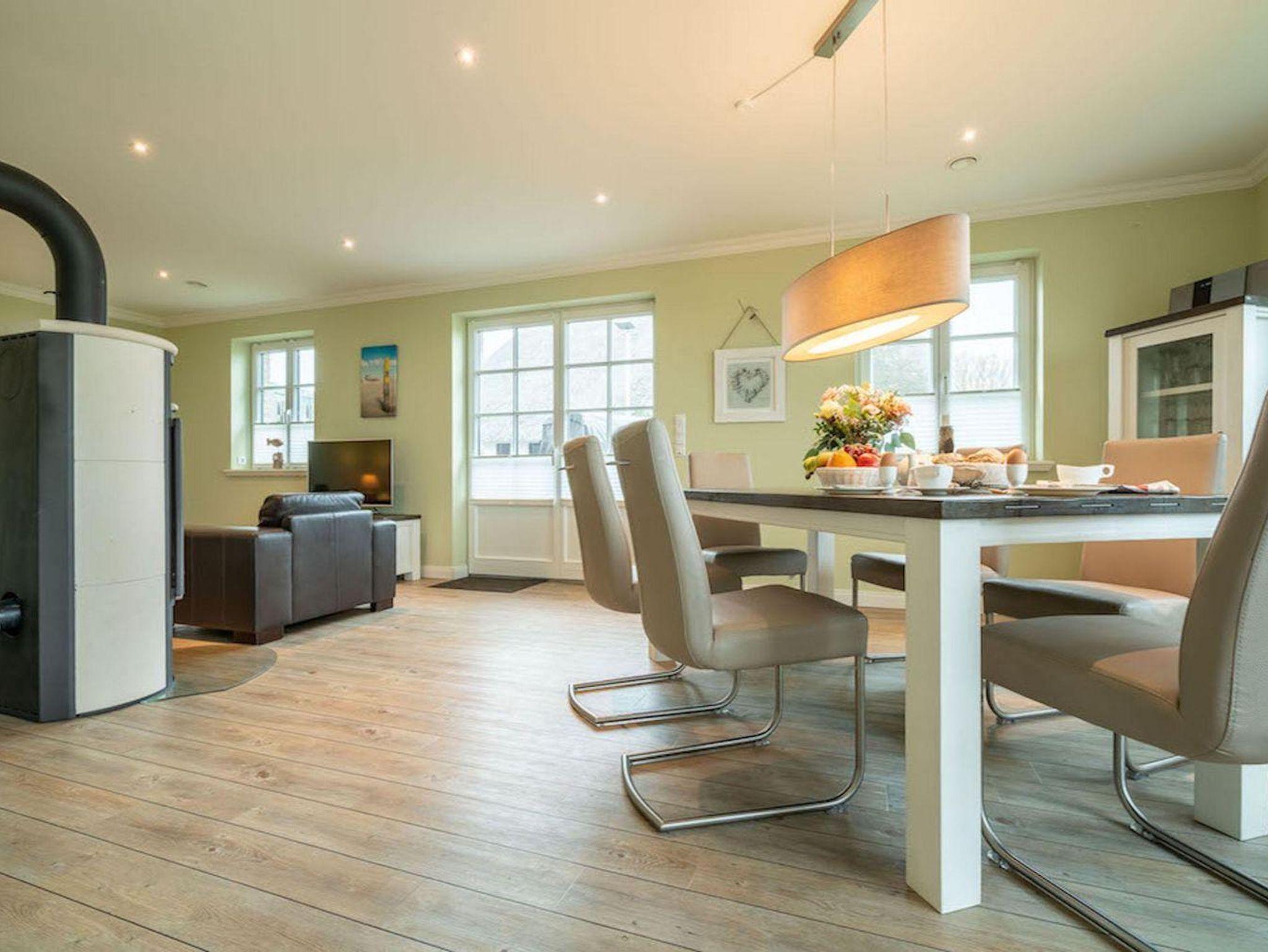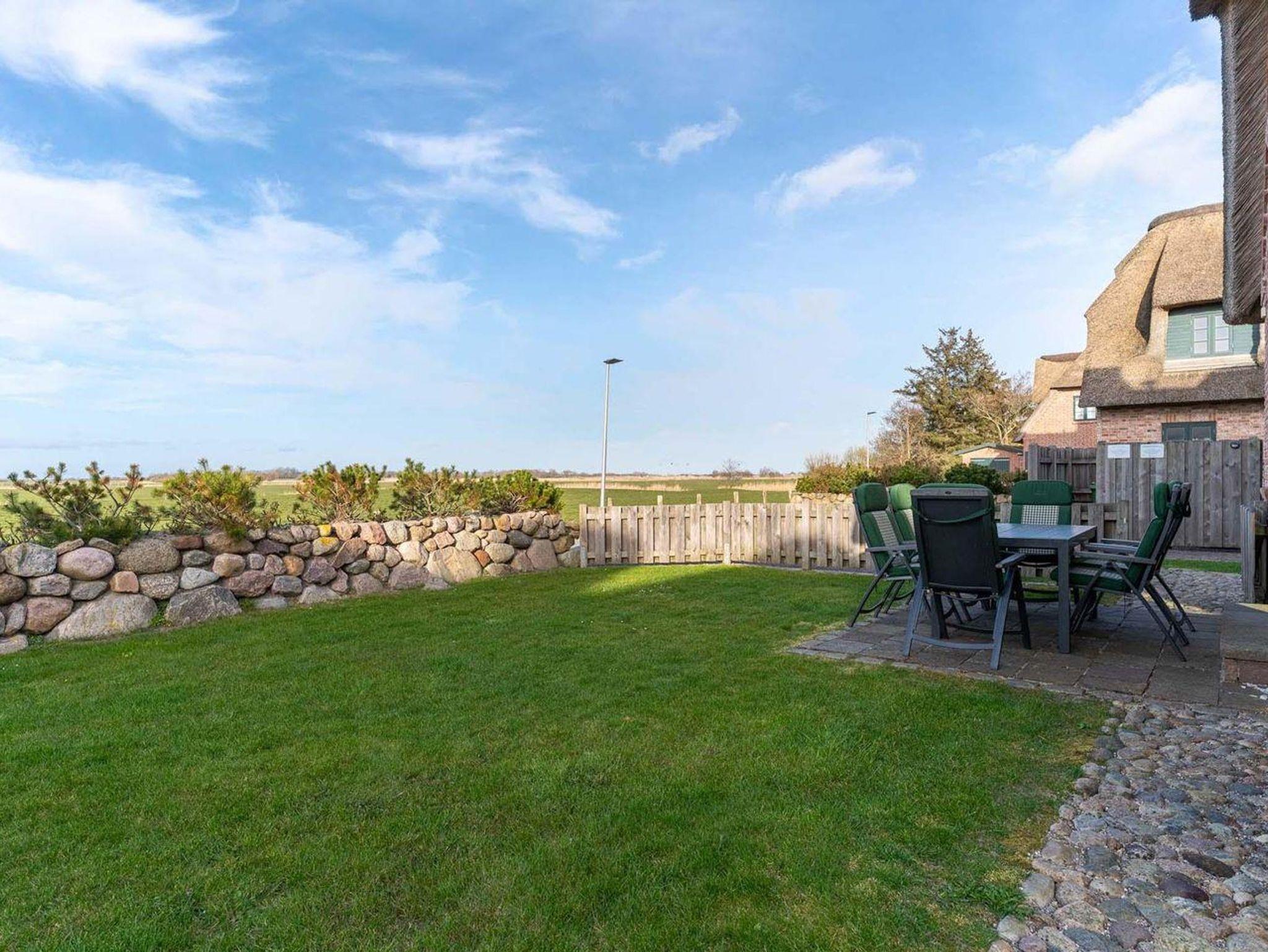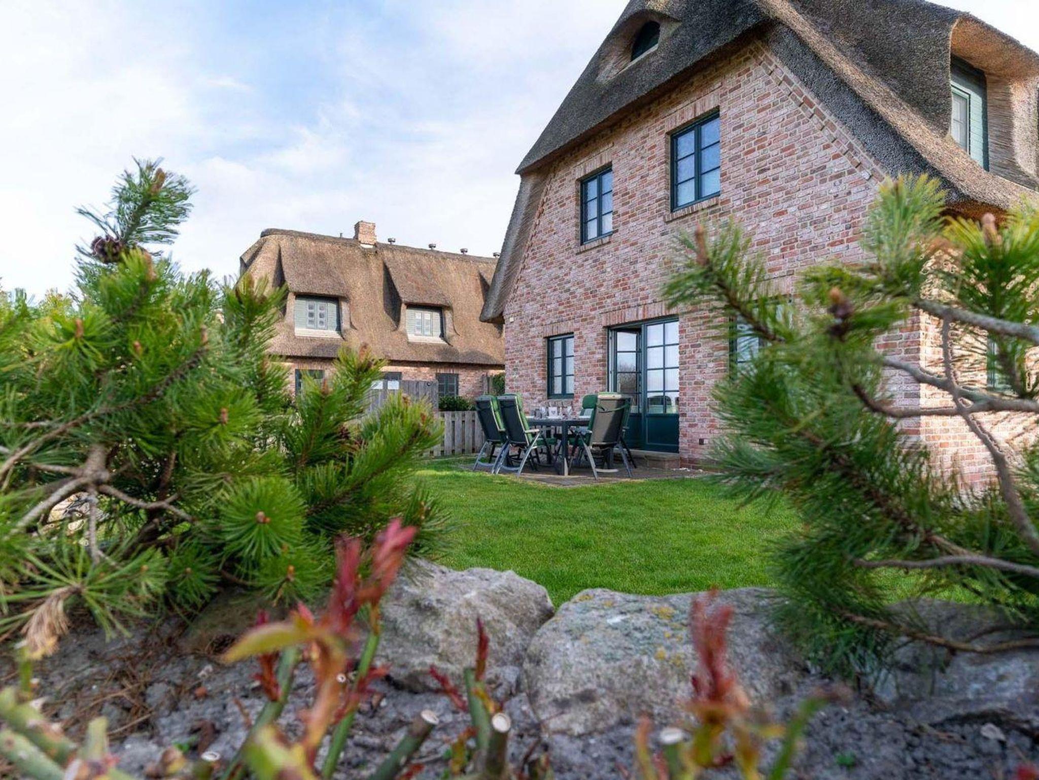 Die luxuriöse Haushälfte unter Reet wurde mit exklusiven Möbeln ausgestattet und bietet großzügigen Platz für 6 Personen. Das Grundstück mit Stellplatz und 2 Terrassen inklusive Gartenmöbeln und Strandkorb wurde mit hübschen Pflanzen und einem Friesenwall angelegt.