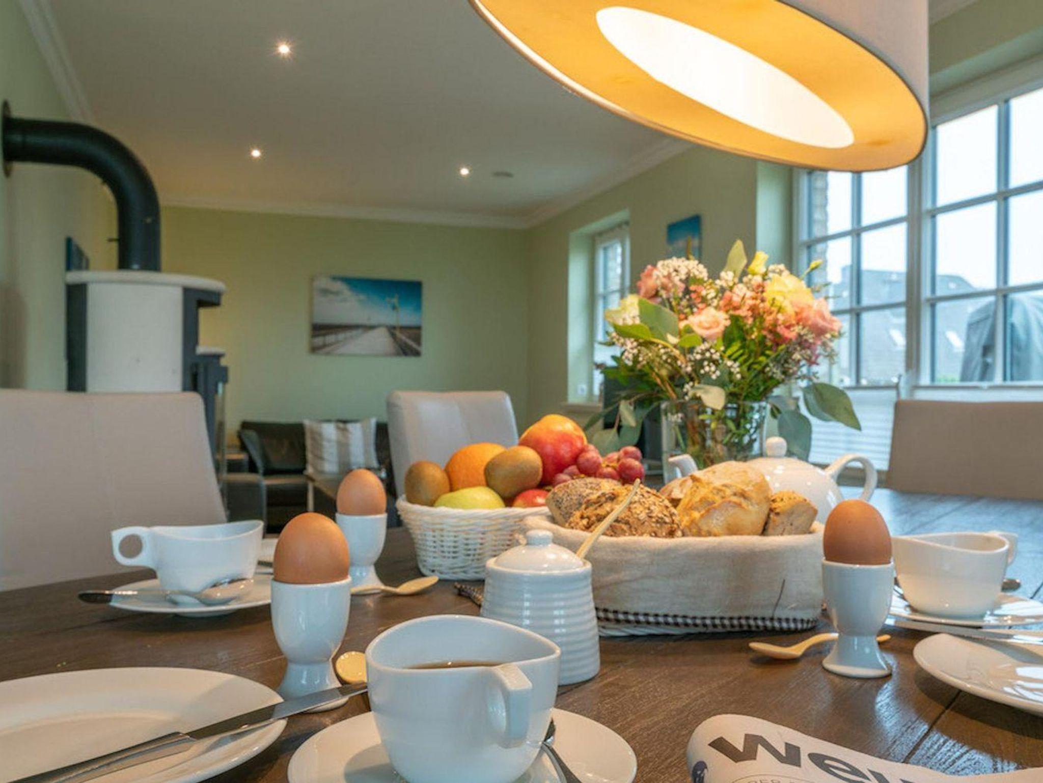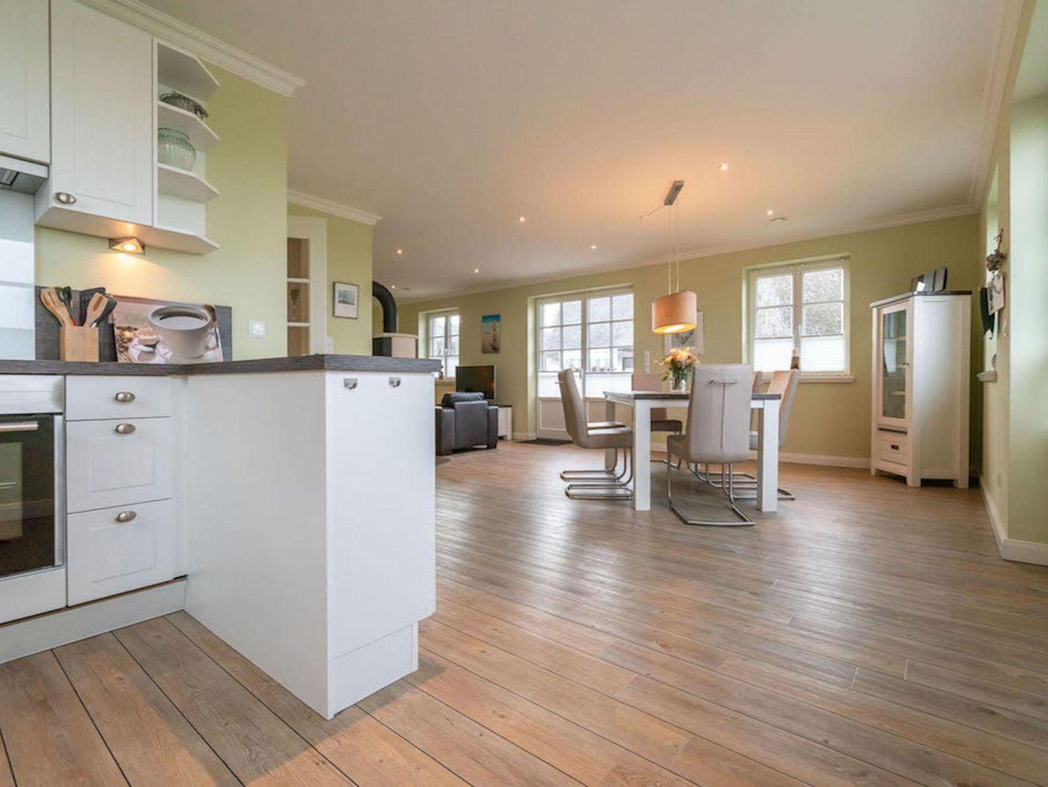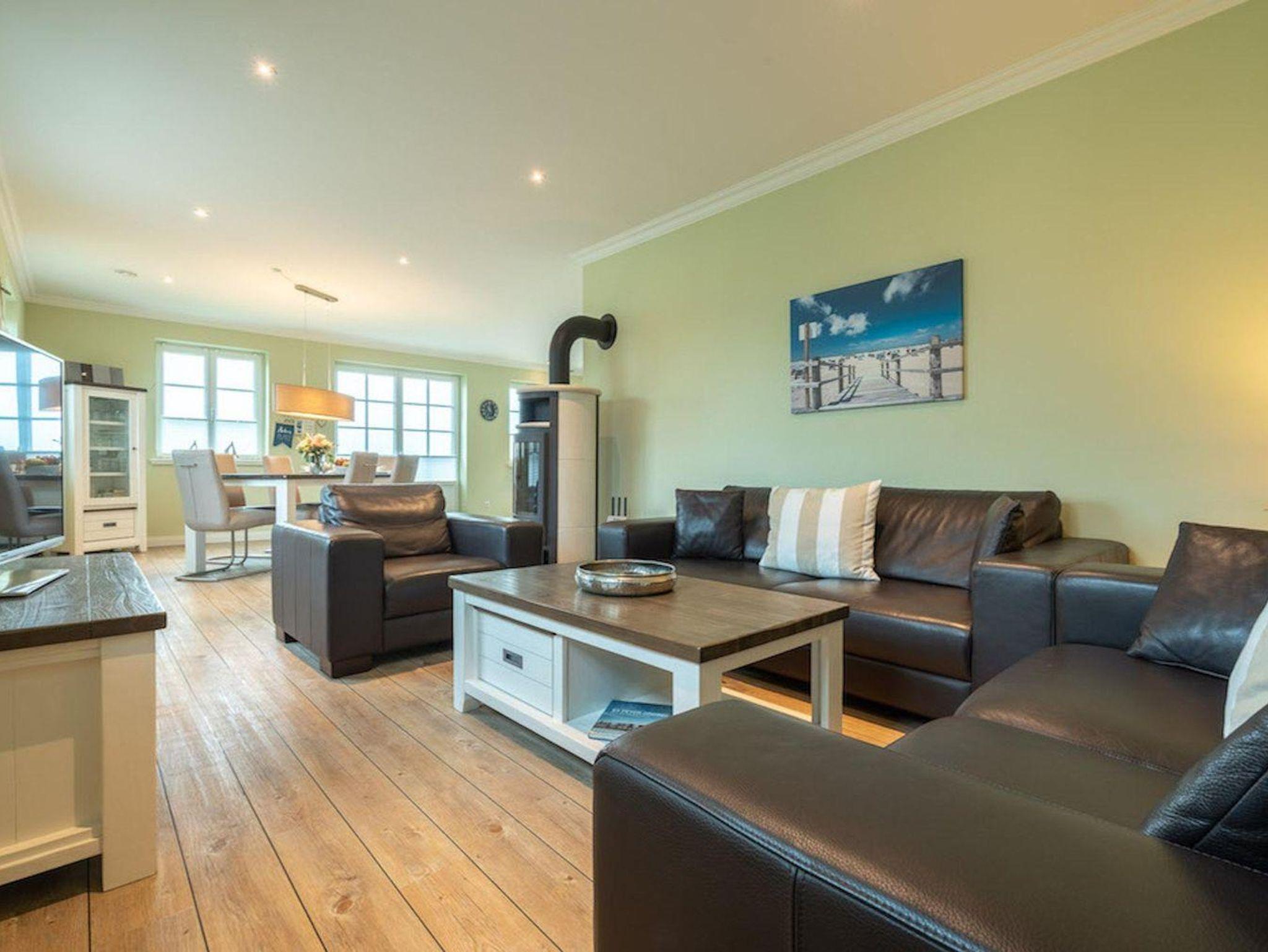 Die luxuriöse Haushälfte unter Reet wurde mit exklusiven Möbeln ausgestattet und bietet großzügigen Platz für 6 Personen. Das Grundstück mit Stellplatz und 2 Terrassen inklusive Gartenmöbeln und Strandkorb wurde mit hübschen Pflanzen und einem Friesenwall angelegt.