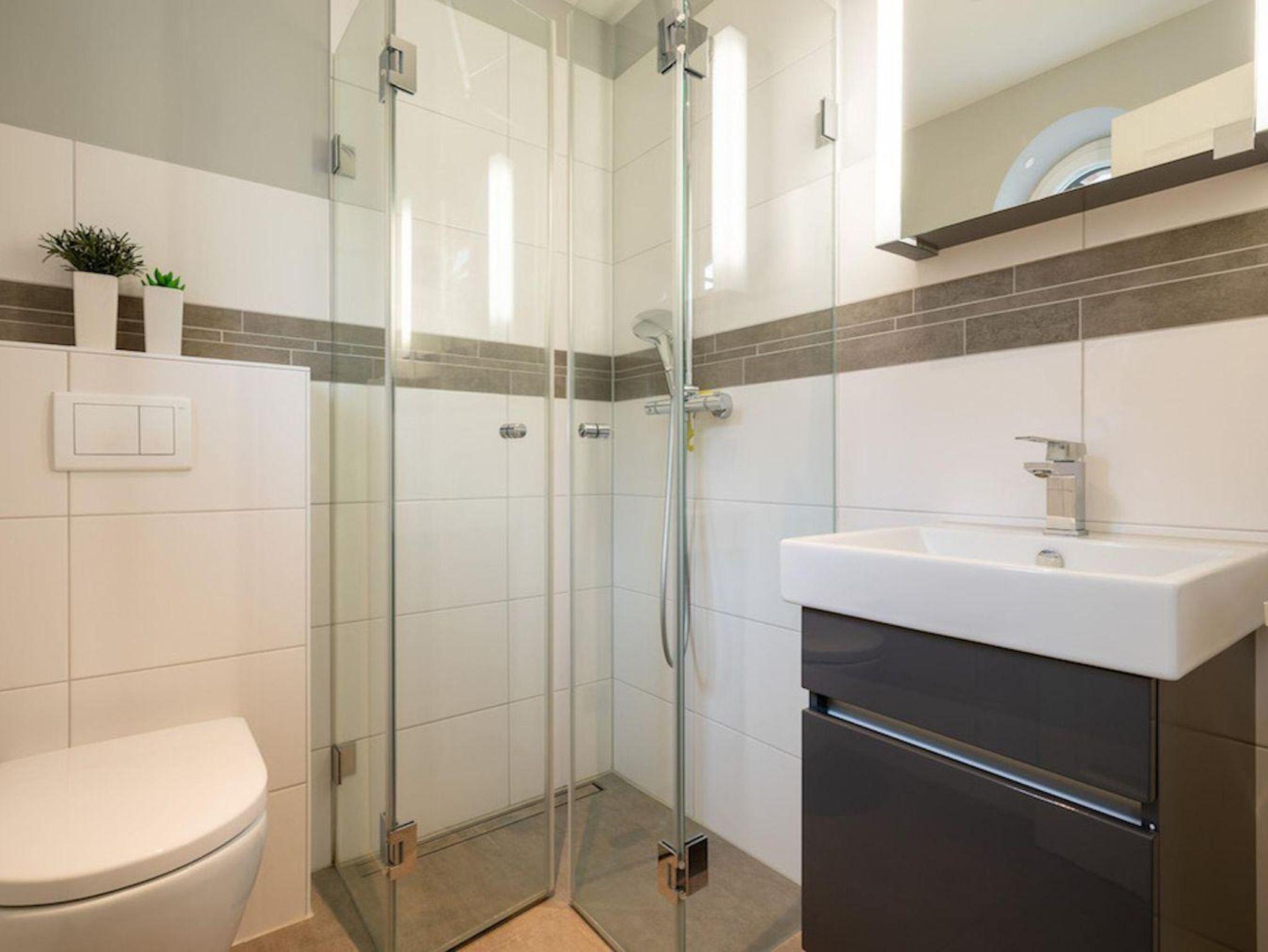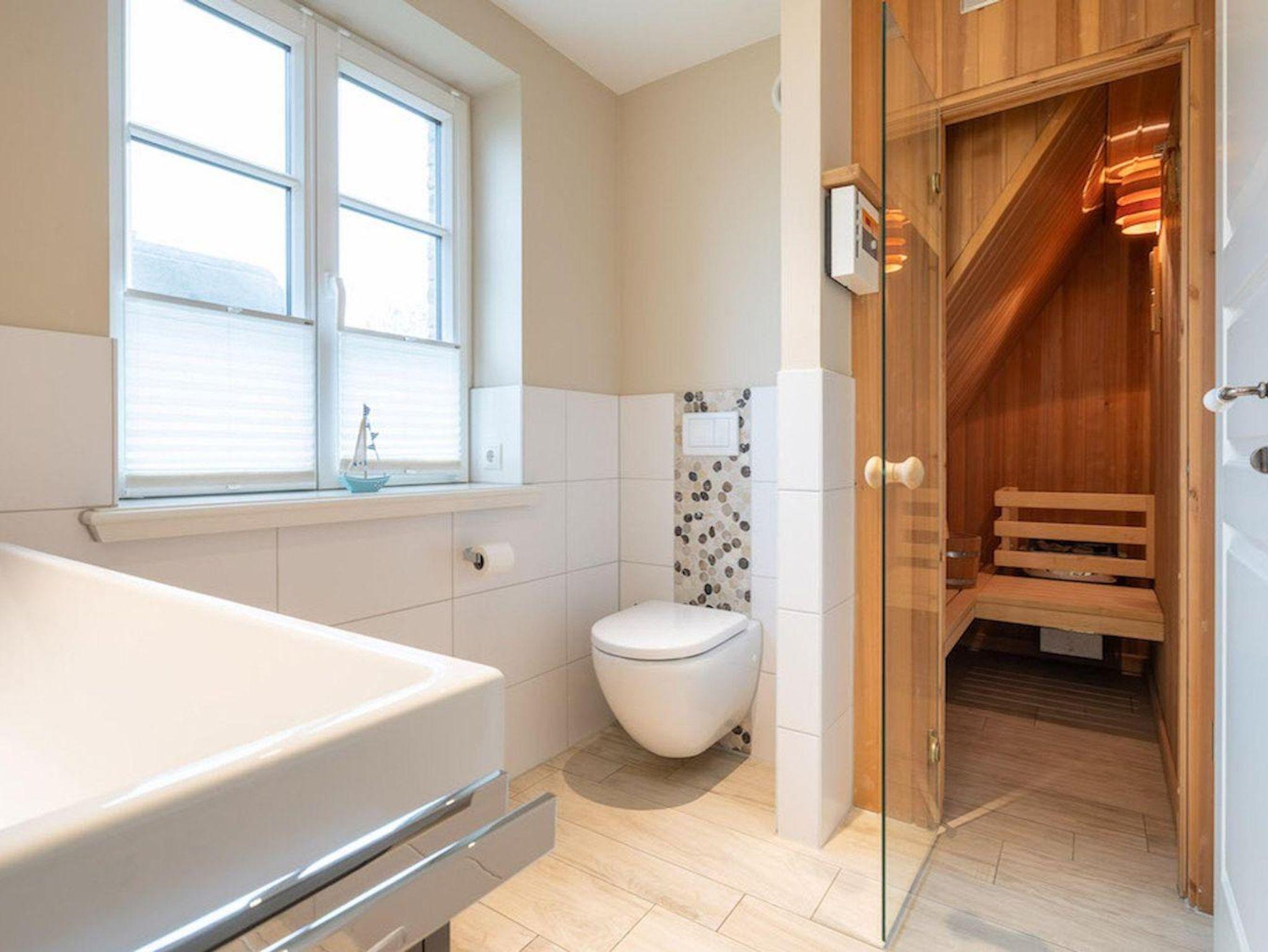 Die beiden Bäder, eines im EG das andere im OG, sind großzügig gestaltet und bieten genügend Platz für Ihre Utensilien. Das volle Wohlfühlprogramm erwartet Sie im Obergeschoss, hier gelangen Sie über das Bad direkt in die Sauna.
